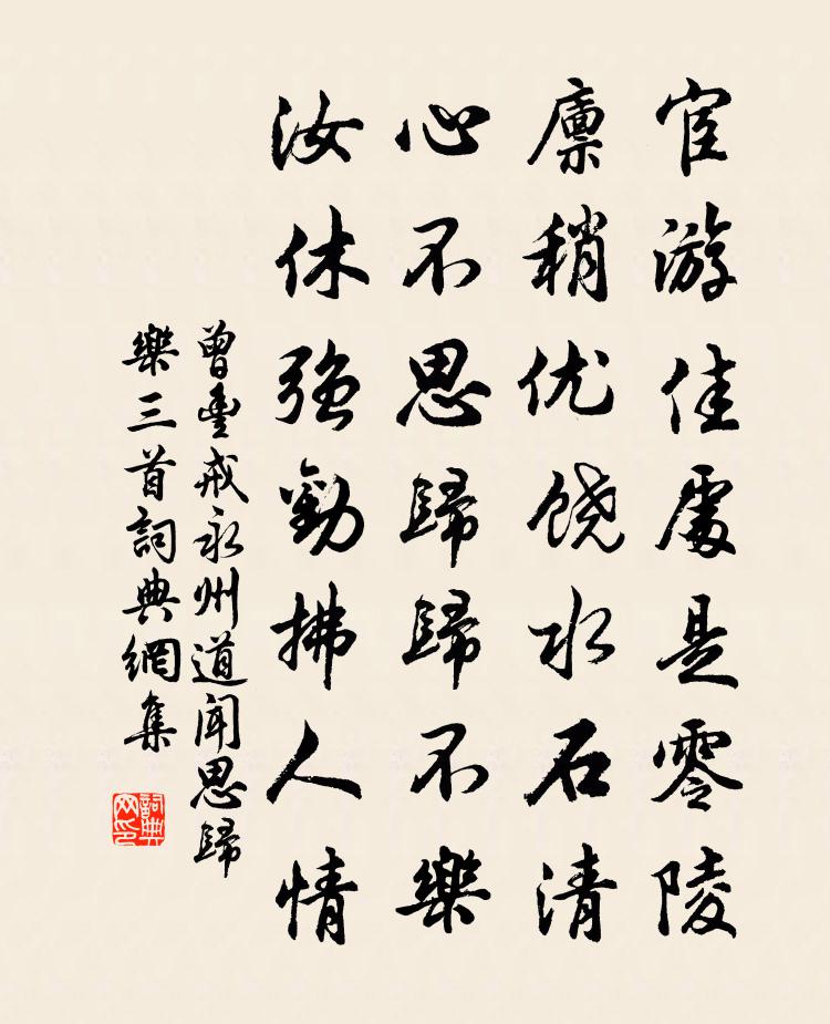 詩詞名句歷史字典書法欣賞書法字典國語詞典說文解字康熙字典古漢語字典標 題 作 者 詩 句 戒永州道聞思歸樂三首作者:曾豐 朝代:宋代戒永州道聞思歸樂三首原文宦遊佳處是零陵,廩稍優饒水石清。心不思歸歸不樂,汝休強勸拂人情。詩詞問答問:戒永州道聞思歸樂三首的作者是誰?答:曾豐問:戒永州道聞思歸樂三首寫於哪個朝代?答:宋代曾豐戒永州道聞思歸樂三首書法欣賞戒永州道聞思歸樂三首書法作品詩詞推薦七夕真山民〔宋代〕世上痴兒女,爭趨乞巧筵。婦鳩甘抱拙,不謅鵲橋仙。百字令 示眾破惑李道純〔元代〕成仙捷徑,在玄關、一竅四通八達。說與學人先立志,悟後只消時霎。可笑迷徒,不求師指,執著旁門法。般精般秋思陸游〔宋代〕日落江城聞搗衣,長空杳杳雁南飛。桑枝空後醅初熟,豆莢成時兔正肥。徂歲背人常冉冉,老懷感物倍依依。平生春野觀農事宋祁〔宋代〕茂氣回鮮野,寒姿換故林。敗防溪響急,新甽耒痕深。乳雉嬉原隩,歌牛下浦陰。吾廬堪學稼,將老有初心。次韻感學事二首方回〔宋代〕戰鼙驚倒白頭翁,慨想青衿舊日風。或厭三場爭小技,孰知一目網群雄。虀鹽此地涵濡久,藻鑒他時賞拔公。松老和許守水晶蒲萄吳芾〔宋代〕珍果孰稱最,靜中試旁搜。白奈非時至,赤梨經歲留。廬山杏萬株,武陵橘千頭。未若蒲萄美,甘滑仍脆柔。正當新晴西園散步四首楊萬里〔宋代〕久雨令人不出門,新晴喚我到西園。要知春事深和淺,試看青梅大幾分。中秋無月范成大〔宋代〕兒女無悰坐客稀,今年孤負隔年期。誰從天上牢遮月,不管人間大欠詩。立春晁公溯〔宋代〕我立佇立望晴空,目極蒼茫萬壑中。樹色昏昏酣霽霧,江紋細細織柔風。一行殊俗猶為吏,三揖今年擬送窮。聞道產難釋妙總〔宋代〕不遲一步,不疾一刻。明眼衲僧,如何會得。婁骨碎身未足酬,一句瞭然超百億。題睢陽五老圖歐陽謙之〔宋代〕厚德良多積善根,賢才他日在兒孫。當知相里非凡婿,豈有陳平久席門。五老繪圖千載譽,群公詩禮百年存。憑君秋日登廣州城南樓詩江總〔隋代〕秋城韻晚笛。危榭引清風。遠氣疑埋劍。驚禽似避弓。海樹一邊出。山雲四面通。野火初煙細。新月半輪空。塞外梅花 其二王冕〔元代〕瀟灑託身溪谷,清高不染紅塵。數點幽花的礫,包藏萬斛陽春。句胡君防〔宋代〕樓台舊地牛羊滿,宮殿遺基禾黍平。龍華山寺寓居十首王之望〔宋代〕水鄉經月雨,潮海暮春天。芒種嗟無日,來牟失有年。人多蓬菜色,村或斷炊煙。誰謂山中樂,憂來百慮煎。代為其親壽李曾伯〔宋代〕兩星相比映文昌,戲彩蹁躚戟衛香。鬢底公因民事白,眉邊人卜詔書黃。五千文字為家計,百萬陰功即壽鄉。要學奉和襲美太湖詩二十首石板陸龜蒙〔唐代〕一片倒山屏,何時隳洞門。屹然空闊中,萬古波濤痕。我意上帝命,持來壓泉源。恐為庚辰官,囚怪力所掀。又疑煙雨樓趙廱〔宋代〕畫框圖飛雲靄寒,樓台城堞有無間。煙收雨霽曾看否,見盡東南萬疊山。雨韓琮〔唐代〕陰雲拂地散絲輕,長得為霖濟物名。夜浦漲歸天塹闊,春風灑入御溝平。軒車幾處歸頻濕,羅綺何人去欲生。不及答李滁州見寄獨孤及〔唐代〕相逢遽嘆別離牽,三見江皋蕙草鮮。白髮俱生歡未再,滄洲獨往意何堅。愁看郡內花將歇,忍過山中月屢圓。終日名句推薦一日不作,百日不食。司馬遷《史記·三十世家·趙世家》 富而可求也,雖執鞭之士,吾亦為之。如不可求,從吾所好。孔子弟子《論語·述而篇》 心既托聲於言,言亦寄形於字劉勰《文心雕龍·練字》 雲鬢花顏金步搖,芙蓉帳暖度春宵。白居易《長恨歌》 昨夜風兼雨,簾幃颯颯秋聲。李煜《烏夜啼·昨夜風兼雨》 青山飛起不壓物,野水流來欲濕人牛殳《琵琶行》 成事莫說,覆水難收。佚名《增廣賢文·上集》 萬里歸船弄長笛,此心吾與白鷗盟。黃庭堅《登快閣》 瀉水置平地,各自東西南北流。鮑照《擬行路難十八首》 君子貴其身而後能及人,是以有禮。左丘明《左傳·昭公·昭公二十五年》