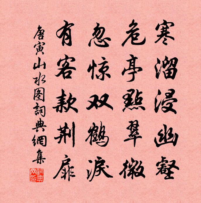 詩詞名句歷史字典書法欣賞書法字典國語詞典說文解字康熙字典古漢語字典標 題 作 者 詩 句 山水圖作者:唐寅 朝代:明代山水圖原文寒溜浸幽壑,危亭點翠微。忽驚雙鶴淚,有客款荊扉。詩詞問答問:山水圖的作者是誰?答:唐寅問:山水圖寫於哪個朝代?答:明代問:唐寅的名句有哪些?答:唐寅名句大全唐寅山水圖書法欣賞山水圖書法作品詩詞推薦春日二絕王炎〔宋代〕野花無賴作紅白,香力也能來著人。古澗寒泉山下路,道人別作一家春。正元(一作元日,一作元正)許渾〔唐代〕高揭雞竿辟帝閽,祥風微暖瑞雲屯。千官共削奸臣跡,萬國初銜聖主恩。宮殿雪華齊紫閣,關河春色到青門。華夷鷓鴣天徐俯〔宋代〕宜笑宜顰掌上身。能歌能舞惡精神。臉邊紅入桃花嫩,眉上青歸柳葉新。嬌不語,易生嗔。尊前還是一番春。深杯題黃居寀雀竹圖范成大〔宋代〕蔓花露下凝碧,叢竹秋來老蒼。噪雀群爭何事?ㄠ禽自囀清篁。五松寺李彌遜〔宋代〕秋風席吹客衣,席去路倚天席碧。躋攀席一何苦,政坐受山癖。人言五松下,曾是瞿曇宅。至今梧竹陰,列屋棲禪琴趙崇森〔宋代〕群胥推案去,一客抱琴來。喚起高山趣,驅除俗吏埃。耳根從此淨,指法看君開。剩欲傳佳操,仙舟且莫回。上張丞相十首張元乾〔宋代〕廣漢家山遠,臨川道路旁。安輿懷故壘,同氣聽甘棠。雪後風煙潤,春歸草木香。丹心馳魏闕,夢想萬年觴。胡笳曲佚名〔宋代〕月明星稀霜滿野,氈車夜宿陰山下。漢家自失李將軍,單于公然來牧馬。赤壁曾用孫〔宋代〕白浪高於屋,風回熨帖平。周郎呼不醒,久立聽江聲。書事施樞〔宋代〕閒時但覺求人易,險處方知為己深。世事盡隨流水去,白雲自識古人心。曝背陳起〔宋代〕曝背向梅邊,清閒且信緣。籬疏編荻補,簾斷索麻聯。道在貧何慮,天高聽不偏。案頭詩幾卷,腸斷鶺鴒篇。仗錫山中釋文珦〔宋代〕雨地春山薇蕨長,曉隨樵子穿雲上。貪看岩頭瀑布飛,坐來忘卻青藜杖。謁金門徐珌〔宋代〕春欲半。重到寂寥山館。修竹連山青不斷。誰家門可款。紅暈花梢未半。綠蘸柳芽猶短。金縷香消春不管。素蟾光碧泉獨步胡宏〔宋代〕淅淅秋風動,前橋晚步還。小魚沖岸側,白鳥立溪灣。明月照秋水,淡煙籠遠山。此時知造物,憐我一身閒。偈三首釋祖元〔宋代〕有佛花處不得住花,踏著秤鎚硬似花。無佛處急走過,腳下草深三尺。三千里外,逢人不得錯舉。北斗掛須彌,棒雲根周文璞〔宋代〕雲從會稽生,旦旦見伯禹。聽讀山海經,成龍不成虎。禹命雲歸歟,可向蕺山去。昂昂王內史,眉宇照今古。常在發通州文天祥〔宋代〕白骨叢中過一春,東將入海避風塵。姓名變盡形容改,猶有天涯相識人。百字令 宿漢兒村納蘭性德〔清代〕無情野火,趁西風燒遍、天涯芳草。榆塞重來冰雪裡,冷入鬢絲吹老。牧馬長嘶,征笳亂動,併入愁懷抱。定知今百字謠/念奴嬌禪峰〔宋代〕中秋近也,正於門瑞氣,蔥蔥時節。隔歲維熊占吉夢,今夕天生英傑。仙籍流芳,瑞龍毓秀,應是非凡骨。詩書勛綠頭鴨(七夕)辛棄疾〔宋代〕嘆飄零。離多會少堪驚。又爭如、天人有信,不同浮世難憑。占秋初、桂花散采,向夜久、銀漢無聲。鳳駕催雲,名句推薦忽如一夜春風來,千樹萬樹梨花開。岑參《白雪歌送武判官歸京》 玉手佳人,笑把琵琶理。顧德輝《蝶戀花·春江暖漲桃花水》 白馬誰家子,黃龍邊塞兒。李白《獨不見》 菩薩妖精,總是一念。若論本來,皆屬無有。吳承恩《西遊記·第十七回》 新知遭薄俗,舊好隔良緣。李商隱《風雨》 泰山不要欺毫末,顏子無心羨老彭。白居易《放言五首·其五》 春草明年綠,王孫歸不歸?王維《送別 / 山中送別 / 送友》 知文德武功,蓋因時而並用魏徵《隋書·列傳·卷三十二》 廢一善,則眾善衰。賞一惡,則眾惡歸。黃石公《三略·下略》 生無一日之歡,死有萬世之名。列子及其弟子《列子·楊朱》