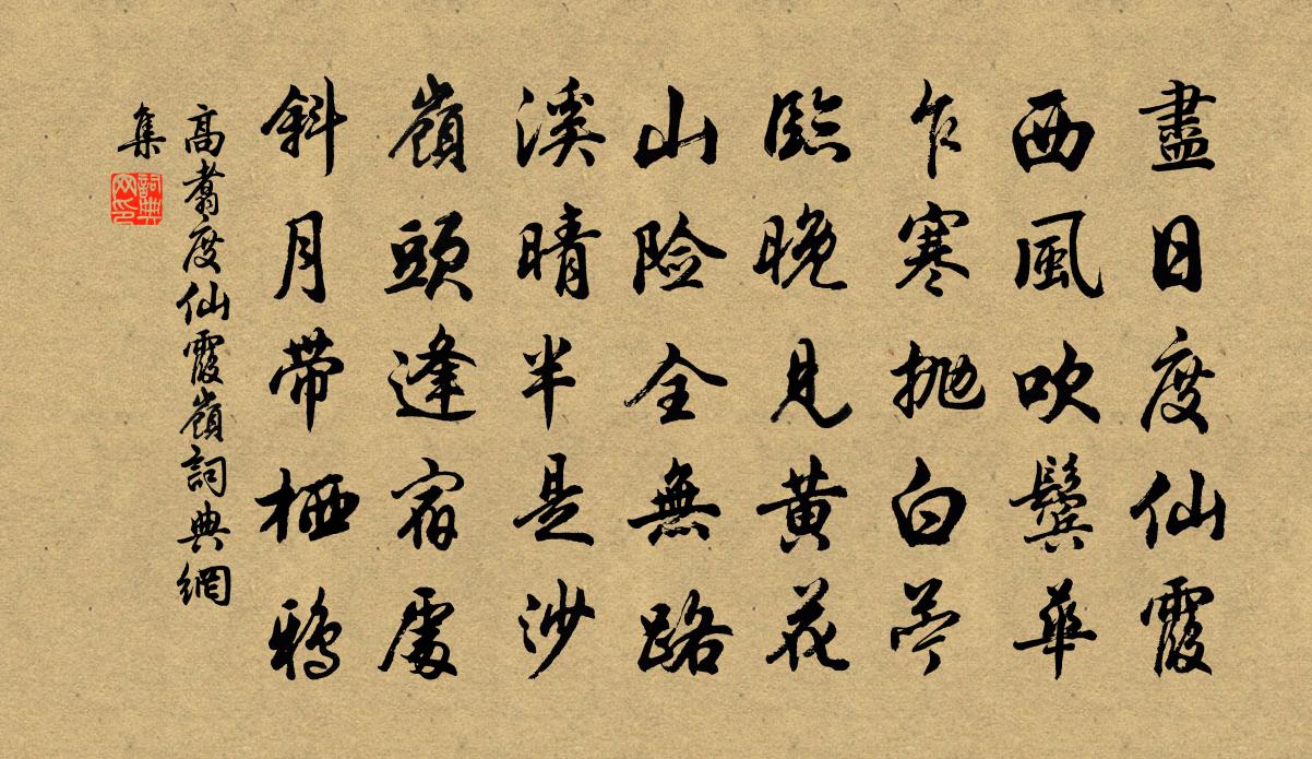 詩詞名句歷史字典書法欣賞書法字典國語詞典說文解字康熙字典古漢語字典標 題 作 者 詩 句 度仙霞嶺作者:高翥 朝代:宋代度仙霞嶺原文盡日度仙霞,西風吹鬢華。乍寒拋白苧,臨晚見黃花。山險全無路,溪晴半是沙。嶺頭逢宿處,斜月帶棲鴉。詩詞問答問:度仙霞嶺的作者是誰?答:高翥問:度仙霞嶺寫於哪個朝代?答:宋代高翥度仙霞嶺書法欣賞度仙霞嶺書法作品詩詞推薦寄送介夫城居連文鳳〔宋代〕曾賦隱居圖,知君已定居。移家重入市,引鶴自挑書。煙雨生新夢,雲山護舊廬。但令風浪靜,何處不堪漁。袁州北崇勝寺二首趙蕃〔宋代〕故人貽我壁間詩,何處飄零負此期。蹭蹬我今慚薄宦,飛騰君合趁明時。雖然不用逢人說,老矣何庸覓世知。借問句周海〔宋代〕十里平郊連郡堞,一溪清水溉民田。鼓笛慢/水龍吟佚名〔宋代〕淡煙池館,霜飈乍緊,又是年華暮。黃花老盡,丹楓舞困,江梅初吐。點綴南枝,暗傳春信,玉苞微露。憑危闌空襄陽古樂府三首野鷹來蘇軾〔宋代〕野鷹來,萬山下,荒山無食鷹苦飢,飛來為爾系彩絲。北原有兔老且白,年年養子秋食菽。我欲擊之不可得,年深相公竹王陶〔宋代〕已枯斷竹鈞私被,既沒賢公帝念深。仆木偃禾如不起,至今誰識大忠心。餞吳長文司理用修持賢業教無欠為韻裘萬頃〔宋代〕狂瀾涌如此,砥柱其誰為。天意必有在,吾身姑自持。洞仙歌(姑蘇舊台在三十里外,今台在胥門上,次潘紫岩韻)黃載〔宋代〕吳宮故墅,是天開圖畫。縹緲層雲出飛榭。隱隱樓空翠巘,水繞蕪城,平疇迥,點染霜林凋謝。越來溪上雁,聲切示惠文伯宣義二偈釋崇岳〔宋代〕盤走珠兮珠走盤,靜中訊息鬧中看。一毫頭上忘知解,始覺從前被眼瞞。詠塵林泳〔宋代〕野馬相吹生不盡,海犀能辟語成空。高埋旗鼓無邊黑,暗染衣冠日下紅。寧可濯纓歌濁水,莫教舉扇障西風。渾無減字木蘭花李祁〔宋代〕梨花院宇。淡月傾雲初過雨。一枕輕寒。夢入西瑤小道山。花深人靜。簾鎖御香清晝永。紅藥闌乾。玉案春風窈窕送鄉同舍黃君賞謁陳提學戴表元〔宋代〕六館賦聲在,五陵遊伴稀。如何趨仕版,猶自著儒衣。春晚鶯羞語,城寒花慢飛,江湖陳仲舉,相見肯空歸。題山谷居士書坡公帖袁說友〔宋代〕當年二老嘆云云,猶喜坡翁返故鄉。展卷如今但陳跡,丘原無復起蘇黃。同子瞻和趙伯充團練黃庭堅〔宋代〕金玉堂中寂寞人,仙班時得共朝真。兩宮無事安磐石,萬國歸心有老臣。家釀可供開口笑,侍兒工作捧心顰。醉鄉信庵居士畫月庵老衲月林頂相求贊釋師觀〔宋代〕佛祖權衡,人天眼目。瞻之仰之,鼎分三足。休言六耳不同謀,斷弦須是彎膠續。失鸂鶒陸游〔宋代〕不見池邊整羽衣,繞村散覓走群兒。卑飛正恐為人得,徑去何須報我知。久憶苹洲應自喜,尚余菰米亦堪悲。放翁大雪登越州城樓劉過〔宋代〕北風吹雪天盡頭,蘇州未了來越州。越人夜乘剡溪舟,烏喙還念棲山不。吳人哉酒登虎丘,窈窕萬舞雜沮謳。迤儷聞韓正倫檢正掛冠感嘆故交悵然久之偶成三首岳珂〔宋代〕心存即鹿嘆無虞,畫地雖工理反疎。直枉已傳天子詔,厚誣猶見監奴書。儻令甬道真難繼,未必都曹可遂初。萬里夏日南湖汎舟因過瓊華園六首張鎡〔宋代〕草生荒徑沒靴深,寂寂危亭蘚暈侵。翠輦不來知幾夏,野禽啼暝古松林。上益公十絕為壽玉兔劉過〔宋代〕雪淡星疏月有光,廣寒仙府歲偏長。多應自製延年藥,振古長同桂子香。名句推薦風定落花深,簾外擁紅堆雪。李清照《好事近·風定落花深》 林臥愁春盡,開軒覽物華。孟浩然《清明日宴梅道士房 / 宴梅道士山房》 馬影雞聲,諳盡倦郵荒館。張翥《陌上花·有懷》 忽聞歌古調,歸思欲沾巾。杜審言《和晉陵陸丞早春遊望》 草色青青柳色黃,桃花歷亂李花香。賈至《春思二首·其一》 可憐白骨攢孤冢,盡為將軍覓戰功。張蠙《吊萬人冢》 紙灰飛作白蝴蝶,淚血染成紅杜鵑。高翥《清明日對酒》 夫天地者,萬物之逆旅也;光陰者,百代之過客也。李白《春夜宴桃李園序 / 春夜宴從弟桃花園序》 雞聲茅店月,人跡板橋霜。溫庭筠《商山早行》 越人語天姥,雲霞明滅或可睹。李白《夢遊天姥吟留別 / 別東魯諸公》