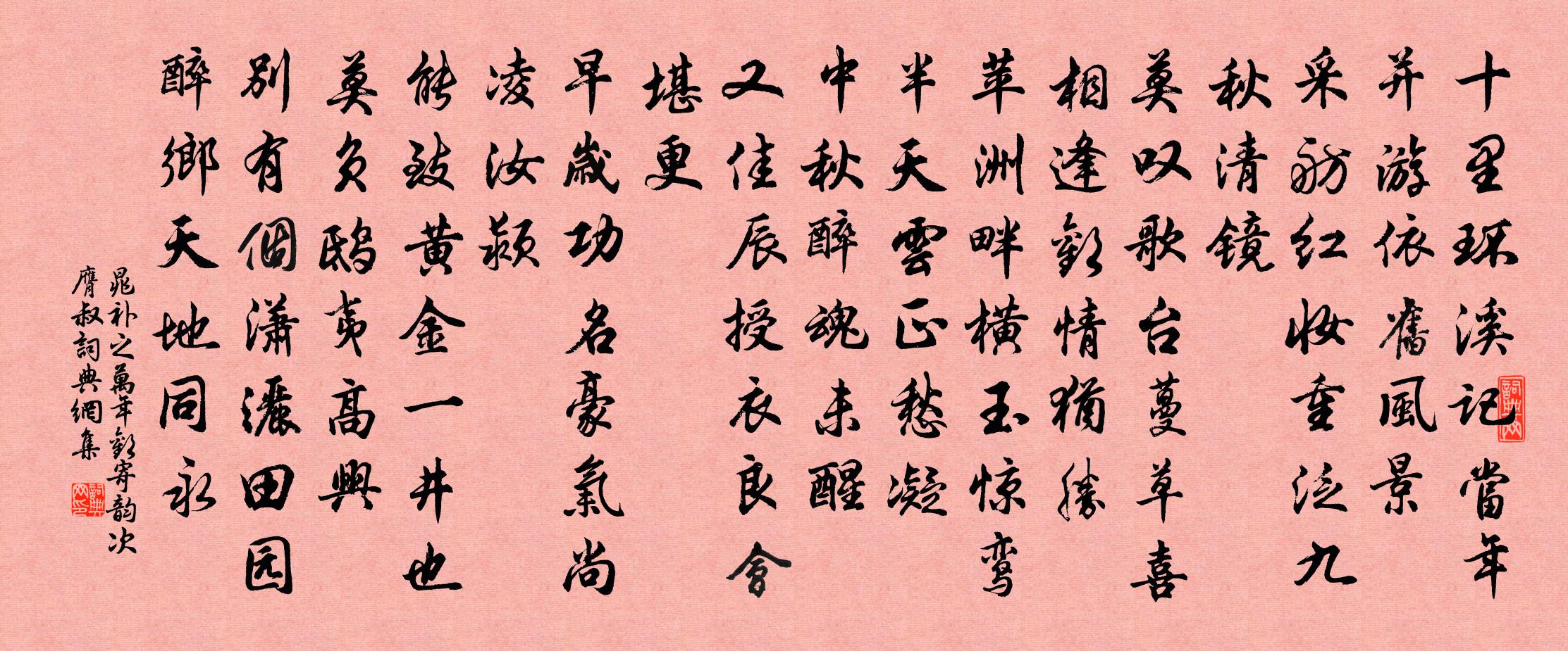 十里環溪,記當年並游,依舊風景。采舫紅妝,重泛九秋清鏡。