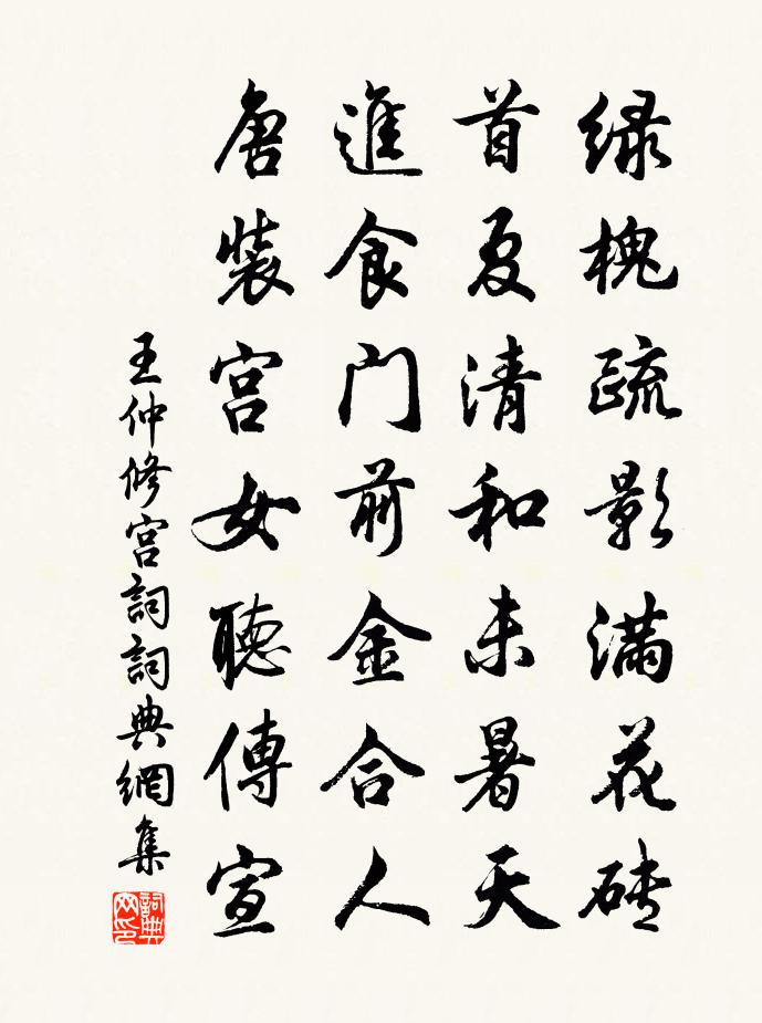 詩詞名句歷史字典書法欣賞書法字典國語詞典說文解字康熙字典古漢語字典標 題 作 者 詩 句 宮詞作者:王仲修 朝代:宋代宮詞原文綠槐疏影滿花磚,首夏清和未暑天。進食門前金合人,唐裝宮女聽傳宣。詩詞問答問:宮詞的作者是誰?答:王仲修問:宮詞寫於哪個朝代?答:宋代王仲修宮詞書法欣賞宮詞書法作品詩詞推薦接齊叟總乾兄櫬蘇泂〔宋代〕人生何者遽宜休,如此詩書未白頭。舍棹燈明煙雨里,居人那識在原愁。會河道中王之道〔宋代〕會河村店西,沙水清練練。我行獨帶月,滉漾制金線。凝寒逼征衣,霜華重如霰。至此懷僧彌,老淚幾欲泫。頌古十首釋行鞏〔宋代〕恰好被人借去了,莫言鄰舍不通容。團圞無縫難安筆,只抹煙雲一兩重。十二峰登龍閻伯敏〔宋代〕散而成章合為龍,迴風混事游鴻濛。舟人上下神女供,俗妝鉛粉胭脂紅。金陵懷古吳龍翰〔宋代〕鍾阜龍蟠勢可奇,何年開此帝王基。東西日月磨今古,南北江山幾合離。六代衣冠荒草下,中原台殿白雲涯。春風齊雩祭歌 黃帝 一謝朓〔南北朝〕稟火自高明。毓金挺剛克。涼燠資成化。羣芳載厚德。賀天童心首座出世仗錫釋紹曇〔宋代〕懶織蒲鞋罷養親,入蟭暝眼鼓煙塵。只將打發雲門手,更與玲瓏接一人。瑞鶴仙張樞〔宋代〕捲簾人睡起。放燕子歸來,商量春事。風光又能幾。減芳菲、都在賣花聲里。吟邊眼底。被嫩綠、移紅換紫。甚等雨後晚步郡圃二首楊萬里〔宋代〕風勒歸雲帶雨回,不容老子小徘徊。撥忙也到池亭上,昨日卷荷今盡開。雜感六首黎廷瑞〔宋代〕元陽秋轉碧,積凍春更好。草力乃如斯,人生得草草。寒暑浩茫茫,哀哉未聞道。憂旱李石〔宋代〕清和氣始交,候火未可熾。雨師偶失職,焰焰使人畏。東湖冷如水,舍此誰止沸。猊吻呀不吐,濁泥點枯翠。農田贈石台問長老二絕〈並敘〉蘇轍〔宋代〕石台長老問公,本成都吳氏子,棄俗出家,手書《法華經》,字細如黑蟻,前後若一,將誦之萬遍,雖老而精進不挽穀子長廖行之〔宋代〕伊昔拜芝宇,詞場話俊游。一從分袂日,五閱鱠鱸秋。別夢思何極,長川逝莫留。蓋棺俄隔世,空遣淚橫流。守歲李治〔唐代〕今宵冬律盡,來朝麗景新。花余凝地雪,條含暖吹分。綬吐芽猶嫩,冰□已鏤津。薄紅梅色冷,淺綠柳輕春。送迎哭薛子舒二首劉克莊〔宋代〕醫自金壇至,猶言疾可為。瀕危人未信,聞死世皆疑。友共收殘藁,妻能讀殮儀。借來書冊子,掩淚付孤兒。寄李适安胡仲弓〔宋代〕懶踏門前沒馬塵,適安亭上坐吟身。殷勤風月一樽酒,斟酌湖山十里春。柳葉未舒先嫵媚。梅花雖老更精神。白鷗自訟華岳〔宋代〕我生素不事詼諧,檐板方頭喚不回。遇事豈容無正論,濟時未必有長材。頭雖五鼎不辭劍,口恐三緘合用枚。不是和李德裕游漢州房公湖二首鄭浣〔唐代〕太尉留琴地,時移重可尋。徽弦一掩抑,風月助登臨。榮駐青油騎,高張白雪音。祗言酬唱美,良史記王箴。靜對和曹東谷韻謝枋得〔宋代〕萬古綱常擔上肩,脊樑鐵硬對皇天。人生芳穢有千載,世上榮枯無百年。此日識公知有道,何時與我詠遊仙。不為飲闌月上不能留客再成一篇王炎〔宋代〕綠幄陰深數樹梅,胡床相對手行杯。茫茫世事愁眉斂,亹亹談諧笑口開。欲把清風留客至,更呼明月出雲來。咄嗟名句推薦君為女蘿草,妾作菟絲花。李白《古意》 曉迎秋露一枝新,不占園中最上春。杜牧《紫薇花》 歡言得所憩,美酒聊共揮。李白《下終南山過斛斯山人宿置酒》 君使臣以禮,臣事君以忠。孔子弟子《論語·八佾篇》 一粥一飯,當思來處不易;半絲半縷,恆念物力維艱。朱柏廬《朱子家訓·全文》 一行足以玷終身,故古人飭躬若璧,惟恐有瑕疵也。王永彬《圍爐夜話·第四八則》 誰謂傷心畫不成,畫人心逐世人情。韋莊《金陵圖》 二月江南花滿枝,他鄉寒食遠堪悲。孟雲卿《寒食》 十年生死兩茫茫,不思量,自難忘。蘇軾《江城子·乙卯正月二十日夜記夢》 烽火連三月,家書抵萬金。杜甫《春望》