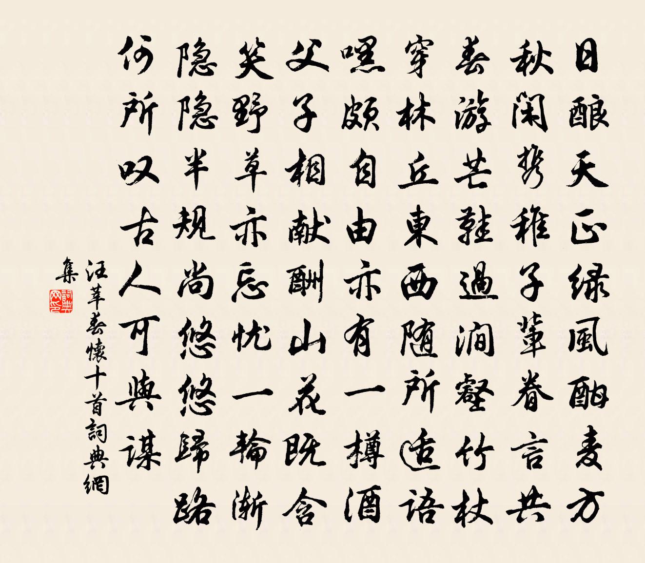詩詞名句歷史字典書法欣賞書法字典國語詞典說文解字康熙字典古漢語字典標 題 作 者 詩 句 春懷十首作者:汪莘 朝代:宋代春懷十首原文日釀天正綠,風酣麥方秋。閒攜稚子輩,眷言共春遊。芒鞋過澗壑,竹杖穿林丘。東西隨所適,語嘿頗自由。亦有一樽酒,父子相獻酬。山花既含笑,野草亦忘憂。一輪漸隱隱,半規尚悠悠。歸路何所嘆,古人可與謀。詩詞問答問:春懷十首的作者是誰?答:汪莘問:春懷十首寫於哪個朝代?答:宋代汪莘春懷十首書法欣賞春懷十首書法作品詩詞推薦句李大力〔宋代〕後院落花人不到,黃鸝飛下石榴陰。九日同鬍子遠攜三子以重陽能插菊花無分韻李石〔宋代〕去年萬里客,仰看秋雲孤。今年返南畝,頗復懷西湖。今日果何日,淑氣天四隅。憑高送無目,風景未覺殊。試問途次口占三首蘇泂〔宋代〕棗子萬星攢,良苗綠一端。撲籃多秀色,吹帽受風寒。擾擾水和尚,泠泠山藥官。近詩差進步,安得老梅看。謝三提乾召飲三首陳造〔宋代〕不慣香風擁妓車,分當清坐冷官衙。歸來自笑殺風景,卻把茶甌對菊花。哥舒翰引諺佚名〔唐代〕狐向窟嗥不祥。閒居即事王炎〔宋代〕壯年多旅寓,晚歲遽鯝居。傷往遂成賦,解嘲休著書。經營惟種蒔,來往但樵漁。百念今灰冷,雖貧自晏如。賈師憲望海樓成次韻陳宜中〔宋代〕名與山高千古重,恩如海闊一身輕。門下少年初幕府,夢隨諸吏上崢嶸。題傅岩叟悠然閣三章章八句陳文蔚〔宋代〕悠然君之見,不與凡見同。正似東籬下,山忽在眼中。誰昔夜登閣,歌罷飲亦終。恍若有真契,可知不可窮。瑞鷓鴣蘇軾〔宋代〕城頭月落尚啼烏。朱艦紅船早滿湖。鼓吹未容迎五馬,水雲先已漾雙鳧。映山黃帽螭頭舫,夾岸青煙鵲尾爐。老病僧慧僧利同往南山陳師道〔宋代〕驥騄同群鴻雁行,登臨端為作重陽。南台二謝風流絕,準擬歸來古錦囊。蝶戀花毛滂〔宋代〕江接寒溪家已近。想見秋來,松菊荒三徑。目送吳山秋色盡。星星卻入雙蓬鬢。鳧短鶴長真箇定。勳業來遲,不用賢者之孝二百四十首丁儀子林同〔宋代〕尚自不與米,何堪大遺金。丁儀為有子,文略是誣親。詠水仙花五韻陳與義〔宋代〕仙人緗色裘,縞衣以裼之。青帨紛委地,獨立東風時。吹香洞庭暖,弄影清晝遲。寂寂籬落陰,亭亭與予期。誰知呈立齋先生車若水〔宋代〕童牙苦呫畢,嚼瓜燈燼爛。衡縮高於丘,才作文字看。精微隔幾塵,健筆抵流湍。開眼天地燎,始識用書難。千葩田假限疾不獲還莊載想田園兼思親友率成短韻…贈杜幽素李嶠〔唐代〕遊宦勞牽網,風塵久化衣。跡馳東苑路,望阻北岩扉。及此承休告,聊將狎遁肥。十旬俄委疾,三徑且殊歸。茂陵病免後喜除賓客白居易〔唐代〕臥在漳濱滿十旬,起為商皓伴三人。從今且莫嫌身病,不病何由索得身?次韻參寥寄少游(或為釋元淨作)蘇軾〔宋代〕岩棲木石已皤然,交舊何人慰眼前。素與晝公心印合,每思秦子意珠圓。當年步月來幽谷,拄杖穿雲冒夕煙。台閣上張廉訪三首熊禾〔宋代〕書生久嘆三綱絕,天道那無一發存。東海不須更憂旱,邇來一婦已無冤。代人乞花李益〔唐代〕繡戶朝眠起,開簾滿地花。春風解人意,欲落妾西家。紹慶羅巡檢陽枋〔宋代〕蕉溪煙水似羅浮,君著軒亭瞰碧流。東館聽雞書伴月,南邊休馬鐸沈秋。憐人得飽禽捐粟,送客登山岩倚舟。種玉名句推薦若說沒奇緣,今生偏又遇著他,若說有奇緣,如何心事終虛化?曹雪芹《紅樓夢·第五回》 綠葉青跗映丹萼,與君裴回上金閣。王勃《落花落》 野老念牧童,倚杖候荊扉。王維《渭川田家》 紅樓隔雨相望冷,珠箔飄燈獨自歸。李商隱《春雨》 夫君子愛口,孔雀愛羽,虎豹愛爪,此皆所以治身法也。劉向《說苑·雜言》 何用慰相思,裁書寄關右。李益《送諸暨王主簿之任》 素衣莫起風塵嘆,猶及清明可到家。陸游《臨安春雨初霽》 愚而好自用,賤而好自專。生乎今之世,反古之道。如此者災及其身者也。子思《中庸·第二十八章》 相逢不飲空歸去,洞口桃花也笑人。佚名《增廣賢文·上集》 枯枝無醜葉,涸水吐清泉李白《長歌行》
