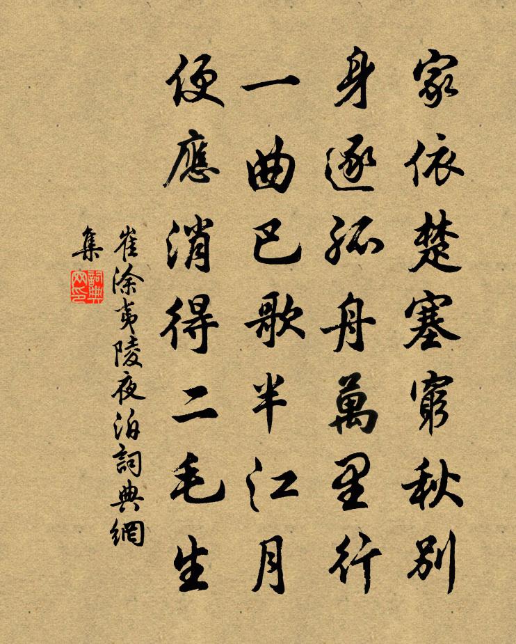 家依楚塞窮秋別,身逐孤舟萬里行。一曲巴歌半江月,便應消得二毛生。