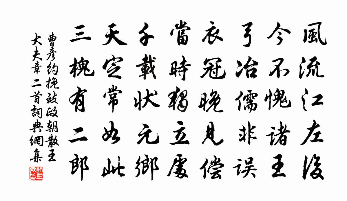 詩詞名句歷史字典書法欣賞書法字典國語詞典說文解字康熙字典古漢語字典標 題 作 者 詩 句 挽致政朝散王大夫章二首作者:曹彥約 朝代:宋代挽致政朝散王大夫章二首原文風流江左後,今不愧諸王。弓冶儒非誤,衣冠晚見償。當時獨立處,千載狀元鄉。天定常如此,三槐有二郎。詩詞問答問:挽致政朝散王大夫章二首的作者是誰?答:曹彥約問:挽致政朝散王大夫章二首寫於哪個朝代?答:宋代曹彥約挽致政朝散王大夫章二首書法欣賞挽致政朝散王大夫章二首書法作品詩詞推薦和司徒侍中舟中再賦一闋強至〔宋代〕燕子迎船貼岸飛,波光流色日暉暉。都人倍戀行春樂,只恐恩容晝錦歸。送沈子歸江東(一作送沈子福之江東)王維〔唐代〕楊柳渡頭行客稀,罟師盪槳向臨圻。唯有相思似春色,江南江北送君歸。醉桃源/阮郎歸楊 * 〔宋代〕大都修煉似蒸沙。陰陽失兩家。正如飛鱉舞長蛇。寧知飲月華。回老貌,假群娃。熏蒸成絳霞。但教心地不傾斜。匣中琴於鄴〔唐代〕世人無正心,蟲網匣中琴。何以經時廢,非為娛耳音。獨令高韻在,誰感隙塵深。應是南風曲,聲聲不合今。春晚二絕呂江〔宋代〕年華冉冉暗中移,倦客傷春只自知。雨後桃花紅未減,人情早自向荼醾。登浙江樓趙與滂〔宋代〕兩岸共明月,闌乾霄漢間。風波浙江水,砥柱海門山。晝夜潮消長,利名人往還,不如沙上鷺,玉立一身閒。次韻仇仁近用韻見示五首方回〔宋代〕治任猶近旦中觿,旅次今移日至圭。惡況味逢佳節序,懶情懷怯好詩題。向來守黑元知白,幾輩平東復鎮西。定是召拜御史大夫贈袁天綱杜淹〔唐代〕伊呂深可慕,松喬定是虛。系風終不得,脫屣欲安如。且珍紈素美,當與薜蘿疏。既逢楊得意,非復久閒居。外舅安撫游東湖一聊雲潤衣紅濕池荷雨拂而清劉學箕〔宋代〕庚伏人間暑氣隆,納涼留客詠詩翁。潤衣紅濕池荷雨,拂面清泠檻竹風。沙觜舊痕平不露,野灣新漲曲相通。畫橈送吳太博赴莆中杜耒〔宋代〕貴為五馬只儒酸,都說先生大耐官。去國十年雖已久,愛君一念不曾寒。定知前輩如公少,好與今人作樣看。歸日磬湖趙蕃〔宋代〕鑿開何自來,名得因形似。似欲使先生,因茲號居士。四檻花曹勛〔宋代〕鴛瓦霜濃,獸爐煙冷,瑣窗漸明。芙蓉紅暈減,疏篁曉風清。睡覺猶眠,怯新寒,仍宿酒,尚有餘酲。擁閒衾。先偶成 其六王冕〔元代〕玉漏無聲落草廬,荒村遙夜石燈孤。開門探雪三尺許,舉眼看山一寸無。誰閔將軍窮窟穴?空多公子夢氍毹。老吾別金顏老李石〔宋代〕涪州一別十年強,君自遊行幾退藏。好是金顏無佛處,卻來鐵面坐禪床。題酸棗驛前碑張祜〔唐代〕蒼苔古澀自雕疏,誰道中郎筆力餘。長愛當時遇王粲,每來碑下不關書。奉陪陸使君長源諸公游支硎寺(寺即支公學道處)皎然〔唐代〕嘗覽高逸傳,山僧有遺蹤。佐游繼雅篇,嘉會何由逢。塵世即下界,色天當上峰。春暉遍眾草,寒色留高松。繚繞寄真西山危稹〔宋代〕有美真夫子,平生心泰和。令名香宇宙,厚德福山河。有客湖湘至,談公政化我。莫侵霜鬢否,書至報如何。秋夜集李式西齋趙湘〔唐代〕澤國秋光淡,詩家夜會清。雨余逢月色,風靜得琴聲。小徑幽蟲絕,寒階落葉並。嘗茶不擬睡,自起繞池行。太后閣春帖子趙湘〔唐代〕平曉開朱戶,輕寒御練衣。宮童移鈿扇,慶壽早期歸。失調名佚名〔宋代〕斷腸屈曲屏山。名句推薦憶共人人睡魂蝶亂,夢鸞孤。趙長卿《更漏子·燭消紅》 君為女蘿草,妾作菟絲花。李白《古意》 山有扶蘇,隰有荷華。佚名《山有扶蘇》 幸災不仁,乘危不武張廷玉《明史·列傳·卷一百三十六》 治國常富,而亂國常貧。管仲《管子·治國》 葡萄美酒夜光杯,欲飲琵琶馬上催。王翰《涼州詞二首·其一》 求之有道,得之有命,是求無益於得也,求在外者也。孟子《孟子·盡心章句上·第三節》 江流天地外,山色有無中。王維《漢江臨泛 / 漢江臨眺》 雪雰雰而薄木兮,雲霏霏而隕集。劉向《九嘆》 命隨年欲盡,身與世俱忘;文天祥《除夜》