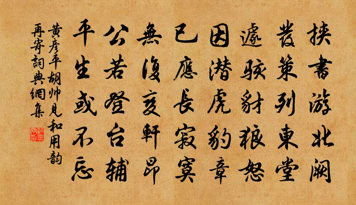 詩詞名句歷史字典書法欣賞書法字典國語詞典說文解字康熙字典古漢語字典標 題 作 者 詩 句 胡帥見和用韻再寄作者:黃彥平 朝代:宋代胡帥見和用韻再寄原文挾書游北闕,發策列東堂。遽駭豺狼怒,因潛虎豹章。已應長寂寞,無復變軒昂。公若登台輔,平生或不忘。詩詞問答問:胡帥見和用韻再寄的作者是誰?答:黃彥平問:胡帥見和用韻再寄寫於哪個朝代?答:宋代黃彥平胡帥見和用韻再寄書法欣賞胡帥見和用韻再寄書法作品詩詞推薦失調名佚名〔宋代〕滿地榆錢,算來難買住春歸。和寄白聖均文同〔宋代〕年來雙鬢已絲絲,頭角低摧羽翼垂。無命不窮常自笑,有謀皆拙敢求知。榮途謾說居三館,僻郡還甘守一麾。賴是偈頌二百零五首釋正覺〔宋代〕不可得一,不可得異,我如是也彼如是。兩莖眉現燄光身,百草頭揚祖師意。歸雲誰使就青山,落華自得隨流水。李氏宮曾極〔宋代〕埋愁無地奈君何,可是黃壚飲恨多。玉鏡台前棄脂水,深泉流汞尚盈科。六州佚名〔宋代〕承天統,聖主應昌辰。寶籙降,飈游至,瑞命慶惟新。崇大號,仰奉高真。獻歲當初吉,天下皆春。謁秘宇、藻衛題三士軒詩郭印〔宋代〕獨立未為真,萬法皆吾侶。故於竹柏間,強名相爾汝。偈頌七十一首釋了惠〔宋代〕權實雙行,主賓互立。拿空塞空,以的破的。六朝門李集周曇〔唐代〕忠諫能堅信正臣,三沈三屈竟何雲。每沈良久方能語,及語還呼桀紂君。漁家傲(送張元唐省親秦州)蘇軾〔宋代〕一曲陽關情幾許。知君欲向秦川去。白馬皂貂留不住。回首處。孤城不見天霖霧。到日長安花似雨。故關楊柳初飛奉和襲美酒中十詠酒壚陸龜蒙〔唐代〕錦里多佳人,當壚自沽酒。高低過反坫,大小隨圓瓿。數錢紅燭下,滌器春江口。若得奉君歡,十千求一斗。出江鄭剛中〔宋代〕淨練已欣平似熨,更因過雨助清深。何人孤笛穿雲杪,遠岸歸舟入樹陰。鷗鳥慣看遷客面,江山偏識老夫心。半鉤以庭前海棠梨花一枝寄李十九員外韓偓〔唐代〕二月春風澹蕩時,旅人虛對海棠梨。不如寄與星郎去,想得朝回正畫眉。戲效連珠疊韻體陳棣〔宋代〕溯流遲澀須流輕,石岸崎嶇沙岸平。高樹影藏低樹影,前灘聲掩後灘聲。飛禽飛去語禽語,歸客歸休行客行。望斷山居晚眺贈王道士王勃〔唐代〕金壇疏俗宇,玉洞侶仙群。花枝棲晚露,峰葉度晴雲。斜照移山影,回沙擁籀文。琴尊方待興,竹樹已迎曛。早春遊樊川野居卻寄李端校書兼呈…司空曙主簿耿湋拾遺盧綸〔唐代〕白水遍溝塍,青山對杜陵。晴明人望鶴,曠野鹿隨僧。古柳連巢折,荒堤帶草崩。陰橋全覆雪,瀑溜半垂冰。斗鼠和昌言官舍十題水紅司馬光〔宋代〕夢想水鄉游,階庭植籠古。宛如江外行,高帆落寒浦。煙枝靜疏秀,風穗間低舉。於今看未好,漠漠宜秋雨。有懷舍弟逢年時歸婺源以詩督之洪邁〔宋代〕木落天未霜,君歸定何時。相思如驚鵲,中夜未安枝。夢中見阿連,鏘然詠新詩。寤驚衰葉翻,道是步屐移。攬衣二十三日即事張耒〔宋代〕已逢嫵媚散花峽,不怕艱危道士磯。啼鳥似逢人勸酒,好山如為我開眉。風標公子鷺得意,跋扈將軍風斂威。到舍贊三十六祖頌釋印肅〔宋代〕降生月氏國,名鳩摩羅多。宿乘尊者記,不二阿彌陀。絕句六十四首張伯端〔宋代〕玄珠有象逐陽生,陽極陰消漸剝形。十月霜飛丹始熟,恁時神鬼也須驚。名句推薦多情只有春庭月,猶為離人照落花。張泌《寄人》 城上春雲覆苑牆,江亭晚色靜年芳。杜甫《曲江對雨》 神閒氣靜,智深勇沉,此八字是幹大事的本領。王永彬《圍爐夜話·第一七六則》 高情已逐曉雲空。不與梨花同夢。蘇軾《西江月·梅花》 今日樓台鼎鼐,明年帶礪山河辛棄疾《西江月·堂上謀臣尊俎》 枕中雲氣千峰近,床底松聲萬壑哀。曾公亮《宿甘露寺僧舍》 當時相候赤欄橋,今日獨尋黃葉路。周邦彥《玉樓春·桃溪不作從容住》 白髮三千丈,緣愁似個長。李白《秋浦歌十七首》 一春夢雨常飄瓦,盡日靈風不滿旗。李商隱《重過聖女祠》 艇子幾時同泛?待折荷花臨鑒。厲鶚《謁金門·七月既望湖上雨後作》