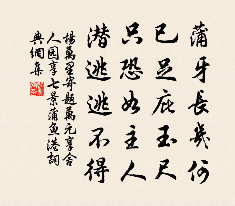詩詞名句歷史字典書法欣賞書法字典國語詞典說文解字康熙字典古漢語字典標 題 作 者 詩 句 寄題萬元享舍人園享七景蒲魚港作者:楊萬里 朝代:宋代原文蒲牙長几何,已足庇玉尺。只恐如主人,潛逃逃不得。詩詞問答問:《寄題萬元享舍人園享七景蒲魚港》的作者是誰?答:楊萬里問:該詩寫於哪個朝代?答:宋代問:楊萬里的名句有哪些?答:楊萬里名句大全書法欣賞寄題萬元享舍人園享七景蒲魚港書法作品詩詞推薦盤墅送院獨步黃由〔宋代〕才到松陵即是家,參天檜柏古槎牙。杖藜終日頻來往,不羨堤邊呼築沙。過涪翁墓二首王炎〔宋代〕千古詩中老斫輪,久埋玉樹去修文。野人指點青山下,此是黃家魯直墳。華清引(感舊)蘇軾〔宋代〕平時十月幸蘭湯。玉甃瓊梁。五家車馬如水,珠璣滿路旁。翠華一去掩方床。獨留煙樹蒼蒼。至今清夜月,依前過義寧禱霽未應曾豐〔宋代〕叢祠精舍里,所至以柴燔。未沐佛青眠,何圖神素餐。雨師佯弄霽,農叟暗含冤。老令深相誤,從知罪莫原。漫興張鎡〔宋代〕樂天閒適文章累,陶令歸來兒子憂。兩事吾今渾放下,看山臨水更何愁。賦玩珠岩任續〔宋代〕山林自空闃,遊人事幽討。岫{左山右晃}與雲關。來跡可堪掃。艮維矗孤峰,玉簪倚天杪。桂水琉璃碧,洄洑下故北平公輓歌上官儀〔唐代〕木落園林曠,庭虛風露寒。北里清音絕,南陔芳草殘。遠氣猶標劍,浮雲尚寫冠。寂寂琴台晚,秋陰入井幹。郢州二首陳造〔宋代〕滿慰人間渴雨心,未收雲靄定為霖。憐渠沾水論涓滴,況我行舟苦滯淫。已漲麥田千里碧,更添沙料一篙深。小軿用一代不數人百年能幾見為韻詩賦十章呈陳君趙蕃〔宋代〕流傳昔多聞,邂逅今既見。顧我何足收,期公示深眷。水調歌頭(次袁仲機韻)朱熹〔宋代〕長記與君別,丹鳳九重城。歸來故里,愁思悵望渺難平。今夕不知何夕,得共寒潭煙艇,一笑俯空明。有酒徑須醉頌古一百首釋智愚〔宋代〕不落因果,突出野狐。人心似鐵,官法如爐。不昧因果,得脫野狐。張柔直知郡輓詩二首李彌遜〔宋代〕金蘭臭味百年期,生死那知欻兩岐。路斷束芻難寄恨,封成掛劍謾傳悲。向來不誦凌雲賦,此日休歌薤露詩。自愧題庵壁陸游〔宋代〕萬里東歸白髮翁,閉門不復與人通。綠樽浮蟻狂猶在,黃紙棲鴉夢已空。薄技徒勞真刻楮,浮生隨處是飛蓬。湖邊南風歌先秦無名〔先秦〕南風之薰兮。可以解吾民之慍兮。南風之時兮。可以阜吾民之財兮。建康鹿鳴宴致語程珌〔宋代〕河南貢士紫萄詩,不比尋常貢士時。一老堂堂強國棟,四筵濟濟瑞庭芝。傅聞座主趨璜召,恰與諸生赴詔期。宴罷山礬陶夢桂〔宋代〕香遠花繁葉耐冬,人人道與木犀同,一般賽得木犀過,能為人間報歲豐。景陽井易士達〔宋代〕白蓮閣下小方池,後主曾於此避隋。知擁二妃何處去,至今石脈帶臙脂。岳州眾湖阻風二首王周〔唐代〕眾湖湖口系蘭船,睡起中餐又卻眠。風伯如何解回怒,數宵檣倚碧蘆煙。偶系扁舟枕綠莎,旋移深處避驚波。曉來櫂歌九章寄彭鶴林白玉蟾〔宋代〕岸上酒旗舞,寒蕪生秋風。誰家六七童,手持金芙蓉。裴相國贊釋惟一〔宋代〕咄這措大,極是叵耐。 * 戈矛,入我疆界。撲滅圓覺大光明藏,瀝乾圭無邊義海。所至皆望風退衂,末後遭櫱山名句推薦歸師勿遏,古人畏之,死地兵不可輕 也。李大師、李延壽《南史·列傳·卷二十五》 蜂爭粉蕊蝶分香,不似垂楊惜金縷。溫庭筠《惜春詞》 空山新雨後,天氣晚來秋。王維《山居秋暝》 綠葉翠莖,冒霜停雪。左思《三都賦》 微雨如酥,草色遙看近卻無。蘇軾《減字木蘭花·鶯初解語》 天時不如地利,地利不如人和。孟子《孟子·公孫丑章句下·第一節》 櫪馬苦踡跼,籠禽念遐征。張九齡《秋晚登樓望南江入始興郡路》 處事最當熟思緩處。熟思則得其情,緩處則得其當。陳繼儒《小窗幽記·集醒篇》 以小人之慮,度君子之心。劉義慶《世說新語·雅量》 音塵遠,楚天危樓獨倚。陸游《月上海棠·斜陽廢苑朱門閉》