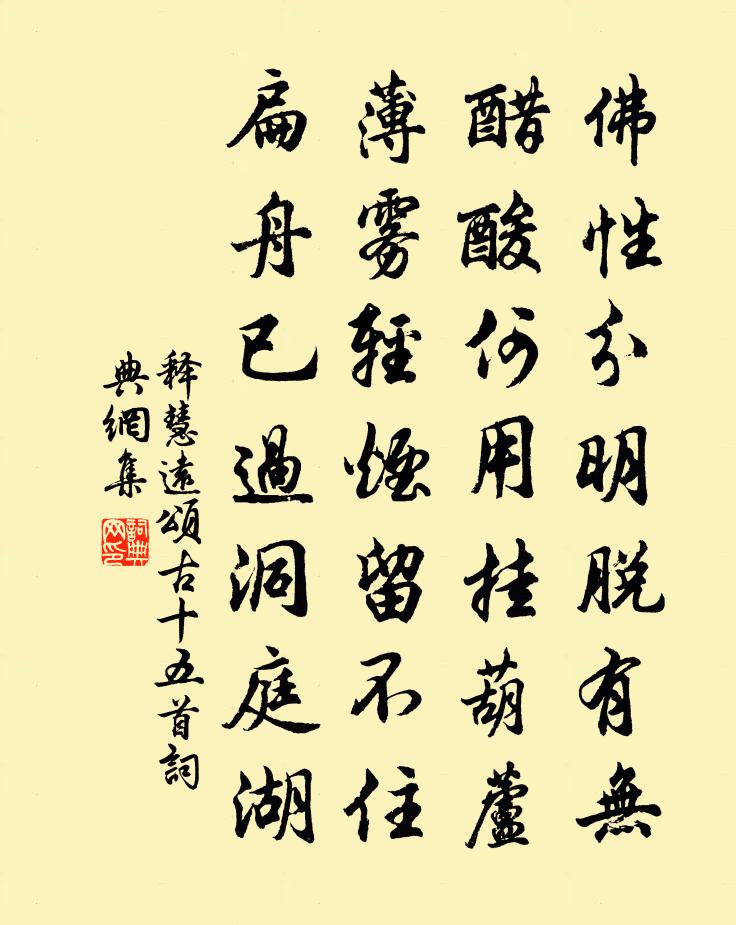 詩詞名句歷史字典書法欣賞書法字典國語詞典說文解字康熙字典古漢語字典標 題 作 者 詩 句 頌古十五首作者:釋慧遠 朝代:宋代頌古十五首原文佛性分明脫有無,醋酸何用掛葫蘆。薄霧輕煙留不住,扁舟已過洞庭湖。詩詞問答問:頌古十五首的作者是誰?答:釋慧遠問:頌古十五首寫於哪個朝代?答:宋代釋慧遠頌古十五首書法欣賞頌古十五首書法作品詩詞推薦藏一山房倪龍輔〔宋代〕屋小書千古,身閒心五湖。從人笑迂闊,於道轉清孤。涯涘觀詩硯,陽春借酒壺。江邊折 * ,共感老頭顱。答李浣三首韋應物〔唐代〕孤客逢春暮,緘情寄舊遊。海隅人使遠,書到洛陽秋。馬卿猶有壁,漁父自無家。想子今何處,扁舟隱荻花。林中感寓二首何夢桂〔宋代〕西風落日怕登樓,倚遍闌乾萬古愁。衰漢竟成三國誤,秣陵不蓋六朝羞。江山有恨留青史,天地無情送白頭。擊碎七月十三夜用燈牌字韻湊成一詩與諸賓一笑文天祥〔宋代〕赤壁當年賦子虛,西風忽復到菰蒲。蟾蜍影里千秋鑒,蟋蟀聲中七月圖。詩思飄飄入雲漢,歌聲隱隱動江湖。萬家櫻桃陳與義〔宋代〕四月江南黃鳥肥,櫻桃滿市粲朝暉。赤瑛盤裡雖殊遇,何似筠籠相發揮。頃嘗將漕淮東林子長今膺是選因以小詩述懷庶虞儔〔宋代〕淮邊陳跡試重論,走遍西途落木村。依舊江山連北固,承平池館羨東園。中原入望堪垂涕,古汴無情尚有痕。歲漕已亥季秋至淨居思大智者場院因瞻二士相三日李彌遜〔宋代〕香斷寒爐古廟空,金毛一去了無蹤。分明曾得真訊息,猶有參天十萬松。次鄭朴翁國正見寄黃庚〔宋代〕雲深紅日出林遲,晞髮檐前力未衰。老愛歸田追靖節,狂思入海訪安期。春風巷陌楊花後,故國江山杜宇時,一種南郊大禮慶成詩五首右朝享景靈宮蘇頌〔宋代〕惟宋五世,將郊泰玄。祗若前典,欽崇道尊。其日吉午,天時薄寒。帝出齋寢,朝神紫垣。降輅就次,被龍搢山。皇太子頻賜存問,並索唱和新詩,因有陳謝廣宣〔唐代〕望苑招延後,禪扉訪道餘。祗言俟文雅,何意及庸虛。率性多非學,緣情偶自書。清風聞寺響,白日見心初。重道襄陽公宅飲孟浩然〔唐代〕窈窕夕陽佳,丰茸春色好。欲覓淹留處,無過狹斜道。②綺席捲龍鬚,香杯浮瑪瑙。③北林積修樹,南池生別島。讀何斯舉黃州秋居雜詠次其韻陸游〔宋代〕少從長者游,麤聞聖人道,日食雖一簞,頗覺顏色好。辛勤五十年,猶秉後凋操。風俗日已移,令人惡懷抱。紛紛贛縣道中有懷晦庵用江東日暮云為韻作五詩寄趙蕃〔宋代〕我行向可許,貢江與章江。悠悠異所見,俗變服亦龐。定遷本中州,來南已殊邦。況此接荒服,寸心那得降。題延平張相公廟陳宓〔宋代〕地下寶光猶解見,眼前天象卻茫然。君恩自古難貪戀,乃父反輸少子賢。述懷再次韻陳造〔宋代〕高車駟馬笑雞棲,亦笑糟糟與汨泥。魯酒得間聊復飲,晉輿投老偶然題。春冰自水收新悟,雨矢無鄉悔舊迷。尚有題劉玉潭詩王諶〔宋代〕萬古玉潭水,君何獨擅名。多應吟思苦,一似此泉清。山澤供高隱,江湖已著聲。小詩拈未出,更欲與君評。顏闔蘇軾〔宋代〕顏闔古有道,躬耕自衣食。區區魯小邦,不足隱明德。軺軒來我門,聘幣繼金璧。山門應使者,耕稼不謀國。但疑夜意陸游〔宋代〕名姓人誰記,形骸老漸侵。酒慳停劇飲,詩退負高吟。雨隔疏更斷,雲藏古院深。衰遲常兀兀,惆悵少年心。端研詩贈王欲陶弼〔宋代〕端石如池狀,潤疑雲雨通。粗官不識字,好去伴詩翁。送崔員外黔中監選綦毋潛〔唐代〕持衡出帝畿,星指夜郎飛。神女雲迎馬,荊門雨濕衣。聽猿收淚罷,系雁待書稀。蠻貊雖殊俗,知君肝膽微。名句推薦閉門家裡坐,禍從天上來。馮夢龍《醒世恆言·卷十六》 紅粉當壚弱柳垂,金花臘酒解酴醿。賈至《春思二首》 欲潔何曾潔,雲空未必空。可憐金玉質,終陷淖泥中。曹雪芹《紅樓夢·第五回》 父耕原上田,子劚山下荒。聶夷中《田家》 風引龍虎旗,歌鐘昔追攀。李白《登邯鄲洪波台置酒觀發兵》 祿不患其不來,患祿來,而不能無愧其祿。王永彬《圍爐夜話·第四四則》 飲馬渡秋水,水寒風似刀。王昌齡《塞下曲四首》 不怨天,不尤人。孔子弟子《論語·憲問篇》 鳥雀不知郊野好,穿花翻戀小庭中。高珩《春日雜詠》 昔嘆當年無李牧,今知江左有夷吾陳亮《送文子轉漕江東二首》