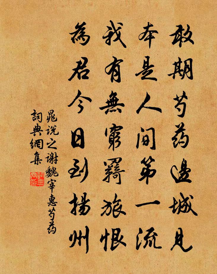 詩詞名句歷史字典書法欣賞書法字典國語詞典說文解字康熙字典古漢語字典標 題 作 者 詩 句 謝魏宰惠芍藥作者:晁說之 朝代:宋代謝魏宰惠芍藥原文敢期芍藥邊城見,本是人間第一流。我有無窮羇旅恨,為君今日到揚州。詩詞問答問:謝魏宰惠芍藥的作者是誰?答:晁說之問:謝魏宰惠芍藥寫於哪個朝代?答:宋代晁說之謝魏宰惠芍藥書法欣賞謝魏宰惠芍藥書法作品詩詞推薦成都運司西園亭詩西園許將〔宋代〕高牙負北郭,芳園路西轉。鳥鳴戀故木,蘭茁歸新畹。坐延花景深,行倚筇枝軟。翳然思林木,會心不在遠。晝寐李群玉〔唐代〕筠桂晚蕭疏,任人嘲宰予。鳥驚林下夢,風展枕前書。正作莊生蝶,誰知惠子魚。人間無樂事,直擬到華胥。浮生吟邵雍〔宋代〕浮生曉露邊,且喜又添年。動悔須有悔,求全未必全。處人心上事,道物性中言。寰宇雖然廣,其誰曰不然。潘豳老出十數詩皆有懷蘇儋州者因賦二首之一賀鑄〔宋代〕人煙寂絕鬼門關,更指儋州杳莽間。三四月交天漏雨,東南地盡水浮山。依迷春草鴒原失,響像秋風鶴馭還。回羨送龐中秀才文同〔宋代〕曼倩學精知蜥蜴,公明術妙識蜘蛛。臨邛復有龐成叔,萬事先將入卦圖。題城南書院三十四詠張栻〔宋代〕凌晨騎馬路新涼,來挹湖邊風露香。妙意此時誰共領,波間鷗鷺靜相忘。偶作仇遠〔宋代〕元亭真止酒,昭文不鼓琴。文章成小伎,道德負初心。故友凋零盡,中年感慨深。從來麋鹿性,只是愛山林。挽仁宗皇帝辭五首鄭獬〔宋代〕付託神靈器,子孫千萬年。果為天下福,遂得聖人傳。已定無疆業,方成顧命篇。明朝無一事,脫屣或登仙。水仙子·詠江南張養浩〔元代〕一江煙水照晴嵐,兩岸人家接畫檐。菱荷叢一船秋光淡。看沙毆舞再三,卷香風十里珠簾。畫船兒天邊至,酒旗兒菩薩蠻(西湖)蘇軾〔宋代〕秋風湖上蕭蕭雨。使君欲去還留住。今日漫留君。明朝愁 * 。佳人千點淚。灑向長河水。不用斂雙蛾。路人啼更鐘山任希夷〔宋代〕城如虎踞來擒虎,山號盤龍屬臥龍。天險不能回運去,地靈元自要人雄。柴門晚步張嵲〔宋代〕柴門一延竚,暮色集四山。雨歇林藹變,歲陰嵐氣寒。峰高看月上,巢昏遲烏還。游眺暫自適,裴回反長嘆。幽思登城五首劉克莊〔宋代〕漫費人蒸土,常如物潰堤。傍疑為息壤,下恐有蟠泥。綠竹閣李彌遜〔宋代〕草木盡改色,孤標綠正繁。泄雲扶勁節,欹石護盤根。靜者宜投跡,高人時避喧。歲寒松柏共,何必在梁園。詠上竿伎晏殊〔宋代〕百尺竿頭褭褭身,足騰眼掛駭傍人。漢陰有叟君知否,抱瓮區區亦未貧。虞美人(在蕪湖待仲甄巨卿未至作)李流謙〔宋代〕吳波亭畔千行柳。直恁留人久。晚來船檻再三憑。又是一鉤新月、照江心。故人有約何時到。白地令人老。只愁酒秋夜偶書趙師秀〔宋代〕此生謾與蠹魚同,白髮難收紙上功。輔嗣易行無漢學,玄暉詩變有唐風。夜長燈燼挑頻落,秋老蟲聲聽不窮。多少好事近張炎〔宋代〕蔥倩滿身雲,酒暈淺融香頰。水調數聲嫻雅,把芳心偷說。風吹裙帶下階遲,驚散雙蝴蝶。佯拈花枝微笑,溜晴波和孫器這清風樓司馬光〔宋代〕賢侯宴枚馬,歌鼓事繁華。晚吹來千晨,清商落萬家。平原轉疏雨,遠樹隔殘霞。宋玉雖能賦,還須念景差。春暮途次華山下許棠〔唐代〕他皆宴牡丹,獨又出長安。遠道行非易,無圖住自難。離城風已暖,近岳雨翻寒。此去知誰顧,閒吟只自寬。名句推薦鳥雀呼晴,侵曉窺檐語。周邦彥《蘇幕遮·燎沉香》 學者不患才之不贍,而患志之不立。徐幹《中論·上卷·治學》 此地一為別,孤蓬萬里征。李白《送友人》 風老鶯雛,雨肥梅子,午陰嘉樹清圓。周邦彥《滿庭芳·夏日溧水無想山作》 文章合為時而著,歌詩合為事而作。白居易《與元九書》 清秋幕府井梧寒,獨宿江城蠟炬殘。杜甫《宿府》 豈知民力艱,顆米皆琳琅。黃燮清《秋日田家雜詠》 鷫鸘換美酒,舞衣罷雕龍。李白《怨歌行》 輕淘起,香生玉塵,雪濺紫甌圓。米芾《滿庭芳·詠茶》 江南三月聽鶯天,買酒莫論錢。吳錫麒《少年游·江南三月聽鶯天》