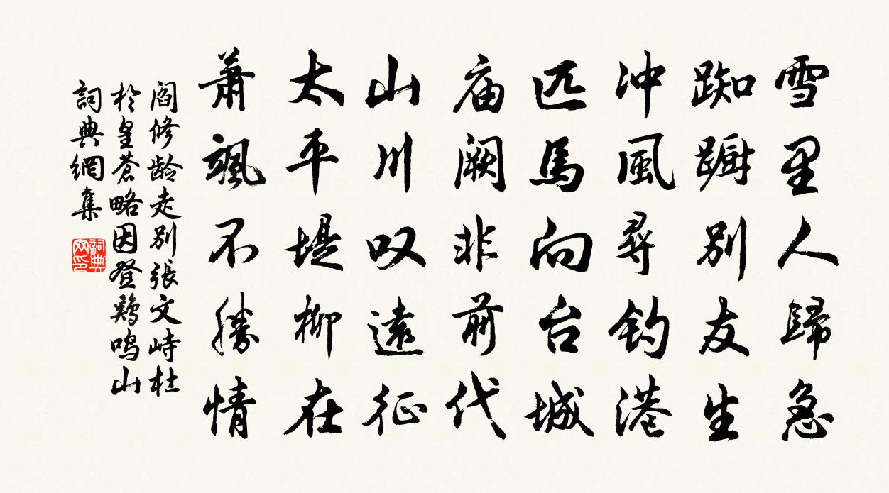 - 舉頭忽見衡陽雁。千聲萬字情何限。陳達叟《菩薩蠻·舉頭忽見衡陽雁》