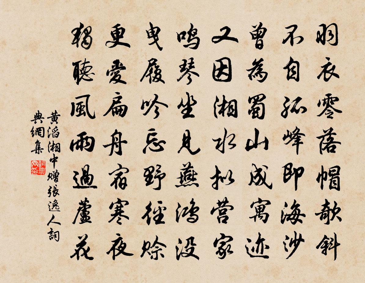 詩詞名句歷史字典書法欣賞書法字典國語詞典說文解字康熙字典古漢語字典標 題 作 者 詩 句 湘中贈張逸人作者:黃滔 朝代:唐代湘中贈張逸人原文羽衣零落帽欹斜,不自孤峰即海沙。曾為蜀山成寓跡,又因湘水擬營家。鳴琴坐見燕鴻沒,曳履吟忘野徑賒。更愛扁舟宿寒夜,獨聽風雨過蘆花。詩詞問答問:湘中贈張逸人的作者是誰?答:黃滔問:湘中贈張逸人寫於哪個朝代?答:唐代問:湘中贈張逸人是什麼體裁?答:七律黃滔湘中贈張逸人書法欣賞湘中贈張逸人書法作品注釋全唐詩:卷705-40詩詞推薦梅花陸游〔宋代〕我與梅花有舊盟,即今白髮未忘情。不愁索笑無多子,惟恨相思太瘦生。身世何曾怨空谷,風流正自合傾城。增冰夜半聞雨再用前韻王炎〔宋代〕轆轤百尺汲無水,映日四山雲不起。朱轓浪說勸農桑,衣食何從可甘美。禱而得雨不苦旱,竊疑此殆偶然爾。夜半和翁子秀夜過溪橋韻李處權〔宋代〕千里無雲湛九霄,月明花露滴春橋。何時心緒如楊柳,笑倚春風萬丈條。清明方岳〔宋代〕何哉清明乃爾愁,雨聲中間花事休。一春留春不肯住,況無酒與春相酬。牆頭筍已吹成竹,奪我齋廚蒼玉束。滿床虞美人 玉梳贈內子姚燧〔元代〕相輝瑜珥瑤釵鳳。寶翼蜻蜓動。新妝又得水蒼梳。人道秋風何物不瓊踞。人無玉質容何害。玉德斯堪愛。尚慚猶未送吳僉判之官濠州魏杞〔宋代〕舉觴屬明月,送君江上舟。王中知有程,翩然不可留。濠梁古佳郡,觀魚記莊周。年來邊徼清,桑麻被田疇。有詔至趙莊鎮舍轎乘馬二首孔武仲〔宋代〕晴郊漠漠翠煙浮,乘興閒登棘下騮。風色斗回成凜冽,卻添貂帽擁駝裘。遼東山夜臨秋李世民〔唐代〕煙生遙岸隱,月落半崖陰。連山驚鳥亂,隔岫斷猿吟。崇山圖七賢詩張嵲〔宋代〕負郭幽崖面武當,襄江前占水雲長。四時景趣無窮盡,俱向公家靜隱堂。簡田升之時升之赴金陵吳則禮〔宋代〕建業風流端可憐,石城江色曉鮮鮮。鳥窺漢節梅花底,雨濕柁樓春水邊。霜發讎書有東觀,錦囊覓句屬南天。枯腸春中喜王九相尋(一題作晚春)孟浩然〔唐代〕二月湖水清,家家春鳥鳴。林花掃更落,徑草踏還生。酒伴來相命,開尊共解酲。當杯已入手,歌妓莫停聲。送馬戴入山顧非熊〔唐代〕古木亂重重,何人識去蹤。斜陽收萬壑,圓月上三峰。雲里泉縈石,窗間鳥下松。唯應採藥客,時與此相逢。山前紅葉張嵲〔宋代〕前山風落木,俯檻受斕斑。凌曉千花麗,經旬萬炬閒。詞人歌火繖,巴客訝燒山。不似庭花艷,開時瞬息間。過大散寄子駿文同〔宋代〕才過嘉陵心自喜,歸來一夜寫君書。明朝便送曾冰底,定有西行雙鯉魚。庚辰歲寓開元東羅漢閣丘葵〔宋代〕有崷者浮圖,屹其插穹昊。有墳者古道,淒其鞠成草。而我獨兢兢,於焉以終老。蚊梅堯臣〔宋代〕向晚化污積,群飛來戶庭。蟭螟許巢睫,琥珀為留形。夜色遍容蔽,雷音亦感聽。猶矜負山力,血食也沾醒。村中夜歸王鎡〔宋代〕風報輕寒入暮天,滯行多被酒留連。花村無月路全黑,竹屋有燈人未眠。雲氣蒼茫沉遠樹,春心浩蕩怯啼鵑。忽晴端午內中帖子詞夫人閣王珪〔唐代〕畫栱無塵乳燕飛,薰風時復度羅衣。君王避暑蓬萊殿,向晚笙歌簇輦歸。題李公麟山莊圖其五發真塢蘇轍〔宋代〕山開稍有路,水放亦成川。遊人得所息,真意方澹然。奉和韋曲莊言懷,貽東曲外族諸弟權德輿〔唐代〕韋曲冠蓋里,鮮原郁青蔥。公台睦中外,墅舍鄰西東。騶馭出國門,晨曦正曈曨。燕居平外土,野服參華蟲。疆畎名句推薦居善地,心善淵,與善仁,言善信,政善治,事善能,動善時。夫唯不爭,故無尤。老子《老子·道經·第八章》 柳柔搖不定,草短綠應難。張惠言《風流子·出關見桃花》 尋桃覓柳,開遍南枝未覺。辛棄疾《瑞鶴仙·賦梅》 朝作輕寒暮作陰,愁中不覺已春深。屈大均《壬戌清明作》 窮且益堅,不墜青雲之志。王勃《滕王閣序》 花過雨。又是一番紅素。燕子歸來愁不語。李好古《謁金門·花過雨》 青山朝別暮還見,嘶馬出門思舊鄉。李頎《送陳章甫》 綠萼添妝融寶炬,縞仙扶醉跨殘虹曹雪芹《詠紅梅花得“紅”字》 羞日遮羅袖,愁春懶起妝。魚玄機《贈鄰女 / 寄李億員外》 二十四橋仍在,波心蕩、冷月無聲。姜夔《揚州慢·淮左名都》