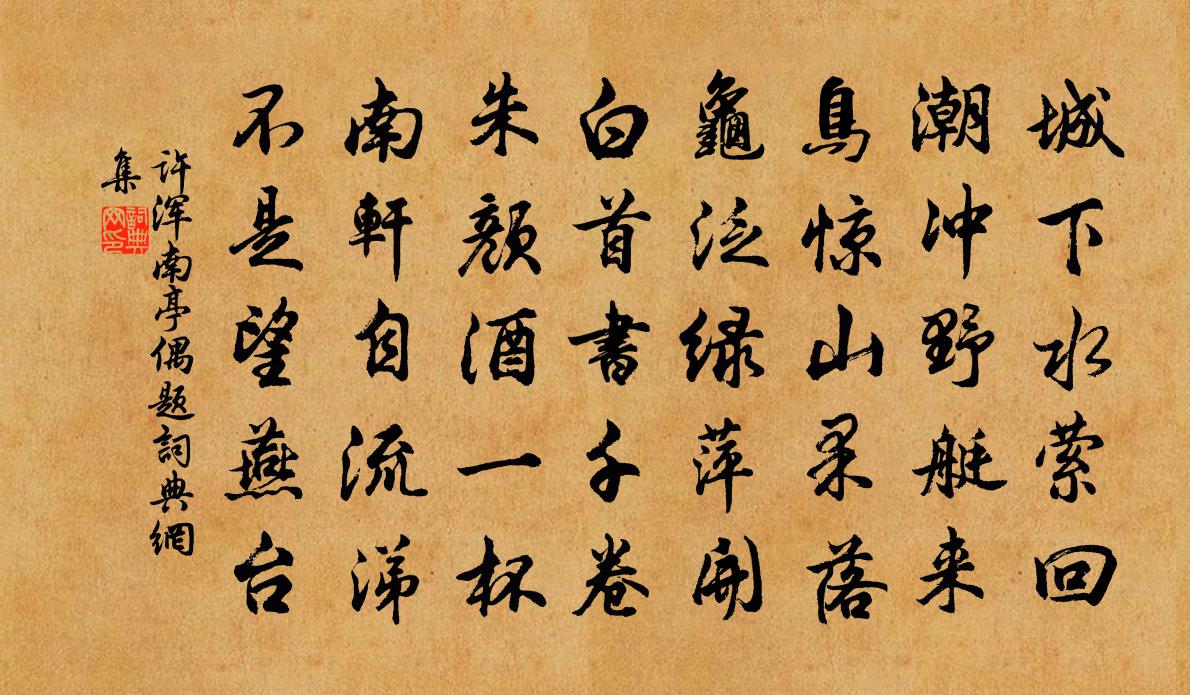 城下水縈迴,潮沖野艇來。鳥驚山果落,龜泛1|1綠萍開。