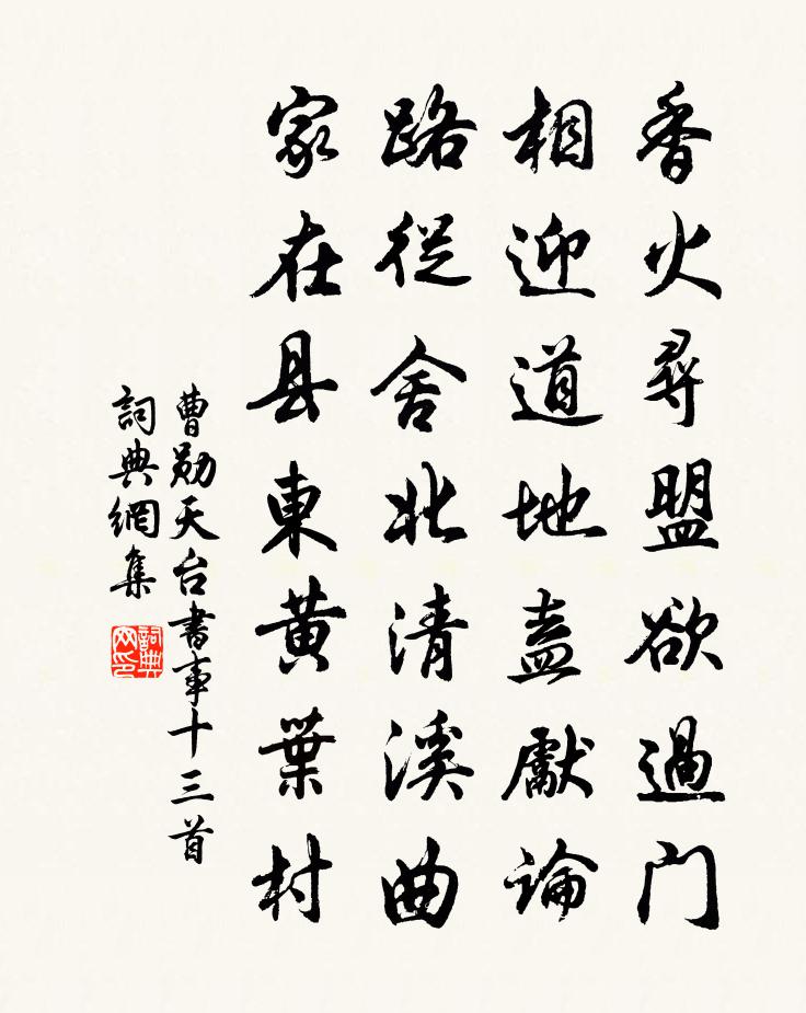詩詞名句歷史字典書法欣賞書法字典國語詞典說文解字康熙字典古漢語字典標 題 作 者 詩 句 天台書事十三首作者:曹勛 朝代:宋代天台書事十三首原文香火尋盟欲過門,相迎道地盍先論。路從舍北清溪曲,家在縣東黃葉村。詩詞問答問:天台書事十三首的作者是誰?答:曹勛問:天台書事十三首寫於哪個朝代?答:宋代曹勛天台書事十三首書法欣賞天台書事十三首書法作品詩詞推薦永濟橋張耒〔宋代〕墟廟無人吊毀垣,故橋遺址至今存。侵波野岸生新草,齧石老燙留舊痕。金殿有基藏兔穴,玉輿無路半樵村。甘棠畫堂春·雨中杏花陳子龍〔明代〕輕陰池館水平橋,一番弄雨花梢。微寒著處不勝嬌,此際魂銷。 憶昔青門堤外,粉香零亂朝朝。玉顏寂寞淡紅題魏萬成江亭劉長卿〔唐代〕蕭條方歲晏,牢落對空洲。才出時人右,家貧湘水頭。蒼山隱暮雪,白鳥沒寒流。不是蓮花府,冥冥不可求。送交代李丞元舉喻良能〔宋代〕藍田松下日棲遲,不比韓公作記時。鷁首千行攀別淚,牛腰幾軸送行詩。我無楚尾歌來暮,君有齊民頌去思。自是嘉州寄左綿王虞部石介〔宋代〕江山如畫望無窮,況屬昇平歲屢豐。萬樹芙蓉秋色裹,千家碪杵月明中。斷霞半著燕支木,零露偏留筀竹叢。只欠偈頌二十五首釋如淨〔宋代〕進院得住便住,退院要行便行。個條烏拄杖,莫怪太生獰。柬白丈人徐凝〔唐代〕昔時丈人鬢髮白,千年松下鋤茯苓。今來見此松樹死,丈人斬新鬢髮青。迎潮送潮辭迎潮陸龜蒙〔唐代〕江霜嚴兮楓葉丹,潮聲高兮墟落寒。鷗巢卑兮漁箔短,遠岸沒兮光爛爛。潮之德兮無際,既充其大兮又充其細。密清明杲飲二首楊萬里〔宋代〕深著爐香淺著桮,桮行盡緩莫教催。可憐花樹渾無賴,下卻簾鉤也入來。雪藕新將削冰水,蔗霜只好點青梅。明年湖山陸游〔宋代〕逐鹿心雖壯,乘騅勢已窮。終全蓋世氣,絕意走江東。州民自言巴土冬濕且多陰晦今茲晴朗苦…因示寮吏羊士諤〔唐代〕雨霜以成歲,看舊感前聞。愛景隨朝日,凝陰積暮雲。□□□□□,忘言酒暫醺。□□□□□,□□□□□。二郎神(己未自壽)吳潛〔宋代〕古希近也,是六十五翁生日。恰就得端陽,艾人當戶,朱筆書符大吉。卦氣周來從新起,怕白髮、蒼顏難必。隨見次韻李參政和薛秘書詩見寄魏了翁〔宋代〕書來寄我薛公詩,磊落襟期尉我思。所謂伊人在空谷,公侯逸豫鎮無期。七愛詩贈程鄉令趙君漢雍丘令劉矩蒲壽宬〔宋代〕吾愛劉淑方,禮遜以化彊。諄諄耳提訓,語味深且長。忿恚為可忍,莫入鳴弦堂。訟者各感去,從今無他腸。寒食郊行書事范成大〔宋代〕隴麥欣欣綠,山桃寂寂紅。帆邊漁蕝浪,木末酒旗風。信步隨芳草,迷途問小童。賞心添腳力,呼渡過溪東。次韻李希荀寄念七侄莊並用前韻和十七侄彀送蘇頌〔宋代〕初從童丱祝千春,俄見騫騰祝更頻。已喜吏資能可問,又嘉文筆速如神。室堂宜念承先構,鄉里須教號善人。我待偈頌一百二十三首釋崇岳〔宋代〕有你不有我,有我不有你。咬定牙關,齊之以禮。臨江仙引·上國柳永〔宋代〕上國。去客。停飛蓋、促離筵。長安古道綿綿。見岸花啼露,對堤柳愁煙。物情人意,向此觸目,無處不悽然。醉聖俞惠詩復以二章為謝司馬光〔宋代〕我得聖俞詩,終身變何有。名字吒文編,佗年知不朽。鴛鴦李商隱〔唐代〕雌去雄飛萬里天,雲羅滿眼淚潸然。不須長結風波願,鎖向金籠始兩全。名句推薦紫黯紅愁無緒,日暮春歸甚處?龔自珍《如夢令·紫黯紅愁無緒》 把酒對斜日,無語問西風。楊炎正《水調歌頭·把酒對斜日》 泥上偶然留指爪,鴻飛那復計東西。蘇軾《和子由澠池懷舊》 獨倚危欄,神遊無際,天地猶嫌隘。朱栴《念奴嬌·雪霽夜月中登樓望賀蘭山作》 欲人之處高爵祿,則以讓賢也;多財則以分貧也。墨子《墨子·49章 魯問》 白骨露於野,千里無雞鳴。曹操《蒿里行》 雨中禁火空齋冷,江上流鶯獨坐聽。韋應物《寒食寄京師諸弟》 人孰無親,罪人慎察其宗。來俊臣《羅織經·固榮卷第六》 自是人生長恨水長東。李煜《相見歡·林花謝了春紅》 閒夢江南梅熟日,夜船吹笛雨蕭蕭。皇甫松《夢江南·蘭燼落》