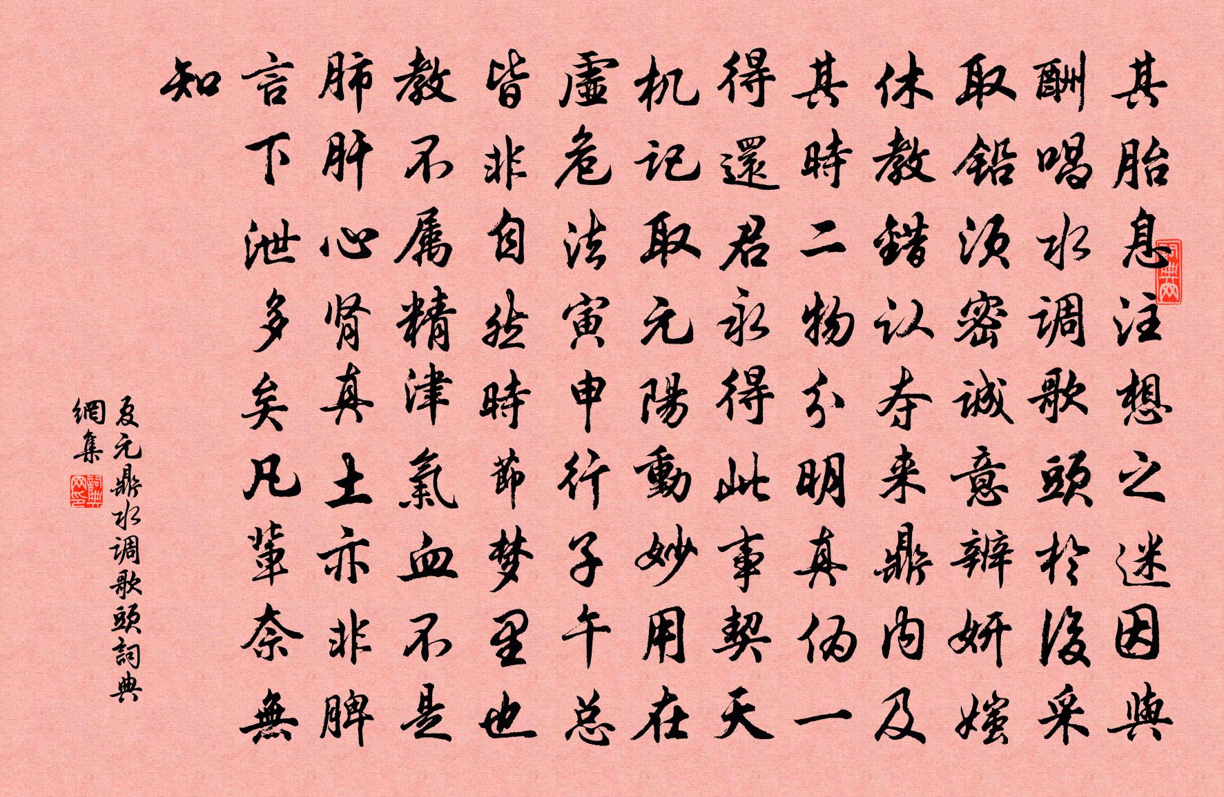 詩詞名句歷史字典書法欣賞書法字典國語詞典說文解字康熙字典古漢語字典標 題 作 者 詩 句 水調歌頭作者:夏元鼎 朝代:宋代水調歌頭原文其胎息注想之迷,因與酬唱水調歌頭於後。採取鉛須密,誠意辨妍媸。休教錯認,奪來鼎內及其時。二物分明真偽,一得還君永得,此事契天機。記取元陽動,妙用在虛危。法寅申,行子午,總皆非。自然時節,夢裡也教不屬精津氣血,不是肺肝心腎,真土亦非脾。言下泄多矣,凡輩奈無知。詩詞問答問:水調歌頭的作者是誰?答:夏元鼎問:水調歌頭寫於哪個朝代?答:宋代夏元鼎水調歌頭書法欣賞水調歌頭書法作品詩詞推薦秋懷十首韓元吉〔宋代〕朝行佛屋魚千里,暮借僧床鷯一枝。窗下秋蟲解人意,似憐羈客伴喔詩。沁園春(贈清虛先生)曹勛〔宋代〕五老橫峰,二林雲衲,自古洞天。噴玉龍飛,下三峽水,望香爐暗靄,如起非煙。有個真人,撥雲峰下,宴坐修真春雨中會西山佛跡黃公度〔宋代〕自喜平生山水心,公餘猶及此登臨。雲埋古寺鐘聲遠,花落空村煙雨深。是處芳尊追勝概,幾人寒勒度疏林。都無浪淘沙(四之一)賀鑄〔宋代〕把酒欲歌驪。濃醉何辭。玉京煙柳欲黃時。明日景陽門外路,相背春歸。斂淚復牽衣。私語遲遲。可憐誰會兩心期乾明節祝聖壽四錫〔宋代〕生日稱觴自六宮,香焚甲觀畫堂中。太平歷數歸英主,上壽年齡屬聖躬。玉樹有花因瑞雪,鈞天呈曲在虛空。三公南柯子范成大〔宋代〕槁項詩餘瘦,愁腸酒後柔。晚涼團扇欲知秋。臥看明河銀影、界天流。鶴警人初靜,蟲吟夜更幽。佳辰只合算花籌春晚漢老弟不來有懷南坡虞儔〔宋代〕如麻密雨不收腳,妒花惡風常打頭。那無一日好天氣,只有千山供客愁。垂楊未擊金裊娜,隔葉倦聽黃栗留。南坡挽溫嶺丁竹坡戴復古〔宋代〕瀟灑復瀟灑,是為丁竹坡。生涯渾草草,詩句自多多。恨不識是叟,悲哉作此歌。數編遺稿在,不共葬煙蘿。念佛三昧詩釋遵式〔宋代〕萬感外形骸,儼然虛堂寂。明毫冠群彩,幽神資始績。妙象非夙預,俗覽豈良覿。析之會入微,清玩心無懌。天地篇曹植〔魏晉〕復為時所拘。覊紲作微臣。宴包二融宅①孟浩然〔唐代〕閒居枕清洛,左右接大野。門庭無雜賓,車轍多長者。是時方盛夏,風物自蕭灑。②五月休沐歸,相攜竹林下。③【雙調】壽陽曲李壽卿〔元代〕金刀利,錦鯉肥,更那堪玉蔥纖細。添得醋來風韻美,試嘗道甚生滋味!雁靈妙方 本名雙雁兒 謹繼重陽師父韻 洞玄馬鈺〔元代〕幸遇風仙別東州。無縈系,縱雲遊。得真歡樂恣情謳。這塵緣,一旦休。仿效田單用火牛。駕金木,倒顛流。大丹小憩許由亭程珌〔宋代〕歷數河南去,乾坤一草亭。一亭猶是累,千古盡浮萍。雲露范成大〔宋代〕飲少嘗遭大戶嗤,病中全是獨醒時。三年魯望自憐賦,萬祀淵明真止詩。破戒忽傳雲露法,賞心仍把雪梅枝。一杯書事趙蕃〔宋代〕早禾雖登場,舂簸才足食。晚禾尚棲隴,登減未可必。吏持與催符,官趣違限責。為政本憂民,民憂政何德。題定明大像閻禹錫〔宋代〕造化秘奇勝,洪流繞崇崗。層樓百仞高,下□雲水鄉。空嵌古秀峰,雷霓揮銛鋩。神□□□丁,金仙儼垂裳。懸知生涯陸游〔宋代〕舊業桑麻在,頹齡耄耄過。虞卿著書晚,伏叟授經訛。井上磨椎斫,村東買釣蓑。傾身營一飽,自笑又蹉砣。德壽宮即事六首任希夷〔宋代〕宴歸還駕七香車,一夕天開六出花。瑞色先凝紫宸殿,人光重到玉皇家。辭輦行鮑溶〔唐代〕漢家代久淳風薄,帝重微行極荒樂。青娥三千奉一人,班女不以色事君。朝停玉輦詔同載,三十六宮皆眄睞。不驚名句推薦明月松間照,清泉石上流。王維《山居秋暝》 地白風色寒,雪花大如手。李白《嘲王歷陽不肯飲酒》 良藥苦口利於病,忠言逆耳利於行。宋濂、王褘《元史·列傳·卷五十五》 仙佛茫茫兩未成,只知獨夜不平鳴。黃景仁《雜感》 桃未芳菲杏未紅,沖寒先已笑東風。曹雪芹《紅樓夢·第五十回》 戰必覆人之軍,攻必凌人之城。商鞅《商君書·賞刑》 忍淚不能歌,試托哀弦語晏幾道《生查子·墜雨已辭雲》 桑柘廢來猶納稅,田園荒後尚征苗。杜荀鶴《山中寡婦 / 時世行》 天下熙熙,皆為利來;天下攘攘,皆為利往。司馬遷《史記·貨殖列傳》 孤村芳草遠,斜日杏花飛。寇準《江南春·波渺渺》