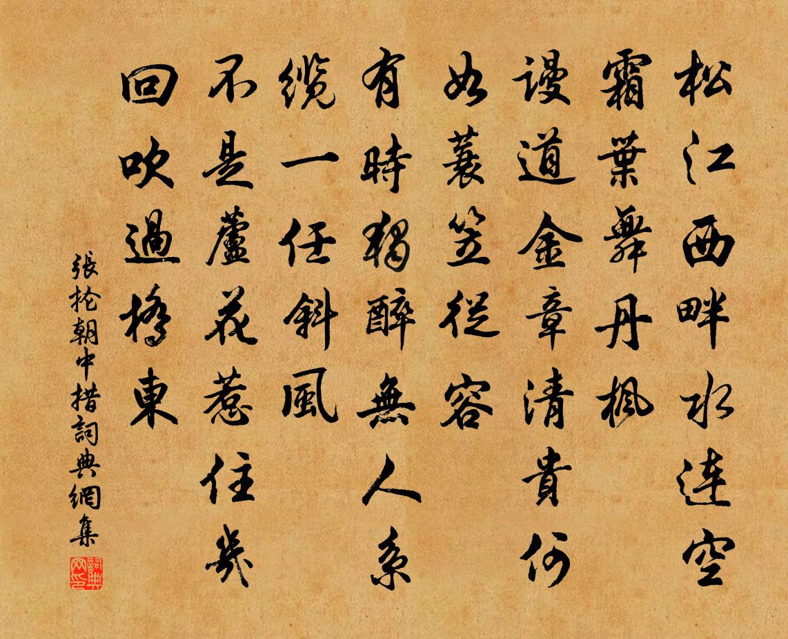 詩詞名句歷史字典書法欣賞書法字典國語詞典說文解字康熙字典古漢語字典標 題 作 者 詩 句 朝中措作者:張掄 朝代:宋代朝中措原文松江西畔水連空。霜葉舞丹楓。謾道金章清貴,何如蓑笠從容。有時獨醉,無人系纜,一任斜風。不是蘆花惹住,幾回吹過橋東。詩詞問答問:朝中措的作者是誰?答:張掄問:朝中措寫於哪個朝代?答:宋代問:朝中措是什麼體裁?答:詞張掄朝中措書法欣賞朝中措書法作品詩詞推薦赴桐廬郡淮上遇風三首范仲淹〔宋代〕聖宋非強楚,清淮異汨羅。平生仗忠信,盡室任風波。舟楫顛危甚,蛟黿出沒多。斜陽幸無事,沽酒聽漁歌。寄石溪何文季〔宋代〕錦雲曾逐好風來,強學嬌顰寄雁回。鯨浪拍天滄海闊,只愁無路到蓬萊。蝶戀花王采〔宋代〕濯錦江頭春欲暮。枝上繁紅,著意留春住。只恐東君嫌面素。新妝剩把胭脂傅。曉夢驚寒初過雨。寂寞珠簾,問有江東召歸王安石〔宋代〕昨日君恩悞賜環,歸腸一夜繞鍾山。雖然眷戀明時祿,羞見琅邪有邴丹。寶蓋山趙永嘉〔宋代〕青山吐出白龍開,我是地仙趙秀才。嘉善有魚餐得去,永嘉有虎喚能來。拋球詩(一作李謹言詩)李慎言〔宋代〕侍宴黃昏未肯休,玉階夜色月如流。朝來自覺承恩最,笑倩傍人認繡球。早秋曲江感懷白居易〔唐代〕離離暑雲散,裊裊涼風起。池上秋又來,荷花半成子。朱顏易銷歇,白日無窮已。人壽不如山,年光急於水。青蕪靈龜泉上黃庭堅〔宋代〕大靈壽日月,化石皖公陂。偶無斧斤尋,不作宰上碑。傾首若有謂,指泉來自西。泉甘崖木老,坐嘯欲忘歸。風流寄員文饒屯田文同〔宋代〕英英文饒江漢士,何者天教喪眸子。用心專一性轉明,無所不知余兩耳。能為樂府勝張籍,暗誦史書過杜顗。棄官憲丞裴公上洛退居有寄二首吳融〔唐代〕鴻在冥冥已自由,紫芝峰下更高秋。拋來簪紱都如夢,泥著杯香不為愁。晚樹拂檐風脫翠,夜灘當戶月和流。自嗟醉桃源(以阮郎歸歌之亦可)秦觀〔宋代〕碧天如水月如眉。城頭銀漏遲。綠波風動畫船移。嬌羞初見時。銀燭暗,翠簾垂。芳心兩自知。楚台魂斷曉雲飛。道中連雨方岳〔宋代〕塵蝕貂裘敝,吾生奈爾何。雷聲春蟄怒,山意暮寒多。窮不彈長鋏,歸應負短蓑。自知機事淺,或可共鷗波。水調歌頭佚名〔宋代〕躡足半天下,作意賦歸歟。燕申經始不日,胸次出規模。千古神峰擁護,萬古橫江繚繞,佳致足方壺。一飲一詞美客路王鎡〔宋代〕匣中古劍懶重磨,難遇知音學楚歌。老卻杜鵑春不管,江南人遠落花多。再題瓶中梅花范成大〔宋代〕園林籬落凍芳塵,南北枝間玉蕊皴。風袂挽香雖淡薄,月窗橫影已精神。雪霜春事年年晚,今古詩情日日新。鐵石恭和御製上元觀燈王珪〔唐代〕雲消華月滿仙台,萬燭當樓寶扇開。雙鳳雲中扶輦下,六鰲海上駕山來。鎬京春酒沾周燕,汾水秋風陋漢才。一曲題友人書齋新壁文同〔宋代〕彩梔縱橫設,雕廚次第開。須防何法盛,直入此中來。六年正月二十日復出東門仍用前韻蘇軾〔宋代〕亂山環合水侵門,身在淮南盡處村。五畝漸成終老計,九重新掃舊巢痕。豈惟見慣沙鷗熟,已覺來多釣石溫。長與冬日宴於庶子宅各賦一字得平岑文本〔唐代〕金蘭篤惠好,尊酒暢生平。既欣投轄賞,暫緩望鄉情。愛景含霜晦,落照帶風輕。於茲歡宴洽,寵辱詎相驚。落花余靖〔宋代〕小園斜日照殘芳,千里傷春意未忘。金谷已空新步障,馬嵬徒見舊香囊。鶯來似結啼鸞怨,蝶散應知夢雨狂。清賞名句推薦君在天一涯,妾身長別離。江淹《古離別》 人學始知道,不學非自然。孟郊《勸學》 更可惜,雪中高樹,香篝熏素被。周邦彥《花犯·小石梅花》 空山梵唄靜,水月影俱沉。納蘭性德《水調歌頭·題西山秋爽圖》 千年忠義氣,日星光。離騷讀罷總堪傷。舒頔《小重山·端午》 家貧思良妻,國亂思良相。司馬光《資治通鑑·周紀·周紀一》 慟哭六軍俱縞素,衝冠一怒為紅顏。吳偉業《圓圓曲》 花明柳暗繞天愁,上盡重城更上樓。李商隱《夕陽樓》 夜雨剪春韭,新炊間黃粱。杜甫《贈衛八處士》 親賢臣,遠小人。諸葛亮《出師表/前出師表》