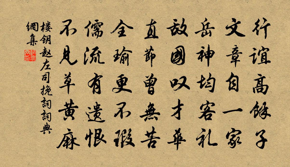 詩詞名句歷史字典書法欣賞書法字典國語詞典說文解字康熙字典古漢語字典標 題 作 者 詩 句 趙左司輓詞作者:樓鑰 朝代:宋代趙左司輓詞原文行誼高餘子,文章自一家。岳神均客禮,敵國嘆才華。直節曾無苦,全瑜更不瑕。儒流有遺恨,不見草黃麻。詩詞問答問:趙左司輓詞的作者是誰?答:樓鑰問:趙左司輓詞寫於哪個朝代?答:宋代樓鑰趙左司輓詞書法欣賞趙左司輓詞書法作品詩詞推薦羯鼓崔道融〔唐代〕華清宮裡打撩聲,供奉絲簧束手聽。寂寞鑾輿斜谷里,是誰翻得雨淋鈴。星夕前露坐觀行雲作衛宗武〔宋代〕一氣有聚散,變化莫能測。氤氳彌太虛,膚寸繇觸石。翕如華蓋張,紛若纖纊擘。緝緝鯨布鱗,翩翩鳳展翼。祥或歲暮雜感十首曾國藩〔清代〕韶華彈指總悠悠,我到人間首五秋。自愧望洋迷學海,更無清福住糟邱。尊前瓦注曾於局,腳底紅塵即九州。自笑寇萊公廟折彥質〔宋代〕萊公英特姿,譚笑安社稷。流離死窮荒,志士氣益塞。死謫憐忠愍,生還喜子由。荒祠連舊宅,幾見海雲秋。和鄭康道二首曹勛〔宋代〕絕嘆當年故作痴,水邊林下欲清非。未慶阮籍塗窮慣,自是王通世念微。伏節舊聞英概偉,掛冠惜與壯心違。起予生公講堂何麟〔宋代〕平地涌岩壑,稜層驚大雄。何曾遠人世,直欲傍天宮。 * 威靈在,赤烏緣影空。生公能說法,音與塔鈴同。飲興道觀有感五首方回〔宋代〕十萬長松五百年,今其餘幾亦堪憐。霓旌恍惚剛風外,蕊殿崔嵬劫火前。題墨八分吾獨識,藏丹九轉後誰傳。山中雜詠六言八首劉克莊〔宋代〕痛罵老奴尊己,錯認廁鬼為妻。先儒重鄭玄易,三孤喜李赤詩。再赴襄陽,辱宣武相公貽詩,今用奉酬李逢吉〔唐代〕解韍辭丹禁,揚旌去赤墀。自驚非素望,何力及清時。又據三公席,多慚四老祠。峴山風已遠,棠樹事難追。江漢論詩絕句依老人韻林泳〔宋代〕風騷一脈苦難知,媲白抽黃世不疑。沈謝諸人聲律起,千年無復性情詩。居厚不果行次韻二首劉克莊〔宋代〕祖帳方涓吉,公車已尼行。若非露訊息,未免迫期程。水菽姑娛母,茅柴且酌兄。未應天祿閣,便欠一更生。次余仲庸松風閣韻十九首 其一裘萬頃〔宋代〕爛熳花陰覆短牆,花開時候日偏長。道人不被春勾引,到處惟聞檐蔔香。和舒波社日清明張埴〔宋代〕小試麻鞋路半乾,歸來連得好詩看。去年曾被梅花惱,今過林邊輒齒寒。奉和御製為政歌夏竦〔宋代〕黼帳布夜分常監布寐,鳳軒布端委敷文治。肇建元布陟介丘,寢尋毖禮臨汾水。茂烈馨香久際天,精心勵翼彌恭己寄秋江許端甫顧逢〔宋代〕妙年親雅道,諸老日從游。師法林和靖,家聲許郢州。江湖千里志,風月一襟秋。好句人傳志,詩名不待求。舟上徐照〔宋代〕小船停槳逐潮還,四五人家住一灣。貪看曉光侵月色,不知雲氣失前山。題史院壁陸游〔宋代〕命薄謀常拙,年衰力轉微。鷁飛元合退,羝乳偶成歸。汗簡慚靡日,流麈怯染衣。無端霜夜月,應照舊苔磯。范饒州坐中客語食河豚魚梅堯臣〔宋代〕春洲生荻芽,春岸飛楊花。河豚當是時,貴不數魚蝦。其狀已可怪,其毒亦莫加。忿腹若封豕,怒目猶吳蛙。庖煎蝶戀花·雨霰疏疏經潑火蘇軾〔宋代〕雨霰疏疏經潑火。巷陌鞦韆。猶未清明過。杏子梢頭香蕾破。淡紅褪白胭脂涴。苦被多情相折挫。病緒厭厭,渾似張德夫園亭八詠兼遠王炎〔宋代〕若人胸次中,自有萬人敵。胡不籌前箸,時清偃金革。婆娑林壑間,亦自適其適。憑高著胡床,千里獻物色。稻疇名句推薦桃花一簇開無主,可愛深紅愛淺紅?杜甫《江畔獨步尋花·其五》 糟糠不飽者不務粱肉,短褐不完者不待文繡。韓非及後人《韓非子·五蠹》 聖人以智籠群愚,亦猶狙公之以智籠眾狙也。名實不虧,使其喜怒哉。列子及其弟子《列子·黃帝》 友者、所以相有也。道不同,何以相有也?荀子《荀子·大略》 事父母幾諫,見志不從,又敬不違,勞而不怨。孔子弟子《論語·里仁篇》 乍聽得、鴉啼鶯弄,惹起新愁無限。呂渭老《薄倖·青樓春晚》 埏埴以為器,當其無,有器之用。鑿戶牖以為室,當其無,有室之用。故有之以為利,無之以為用。老子《老子·道經·第十一章》 況屬高風晚,山山黃葉飛。王勃《山中》 君家玉女從小見,聞道如今畫不成。黃庭堅《謝張仲謀端午送巧作》 春無蹤跡誰知。除非問取黃鸝。黃庭堅《清平樂·春歸何處》