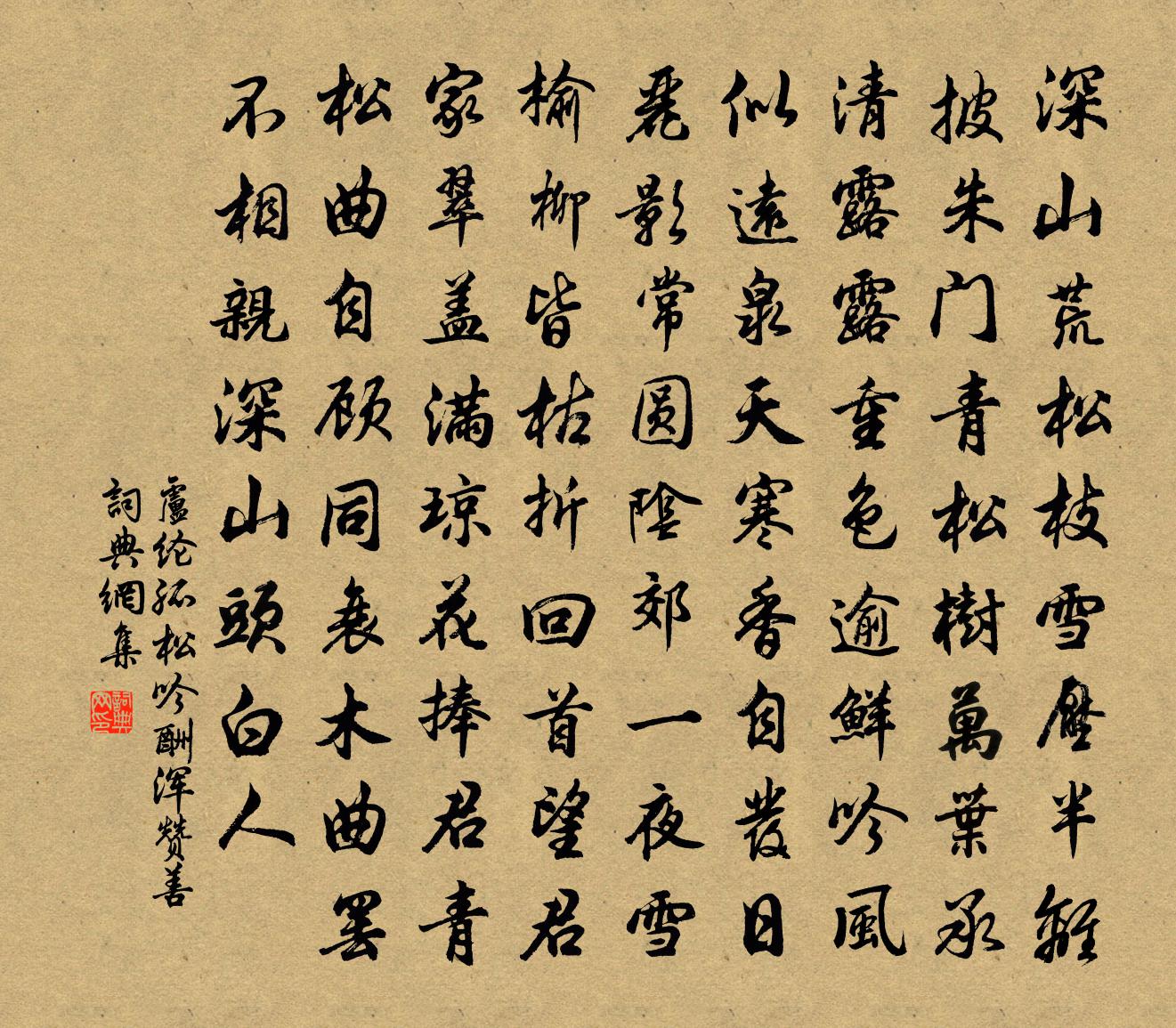 深山荒松枝,雪壓半離披。朱門青松樹,萬葉承清露。