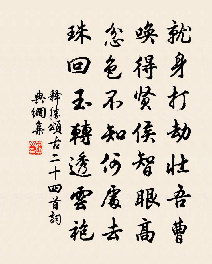 詩詞名句歷史字典書法欣賞書法字典國語詞典說文解字康熙字典古漢語字典標 題 作 者 詩 句 頌古二十四首作者:釋勝 朝代:宋代頌古二十四首原文就身打劫壯吾曹,喚得賢侯智眼高,忿色不知何處去,珠回玉轉透雲袍。詩詞問答問:頌古二十四首的作者是誰?答:釋勝問:頌古二十四首寫於哪個朝代?答:宋代釋勝頌古二十四首書法欣賞頌古二十四首書法作品詩詞推薦念奴嬌 洛陽耆英會二首陸文圭〔元代〕戴花劉監,算耆英會上,與吾同歲。伊洛山川今如古,人事幾番興廢。夢枕初殘,黃梁未熟,已換人間世。簞瓢鍾柳梢青 贈妓小瓊英倪瓚〔元代〕樓上玉笙吹徹。白露冷、飛瓊佩*。黛淺含顰,香殘棲夢,子規啼月。揚州往事荒涼,有多少、愁縈思結。燕語空讀道書潘牥〔宋代〕道人清曉炷爐薰,嵐重衣巾濕露痕。課罷楞嚴經一卷,小窗徙倚候啼猿。分司初到洛中,偶題六韻,兼戲呈馮尹白居易〔唐代〕相府念多病, * 容不才。官銜依口得,俸料逐身來。白首林園在,紅塵車馬回。招呼新客侶,掃掠舊池台。小舫高士詠樊先生吳筠〔唐代〕巢父志何遠,潛精人莫知。恥聞讓王事,飲犢方見移。不欲散大朴,焉能為堯師。煉真自輕舉,浮世何足遺。和蕭刓察推賀族叔司理登科還鄉四首蘇轍〔宋代〕巷南諸子足才賢,邂逅相逢秀句傳。強作短章同寄與,異時見我一依然。望江南吳潛〔宋代〕家山好,結屋在山椒。無事琴書為伴侶,有時風月可招邀。安樂更相饒。伸腳睡,一枕日頭高。不怕兩衙催判事,書懷劉幽求〔唐代〕心為明時盡,君門尚不容。田園迷徑路,歸去欲何從。送李錄事兄歸襄鄧劉長卿〔唐代〕十年多難與君同,幾處移家逐轉蓬。白首相逢征戰後,青春已過亂離中。行人杳杳看西月,歸馬蕭蕭向北風。漢水寄滿子權二首王令〔宋代〕終年謀食亦何得,浪取窮愁只自侵。餓死有時非正命,勞生幾不愧常心。百年此去塵埃在,萬古從來意思深。莫說偈釋曉聰〔宋代〕晨雞報曉靈,粥後便天明。燈籠猶瞌睡,露柱卻惺惺。菩薩蠻 為王太利夫壽劉因〔元代〕吾鄉先友今誰健。西鄰王老時相見。每見憶先公。音容在眼中。今朝故人子。為壽無多事。惟願歲長豐。年年社酒次韻程機宜感懷曹勛〔宋代〕至交類萍梗,離合寧前知。相思梅花發,豈待中郎吹。玉樓春黃簡〔宋代〕龜紋曉扇堆雲母。日上彩闌新過雨。眉心猶帶寶觥酲,耳性已通銀字譜。密奩彩索看看午。暈素分紅能幾許。妝成蘭陵王施岳〔宋代〕柳花白。飛入青煙巷陌。憑高處,愁鎖斷橋,十里東風正無力。西湖路咫尺。猶阻仙源信息。傷心事,還似去年,呵筆袁說友〔宋代〕欲放酒腸愁酒病,強投詩社闕詩聲。浮生失意每如此,薄命何人詳細評。宋中耿湋〔唐代〕日暮黃雲合,年深白骨稀。舊村喬木在,秋草遠人歸。廢井莓苔厚,荒田路徑微。唯餘近山色,相對似依依。節物陸游〔宋代〕節物猶關老病身,鄉儺佛粥一年新。檐間百舌還多事,探借園林十日春。句邵雍〔宋代〕水光連夜白,雪意共雲低。望岳三首·其二杜甫〔唐代〕西嶽崚嶒竦處尊,諸峰羅立似兒孫。安得仙人九節杖,拄到玉女洗頭盆。車箱入谷無歸路,箭栝通天有一門。稍待名句推薦泠泠七弦上,靜聽松風寒。劉長卿《聽彈琴》 殘酒憶荊高,燕趙悲歌事未消。陳維崧《南鄉子·邢州道上作》 東風吹雨過青山,卻望千門草色閒。盧綸《長安春望》 斜月沉沉藏海霧,碣石瀟湘無限路。張若虛《春江花月夜》 燕子重來,往事東流去。吳文英《點絳唇·時霎清明》 遠水不救近火。韓非及後人《韓非子·說林上》 舊山松竹老,阻歸程。岳飛《小重山·昨夜寒蛩不住鳴》 戰必覆人之軍,攻必凌人之城。商鞅《商君書·賞刑》 客子過壕追野馬,將軍韜箭射天狼。李夢陽《秋望》 我亦且如常日醉,莫教弦管作離聲。歐陽修《別滁》