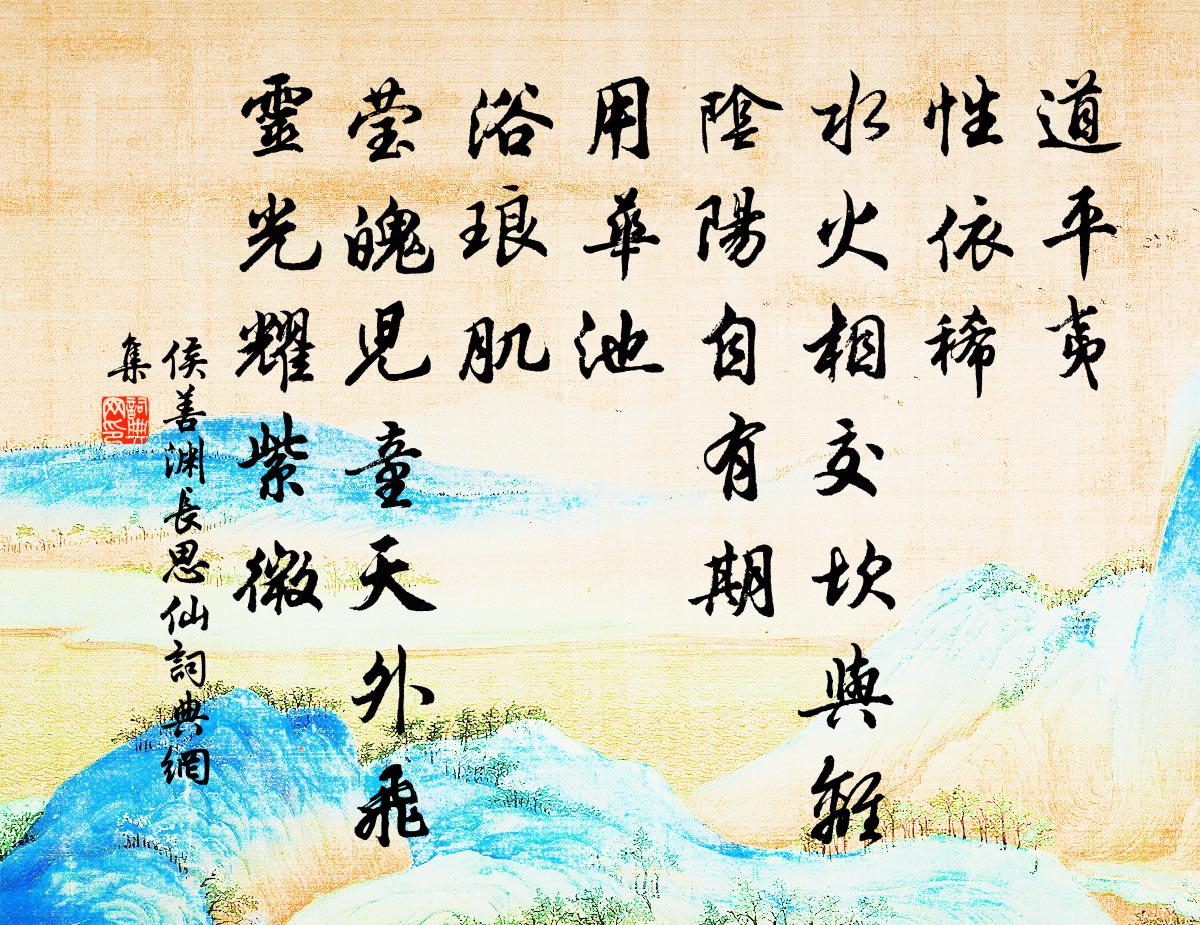 詩詞名句歷史字典書法欣賞書法字典國語詞典說文解字康熙字典古漢語字典標 題 作 者 詩 句 長思仙作者:侯善淵 朝代:元代長思仙原文道平夷。性依稀。水火相交坎與離。陰陽自有期。用華池。浴琅肌。瑩魄兒童天外飛。靈光耀紫微。詩詞問答問:長思仙的作者是誰?答:侯善淵問:長思仙寫於哪個朝代?答:元代問:長思仙是什麼體裁?答:詞侯善淵長思仙書法欣賞長思仙書法作品詩詞推薦十月七日早起作時氣疾初愈韓偓〔唐代〕疾愈身輕覺數通,山無嵐瘴海無風。陽精欲出 * 落,天地包含紫氣中。游雲門詹騤〔宋代〕輕裘肥馬春三月,到此經游花正紅。欲覓上方幽隱處,老僧笑指白雲中。蔬蘭王令〔宋代〕曉折寒蔬野圃間,荒林深處有芳蘭。世無賢士紉為佩,猶有幽人日取餐。野興陸游〔宋代〕猿臂將軍老未衰,氣吞十萬羽林兒。南山射虎自堪樂,何用封侯高帝時!南明不庵悟和尚贊釋智遇〔宋代〕飛來峰下,打失護身符子,南明山中。罵詈三平祖師。闡提薄福,俗眼難窺。夫是這謂不庵老古錐。蔬食陸游〔宋代〕牆陰春薺老,筍蕨正登盤。野饁元無婦,村醅不屬官。何由取熊掌?倖免買豬肝。猶勝煩秦相,綈袍閔一寒。雜曲歌辭雨霖鈴張祜〔唐代〕雨霖鈴夜卻歸秦,猶是張徽一曲新。長說上皇垂淚教,月明南內更無人。送謝王夢得監稅借示詩卷兼簡王僉章甫〔宋代〕人入江西社,詩參活句禪。盤珠無滯跡,溪月有餘妍。不採龐公藥,宜先祖逖鞭。淹留茆屋底,愁坐算商船。陰夕王同祖〔宋代〕恰則晴明天又陰,霜風如劍二毛侵。淮城夜雪深多少,不見擒吳奏捷音。題雪霽望弁山圖錢選〔宋代〕亂山積雪郁崔嵬,對景慚無倡和才。晴日舊曾梅下飲,好懷今為竹林開。仙人千劫能居此,俗客三生始一來。未許漁父辭毛直方〔宋代〕本無租賦本無田,不知曆日不知年。誰信漁家小船上,猶是無懷並葛天。花山寺看黃山柳桂孫〔宋代〕借得雲房半榻眠,三生夙結靜中緣。茶爐謾著松枝火,趺坐薄團聽夜禪。春愁王令〔宋代〕只聞來客說春遊,不逐花前笑自留。浪說春期計春盡,留春無術只春愁。疏齋用前韻記響山之游依韻奉答潘從大〔宋代〕空山在昔森萬松,兩賢曾此登虬龍,流風餘韻無時終。我來寒棲鬢成翁,人生出處何心同。夢破邯鄲幾富貴,戰退偈頌九首釋玿〔宋代〕休卜度,世間那有揚州鶴。一身與世等委蛇,萬事隨緣即安樂。無意來時卻宛然,有心用處還應錯。錯錯錯,莫莫宮詞王仲修〔宋代〕日斜未掩苑東門,池面風煙向晚昏。誰道荷花嬌欲語,夜來露冷卻無言。題不欺室張魏公為王龜齡書也何子應賦詩王秬〔宋代〕君不見開元名相張九齡,歲寒松柏森蒼鱗。胡塵澒洞言始末驗,世間回首思忠臣。堂堂魏公忠貫日,志欲平戎獎王句吳光〔宋代〕日長人靜聞風佩,雨久堂空生水衣。漁父引二首李夢符〔唐代〕村寺鐘聲度遠灘,半輪殘月落山前。徐徐撥棹卻歸灣,浪疊朝霞錦繡翻。漁弟漁兄喜到來,波官賽卻坐江隈。椰榆夏日登靈隱寺後峰方乾〔唐代〕絕頂無煩暑,登臨三伏中。深蘿難透日,喬木更含風。山疊雲霞際,川傾世界東。那知茲夕興,不與古人同。名句推薦君知否,是山西將種,曾系詩盟。劉過《沁園春·張路分秋閱》 西門秦氏女,秀色如瓊花。李白《秦女休行》 功名炊黍尋常夢,怪事書空感激人。王遜《西夏重陽》 當君懷歸日,是妾斷腸時。李白《春思》 雨雪雰雰,益之以霢霂。佚名《信南山》 行人莫問當年事,故國東來渭水流。許渾《鹹陽城東樓 / 鹹陽城西樓晚眺 / 西門》 台榭空濛煙柳暗,白鳥銜魚欲舞。納蘭性德《摸魚兒·午日雨眺》 愁損翠黛雙蛾,日日畫闌獨憑。史達祖《雙雙燕·詠燕》 北風吹雪四更初,嘉瑞天教及歲除。陸游《除夜雪》 西城楊柳弄春柔。動離憂。淚難收。秦觀《江城子·西城楊柳弄春柔》