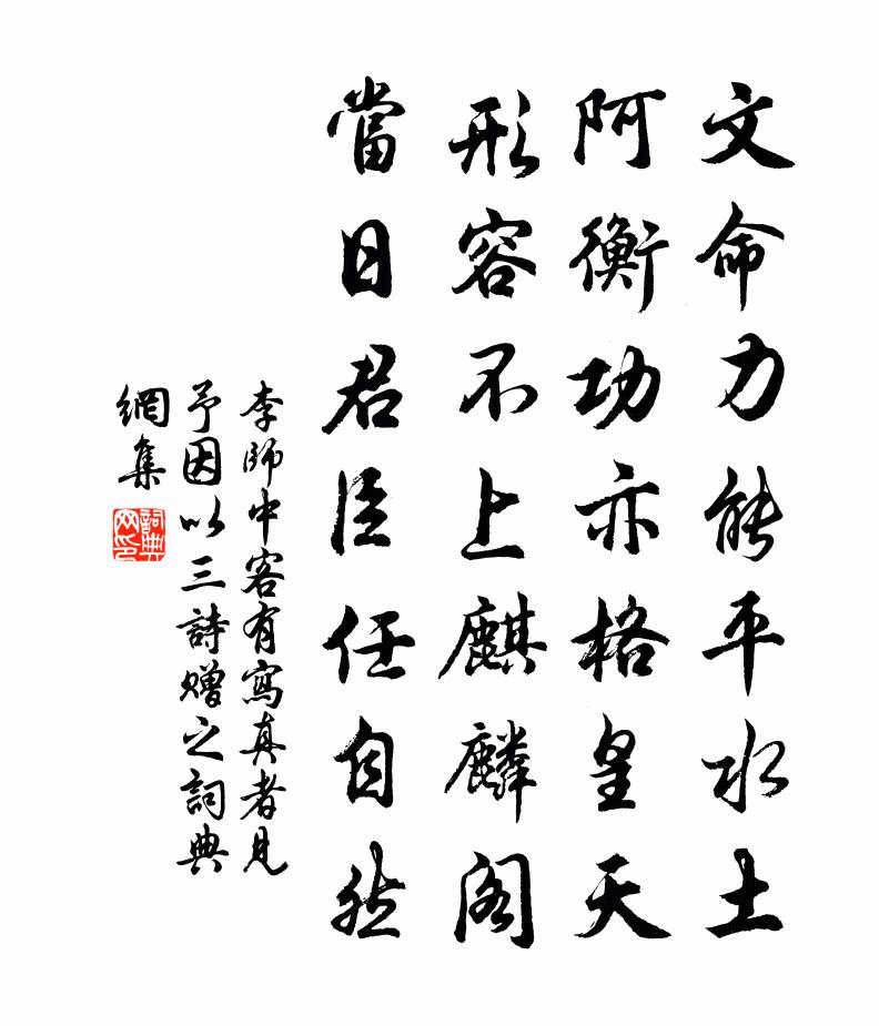 詩詞名句歷史字典書法欣賞書法字典國語詞典說文解字康熙字典古漢語字典標 題 作 者 詩 句 客有寫真者見予因以三詩贈之作者:李師中 朝代:宋代原文文命力能平水土,阿衡功亦格皇天。形容不上麒麟閣,當日君臣任自然。詩詞問答問:《客有寫真者見予因以三詩贈之》的作者是誰?答:李師中問:該詩寫於哪個朝代?答:宋代書法欣賞客有寫真者見予因以三詩贈之書法作品詩詞推薦玉樓春佚名〔宋代〕戲彩堂高無溽暑。滿座風生聞笑語。慈闈今日慶生申,歌遏行雲香篆縷。萬事從今休掛慮。兒輩行當壯門戶。一杯驀山溪 示門人王處一〔元代〕出離苦海,須要明修煉。漸漸滅塵情,默默神功斡旋。虛無造化,丹鼎紫芝香,金花結,玉泉流,全體神光滿。千李參政折贈黃香梅與八詠俱至用韻以謝魏了翁〔宋代〕冰魂玉骨一枝春,風格南昌舊了真。誰幻神仙黃白術,時裝近日太尖新。惜春詞溫庭筠〔唐代〕百舌問花花不語,低回似恨橫塘雨。蜂爭粉蕊蝶分香,不似垂楊惜金縷。願君留得長妖韶,莫逐東風還盪搖。秦女踏莎行王哲〔元代〕不識慚惶,要人津送。情生念起般般動。心神指引乞為緣,三餐飽後休胡用。豈許醫看,莫交人重。行符咒水良因贈白道者(一作詠史第二首)李商隱〔唐代〕十二樓前再拜辭,靈風正滿碧桃枝。壺中若是有天地,又向壺中傷別離。上元三絕張耒〔宋代〕清晨謁帝大明宮,拜賜歸來夜過中。一夢十年身老矣,山城風月作過從。題唐顯孝饒娥墓程時登〔宋代〕悠悠孤憤倚中流,飽閱川陵四百秋。水際叢祠猶昨日,人間抔土幾荒丘。故鄉愛說饒饒姓,往事空傳柳柳州。滿目題思安清意太師幽遠庵釋擇璘〔宋代〕得意幽深觸處真,何須丘壑密藏身。愛茲殊勝園林地,非彼等間花木春。白晝杜門人莫到,清談絕俗世難親。紛紛和武相公早春聞鶯韓愈〔唐代〕早晚飛來入錦城,誰人教解百般鳴。春風紅樹驚眠處,似妒歌童作艷聲。中秋京師對月強至〔宋代〕今夜皇州月,秋光共幾分。未全成皓魄,猶勝隔浮雲。白髮愁偏照,清樽喜獨醺。遙憐江國弟,北望首殷勤。荷橋暮坐三首楊萬里〔宋代〕池似平鋪綠錦橫,荷花為緯藻為經。無端織出詩人像,獨立飛橋摘斗星。醉瓊枝/定風波賀鑄〔宋代〕檻外雨波新漲,門前煙柳渾青。寂寞文園淹臥久,推枕援琴涕自零。無人著意聽。緒緒風披芸幌,鋟鋟月到萱庭。祝英台近佚名〔宋代〕客氈寒,蘭房悄,金爐爇 * 。好個霜天,消遣正宜酒。嫩橙初截鵝肪,肌膚香透。又還記、吳姬縴手。事難偶。秋懷十首張耒〔宋代〕蟲鳴一何悲,竟夕不能已。缺月能幾何,光輝還暫爾。青燈照床帷,解帶偃宵寐。勞勞隨朝日,既夕聊此憩。是非眾香庵贈自休長老錢謙益〔清代〕略彴緣溪一徑分,千山香雪照斜醺。道人不作尋花夢,只道漫山是白雲。花影謝枋得〔宋代〕重重疊疊上瑤台,幾度呼童掃不開。剛被太陽收拾去,又教明月送將來。和黃魯直燒香二首蘇軾〔宋代〕四句燒香偈子,隨香遍滿東南。不是聞思所及,且令鼻觀先參。萬卷明窗小字,眼花只有斕斑。一炷煙消火冷,半范掌書丘葵〔宋代〕出佐繡衣使,八州人共歡。一句司光筆,六計問周官。雁鶩手持進,豺狼膽自寒。豈惟重台省,風采動朝端。和鍾西耘庶常德祥律門感懷詩黃遵憲〔清代〕電掣重輪走水車,風行千里獻比閭。移山未要嗤愚叟,捧土真能塞孟諸。黑齒雕題征鬼籙,赤文綠字詡天書。尋常名句推薦海上眾鳥不敢飛,中有鯉魚長且肥。岑參《熱海行送崔侍御還京》 蜀道之難,難於上青天!李白《蜀道難》 風急天高猿嘯哀,渚清沙白鳥飛回。杜甫《登高》 憶與君別年,種桃齊蛾眉。李白《獨不見》 此去與師誰共到,一船明月一帆風。韋莊《送日本國僧敬龍歸》 秋已無多,早是敗荷衰柳。潘希白《大有·九日》 惡言不出於口,忿言不反於身。戴聖《禮記·祭義》 廬山秀出南斗傍,屏風九疊雲錦張。李白《廬山謠寄盧侍御虛舟》 路漫漫其修遠兮,吾將上下而求索。屈原《離騷》 惟有南來無數雁,和明月、宿蘆花。鄧剡《唐多令·雨過水明霞》