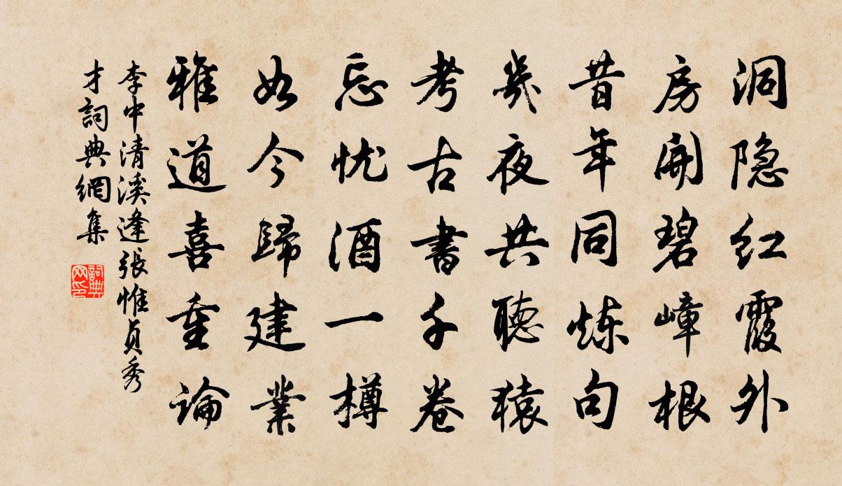 詩詞名句歷史字典書法欣賞書法字典國語詞典說文解字康熙字典古漢語字典標 題 作 者 詩 句 清溪逢張惟貞秀才作者:李中 朝代:唐代清溪逢張惟貞秀才原文洞隱紅霞外,房開碧嶂根。昔年同鍊句,幾夜共聽猿。考古書千卷,忘憂酒一樽。如今歸建業,雅道喜重論。詩詞問答問:清溪逢張惟貞秀才的作者是誰?答:李中問:清溪逢張惟貞秀才寫於哪個朝代?答:唐代問:清溪逢張惟貞秀才是什麼體裁?答:五律李中清溪逢張惟貞秀才書法欣賞清溪逢張惟貞秀才書法作品注釋全唐詩:卷749-52詩詞推薦建隆郊祀八首竇儼〔宋代〕在國南方,時維就陽。以祈帝祉,式致民康。豆邊鼎俎,金石絲簧。禮行樂奏,皇作無疆。閏二月二十九日早離廣德大雨日午晚晴又雨宿虞儔〔宋代〕家山入望更貪程,造物無心雨與晴。今日莫愁明日近,一程但作兩程行。生須快意何嘗夢,久不還鄉亦自驚。親戚村舍陸游〔宋代〕露草乾時兒牧羊,朝日出時女採桑。一床絮被千萬足,不解城中有許忙。滿庭芳 覺前非馬鈺〔元代〕不待人詢,須當自問,如何用意圖財。若非奸狡,無有自然來。心起慳貪嫉妒,寧思想、橫禍非災。欺天地,暗懷寄茅山道友三絕周文璞〔宋代〕伏事三茅過一生,痴心不望羽車迎。舊時手種黃龍子,今解升雲入太清。紹興六年十月六日同信可舜弼進道謁隱甫值渠馮時行〔宋代〕畫山畫骨更畫魂,范寬此中高出群。君家八幅老筆墨,百年古篋鋪香芸。我來日出掛東壁,蒼崖落雪飛紛紛。寒鳥七八用喜雪韻四首吳潛〔宋代〕不持寸鐵事應難,何止空空竭兩端。遠麓遮藏山被檄,輕冰裁翦水能官。將梁兔苑瀛洲比,把蔡鶩池台閣看。獨羨盧助教質夫輓詞二首林亦之〔宋代〕毗耶鈔軸五千卷,淨幾焚香心自閒。蠟燭燒殘春夢斷,逢逢哀鼓吊空山。送陳忠玉兼寄尹夢得黃仲通並寄季通侄五首張嵲〔宋代〕當時分袂各丁年,南國相逢鬢已班。羨子還來覲丘隴,益令歸夢繞金山。梅林即事四首劉應時〔宋代〕藜杖緣溪轉小橋,背風深處似相招。兒童指點皆驚怪,喚作枝頭雪未消。留題石經院三首蘇軾〔宋代〕蔥蒨門前路,行穿翠密中。卻來堂上看,岩谷意無窮。夭矯庭中檜,枯枝鵲踏消。瘦皮纏鶴骨,高頂轉龍腰。窈窕太常引 速可行治具許有壬〔元代〕忍寒搜句意何如。正因我、腹焦枯。茶灶火慵噓。高陽侶、元非姓盧。佳章聯疊,新醅寥落,飛夢繞兵廚。新釀取初夏野興陸游〔宋代〕披衣清曉倚闌乾,龜屋裁成二寸冠。盆檜雨余抽嫩綠,研池風過起微瀾。愛書自笑心常在,去死懸知日尚寬。回視漁家傲黃庭堅〔宋代〕憶昔藥山生一虎。華亭船上尋人渡。散卻夾山拈坐具。呈見處。繁驢橛上合頭語。千戶垂絲君看取。離鉤三寸無生足子蒼和人詩胡仔〔宋代〕執戟老人雙鬢斑,陸沉三世不遷官。窮如老鼠穿牛角,拙似點魚上竹竿。豈有葡萄博名郡,空餘苜蓿上朝盤。榮華次韻柯弟太博見示超化牡丹陳襄〔宋代〕百草蕭條病朔風,雙枝成染魏家紅。直疑天與凌霜色,不假東皇連化工。竹窗王安石〔宋代〕竹窗紅莧兩三根,山色遙供水際門。只我近知牆下路,能將屐齒記苔痕。淇上別劉少府子英高適〔唐代〕近來住淇上,蕭條惟空林。又非耕種時,閒散多自任。伊君獨知我,驅馬欲招尋。千里忽攜手,十年同苦心。求仁詠塵駱賓王〔唐代〕凌波起羅襪,含風染素衣。別有知音調,聞歌應自飛。夏初臨(婺州郡圃)曹冠〔宋代〕水榭風台,竹軒梅逕,雙溪新創名園。極目遐觀,碧岑斂散瑤煙。柳塘風皺清漣。爛紅雲、花島爭妍。艷妝佳麗,名句推薦寒泉貯、紺壺漸暖,年事對、青燈驚換了。吳文英《花犯·謝黃復庵除夜寄古梅枝》 凡是人,皆須愛。天同覆,地同載。李毓秀《弟子規·泛愛眾》 中夜四五嘆,常為大國憂。李白《經亂離後天恩流夜郎憶舊遊書懷贈江夏韋太守良宰》 尊嚴而憚,可以為師荀子《荀子·致士》 自奉必須儉約,宴客切勿流連。朱柏廬《朱子家訓·全文》 善學者,假人之長以補其短。呂不韋《呂氏春秋·紀·孟夏紀》 願我如星君如月,夜夜流光相皎潔。范成大《車遙遙篇》 洞庭春溜滿,平湖錦帆張。陰鏗《渡青草湖》 不是花中偏愛菊,此花開盡更無花。元稹《菊花》 牛鳴而馬不應,非不聞牛聲也,異類故也。劉向《列女傳·辯通傳·齊孤逐女》