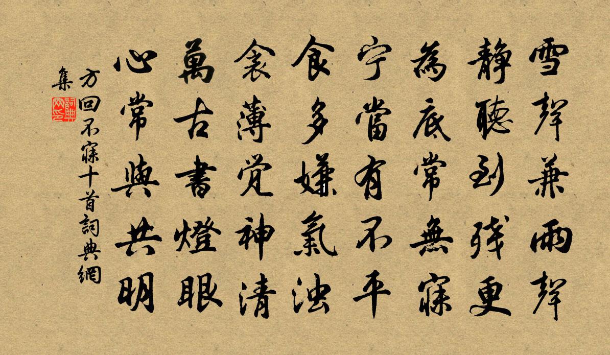 詩詞名句歷史字典書法欣賞書法字典國語詞典說文解字康熙字典古漢語字典標 題 作 者 詩 句 不寐十首作者:方回 朝代:宋代不寐十首原文雪聲兼雨聲,靜聽到殘更。為底常無寐,寧當有不平。食多嫌氣濁,衾薄覺神清。萬古書燈眼,心常與共明。詩詞問答問:不寐十首的作者是誰?答:方回問:不寐十首寫於哪個朝代?答:宋代方回不寐十首書法欣賞不寐十首書法作品詩詞推薦生查子楊炎正〔宋代〕金蓮照夜紅,玉腕扶春碧。曲妙遏雲行,人好欺花色。歡生酒面濃,笑染爐香濕。飲盡十玻璃,月墮東方白。雜詩二首張耒〔宋代〕獨居無與往,況此陰雨天。起來復何有,詩書散我前。偃臥一榻上,讀書疲復眠。經綸負夙志,跌盪窮吾年。陳留柏樓鑰〔宋代〕驛門深閉柏參天,月可中庭夜影圓。人靜好風喧客枕,坐令歸夢到林泉。和兗弟游湖上諸寺二首蘇頌〔宋代〕湖山不到每馳情,與客逢迎暫駐旌。鷲嶺飛來詢慧理,龍宮吟就續延清。僧房有竹循門見,磴道攀蘿盡日行。交臂送魏二王昌齡〔唐代〕醉別江樓橘柚香,江風引雨入舟涼。憶君遙在瀟湘月,愁聽清猿夢裡長。詠史上孔子陳普〔宋代〕絕糧之慍鮮知德,浮海之喜無取材。子思孟軻緣底事,列之舜禹與顏回。次韻余司理路監岳陳造〔宋代〕入山日正烈,出山雲忽濃。身疑潤空青,旋覺霏雨蒙。歸來坐良夜,淙瀉如崩空。縣知焦捲地,轉眼青芃芃。似聞贈禪僧馬戴〔唐代〕弟子人天遍,童年在沃洲。開禪山木長,浣衲海沙秋。振錫搖汀月,持瓶接瀑流。赤城何日上,鄙願從師游。新秋雜題六首吟陸龜蒙〔唐代〕憶山搖膝石上晚,懷古掉頭溪畔涼。有時得句一聲發,驚起鷺鶿和夕陽。題陳山龍祠趙孟堅〔宋代〕白龍生陽山,龍生龍母死。於何藏斯陳,其說從古始。豈伊冥邈中,而亦有地利。季春旬八日,歲歲雨冥晦。龍下輪台子(中呂調)柳永〔宋代〕一枕清宵好夢,可惜被、鄰雞喚覺。匆匆策馬登途,滿目淡煙衰草。前驅風觸鳴珂,過霜林、漸覺驚棲鳥。冒征塵入常山界二首楊萬里〔宋代〕昨日愁霖今喜晴,好山夾路玉亭亭。一峰忽被雲偷去,留得崢嶸半截青。和象翁絕句衛宗武〔宋代〕浮生一夢寄南柯,烏兔雙馳迅若梭。世事如棋如幾變,捄時無著奈時何。奉和聖制夏日游石淙山閻朝隱〔唐代〕金台隱隱陵黃道,玉輦亭亭下絳雰。千種岡巒千種樹,一重岩壑一重雲。花落風吹紅的歷,藤垂日晃綠葐蒀。五百林少朋輓詞三首林亦之〔宋代〕聞說當年歌鹿鳴,黃花八月牡丹生。何人為續夷堅志,好向橋東問姓名。黃野人庵宋煜〔宋代〕淮南雞犬上雲端,底事先生獨世間。上界應嫌官府足,不如平地且驂鸞。敘倫五言二十首劉克莊〔宋代〕博覽勞丸膽,精思恐嘔心。可憐親養薄,難報母恩深。梅雨連日首方回〔宋代〕雨應猶不止,終夕汗如湍。胡蝶魂才返,蒲牢韻已殘。身今棲歙谷,家尚寄嚴灘。江漲忽如許,乘流未覺難。送德隆山主釋重顯〔宋代〕霜葉凋殘,岩風凜寒。彼之禪老,忽下崇巒。衲有雲兮曾卷未卷,琴無弦兮解彈不彈。迢迢既行,宜聽斯語。明暗句李公寅〔宋代〕嶺分東粵封疆闊,天限中原氣象雄。名句推薦萬里不惜死,一朝得成功。高適《塞下曲》 江淮度寒食,京洛縫春衣。王維《送綦毋潛落第還鄉 / 送別》 春雲吹散湘簾雨,絮黏蝴蝶飛還住。納蘭性德《菩薩蠻·春雲吹散湘簾雨》 竹柏皆凍死,況彼無衣民。白居易《村居苦寒》 欲系青春,少住春還去。朱淑真《蝶戀花·送春》 我來圯橋上,懷古欽英風。李白《經下邳圯橋懷張子房》 一簾鳩外雨,幾處閒田,隔水動春鋤。張炎《渡江雲·山陰久客一再逢春回憶西杭渺然愁思》 學是一個尋常的家飯,當隨事而警惕。洪應明《菜根譚·概論》 最喜小兒亡賴,溪頭臥剝蓮蓬。辛棄疾《清平樂·村居》 弓開如秋月行天,箭去似流星落地羅貫中《三國演義·第十六回》