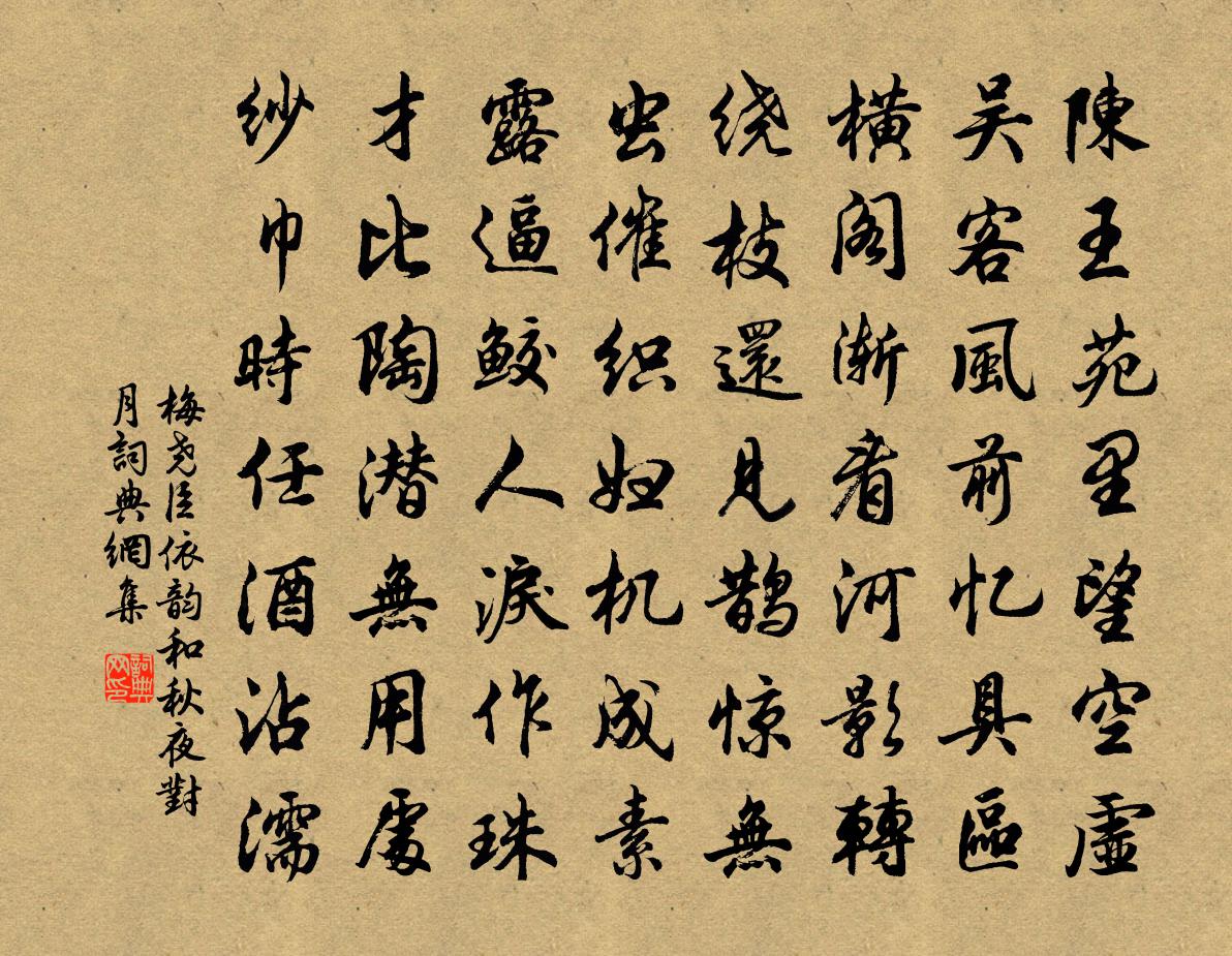 詩詞名句歷史字典書法欣賞書法字典國語詞典說文解字康熙字典古漢語字典標 題 作 者 詩 句 依韻和秋夜對月作者:梅堯臣 朝代:宋代依韻和秋夜對月原文陳王苑裡望空虛,吳客風前憶具區。橫閣漸看河影轉,繞枝還見鵲驚無。蟲催織婦機成素,露逼鮫人淚作珠。才比陶潛無用處,紗巾時任酒沾濡。詩詞問答問:依韻和秋夜對月的作者是誰?答:梅堯臣問:依韻和秋夜對月寫於哪個朝代?答:宋代問:梅堯臣的名句有哪些?答:梅堯臣名句大全梅堯臣依韻和秋夜對月書法欣賞依韻和秋夜對月書法作品詩詞推薦太息陸游〔宋代〕閒將白髮照清溝,太息年光逝不留。勳業無期著書晚,此生與世判悠悠。奉和竇使君同恭法師詠高僧二首竺佛圖澄慧宣〔唐代〕大誓憫塗炭,乘機入生死。中州法既弘,葛陂暴亦止。乳孔光一室,掌鏡徹千里。道盛咒蓮華,災生吟棘子。埋石水館鄭獬〔宋代〕繞舍清流淙碧玉,塵懷開闊洒然醒。窗欞風入秋氣活,橋腳倒撐天面青。露濕風標紅芰老,雨生鱗甲伏龍腥。將書山寺題壁羊士諤〔唐代〕物外真何事,幽廊步不窮。一燈心法在,三世影堂空。山果青苔上,寒蟬落葉中。歸來還閉閣,棠樹幾秋風。因悟釋文珦〔宋代〕因悟維顛匪一繩,遂無心續祖師燈。只圖塵苞難窺影,遠入深峰不記層。土木形骸從朽腐,冰霜志節自堅凝。非吾歲後三日張耒〔宋代〕春風攪空如怒濤,春日寂寂在蓬蒿。衡門鳥雀舞不下,西園桃李氣已嬌。天邊碧雲空漠漠,門外荒草還迢迢。人生和景仁七十一偶成司馬光〔宋代〕心地長閒為己物,年華不駐是天時。當時海上乘槎客,維楫都無行所之。送人儲泳〔宋代〕昨日含愁始送春,今朝又復送行人。江頭楊柳不須折,那與愁眉替得顰。題陽朔山陶弼〔宋代〕名山愛陽朔,平陸遍峰巒。郡境尖中拆,人家缺處安。穿青入梧峽,載影下昭灘。留贈偃師主人許渾〔唐代〕孤城漏未殘,徒侶拂征鞍。洛北去游遠,淮南歸夢闌。曉燈回壁暗,晴雪捲簾寒。強盡主人酒,出門行路難。與友人會宿城中賈似道〔宋代〕江湖相隔久,不料宿京城。終夜同談笑,對床如弟兄。濕螢飛復落,殘燭滅不明。此去仍多事,重期未必成。牡丹二首(此後並是校書郎以前作)元稹〔唐代〕簇蕊風頻壞,裁紅雨更新。眼看吹落地,便別一年春。繁綠陰全合,衰紅展漸難。風光一抬舉,猶得暫時看。句釋曉瑩〔宋代〕素王妙道況親傳。小重山劉秉忠〔元代〕詩酒休驚誤一生。黃塵南北路、幾功名。枝頭烏鵲夢頻驚。西州月,夜夜照人明。枕上數寒更。西風殘漏滴、兩三再賦薄薄酒敖陶孫〔宋代〕薄薄酒,全吾天。醜醜婦,引吾年。敗繒粗布形骸便。辛勤著書塞屋椽,何如郭外二頃桑麻田,折腰斂板高鳶肩,無夢令 贈於面前先生馬鈺〔元代〕惆悵煙霞伴侶。堅意辭予歸去。不念我伶仃,守一清清環堵。環堵。環堵。終日無情無緒。懷古王郡守〔宋代〕有唐曾擁萬家兵,節度西南十二城。此地得人無盜賊,昔之為守便公卿。贈宋相士謝枋得〔宋代〕墮甑看無益,乘軒計亦疏。忍貧吾自解,過論子姑徐。但得耆而艾,飽觀詩與書。時乎一杯酒,此外盡從渠。頌十玄談還源釋印肅〔宋代〕還鄉曲調如何唱,蝶拍鶯歌大道場。唯有禾山解打鼓,金牛作舞也尋常。獨酌吳錫疇〔宋代〕獨酌悠然醉,應無語笑嘩。百年柯上蟻,萬事琖中蛇。詩定重刪草,燈挑又作花。不煩眠遣客,長嘯岸烏紗。名句推薦萬國奔騰,兩宮幽陷,此恨何時雪。黃中輔《念奴嬌·炎精中否》 身無彩鳳雙飛翼,心有靈犀一點通。李商隱《無題·昨夜星辰昨夜風》 提出西方白帝驚,嗷嗷鬼母秋郊哭。李賀《春坊正字劍子歌》 綠葉漸成陰,下有遊人歸路。王安石《傷春怨·雨打江南樹》 曉月過殘壘,繁星宿故關。司空曙《賊平後送人北歸》 博觀而約取,厚積而薄發蘇軾《稼說送張琥》 風塵荏苒音書絕,關塞蕭條行路難。杜甫《宿府》 劃然長嘯,草木震動,山鳴谷應,風起水涌蘇軾《後赤壁賦》 青衫匹馬萬人呼,幕府當年急急符。辛棄疾《送湖南部曲》 一場幽夢同誰近,千古情人獨我痴。曹雪芹《紅樓夢·第五回》