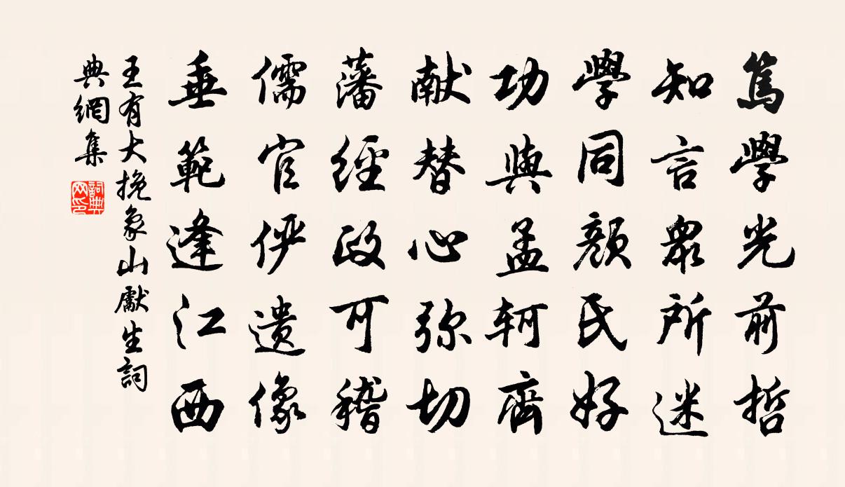詩詞名句歷史字典書法欣賞書法字典國語詞典說文解字康熙字典古漢語字典標 題 作 者 詩 句 挽象山先生作者:王有大 朝代:宋代挽象山先生原文篤學光前哲,知言眾所迷。學同顏氏好,功與孟軻齊。獻替心彌切,藩經政可稽。儒官儼遺像,垂範逢江西。詩詞問答問:挽象山先生的作者是誰?答:王有大問:挽象山先生寫於哪個朝代?答:宋代王有大挽象山先生書法欣賞挽象山先生書法作品詩詞推薦次韻曹子方毛滂〔宋代〕盾威正赫忽衰殲,人意渾如水面寬。觸石端來慰枯槁,隨車定見濕朱丹。初憂連軫秋無種,豈望始雲晚可觀。天遣病中遣懷陸游〔宋代〕菘芥煮羹甘勝蜜,稻粱炊飯滑如珠。上方香積寧過此?慚愧天公養病夫。脫窗間蜂有感二首錢時〔宋代〕病體今朝尚怯風,北窗深坐思融融。莫言袖手無勳業,頃刻窗間救十蜂。春日偶作武元衡〔唐代〕飛花寂寂燕雙雙,南客衡門對楚江。惆悵管弦何處發,春風吹到讀書窗。金縷詞(壽南樓)佚名〔宋代〕欲上南樓壽。記當年、祥占玉燕,一陽生候。今數書雲猶七日,宮線未添刺繡。便草就、壽詞盈袖。合捧金荷稱鶴革轍二門釋重顯〔宋代〕宛轉復宛轉,真金休百鍊。喪卻毗耶離,無人解看箭。頌古三首釋從瑾〔宋代〕開口不見齒,伸手不見掌。夜半忽相逢,葛藤長萬丈。枕上陸游〔宋代〕送盡小窗月,數殘孤戍更。清詩時自至,幽夢久方成。衣杵斷還續,燈花落復生。細衾剩得暖,紙帳不知明。句翁宏〔唐代〕風高弓力大,霜重角聲乾。暗用古人名詩寄程帥陳造〔宋代〕羨公椽筆銜陽秋,黃鐘大呂豪端收。省闈高掇未足道,文章老手第一流。轇轕玄譚已驚眾,倒河翻瀾駭飛動。遞中過戰鳥山譚嗣同〔清代〕冰玉相生愧獨頑,可兒豪膽鎮心關。悲秋剩有桓宣武,雪涕重經戰鳥山。鹹陽覽古沈佺期〔唐代〕鹹陽秦帝居,千載坐盈虛。版築林光盡,壇場霤聽疏。野橋疑望日,山火類焚書。唯有驪峰在,空聞厚葬餘。靜坐齊己〔唐代〕坐臥與行住,入禪還出吟。也應長日月,消得個身心。默論相如少,黃梅付囑深。門前古松徑,時起步清陰。捧宣頭許歸侍養李中〔唐代〕泥書捧處聖恩新,許覲庭闈養二親。螻蟻至微寧足數,未知何處答穹旻。寄許介之樂雷發〔宋代〕惹得詩名遍九州,酒徒棋伴半公侯。離騷甘隱魚鱗屋,樂府多傳鳷鵲樓。醉葉幾窠藏菊徑,蠹荷三畝護漁舟。中原點絳唇(紫蘇熟水)楊無咎〔宋代〕寶勒嘶歸,未教佳客輕辭去。姊夫屢鼠。笑聽殊方語。清入迴腸,端助詩情苦。春風路。夢尋何處。門掩桃花雨。東津招二族兄同游高峰金履祥〔宋代〕客中連日雨和風,晴色今朝杳靄中。遙想雁行公事畢,肯來同上北高峰。寄嵩陽道人曹鄴〔唐代〕三山浮海倚蓬瀛,路入真元險盡平。華表千年孤鶴語,人間一夢晚蟬鳴。將龍逐虎神初王,積火焚心氣漸清。見說挽吳給事芾孫應時〔宋代〕人物中興後,猗公一世雄。虹蜺輝霽景,山嶽鎮頹風。用舍關輕重,聲名擅始終。堂堂今日盡,海宇盡哀恫。十報恩 贈李校尉馬鈺〔元代〕一身便做個丹丘。於內常常雲水游,離坎交宮真子午,甲庚易位沒春秋。五行四象皆無用,三島十洲卻有由。功行名句推薦一手獨拍,雖疾無聲。韓非及後人《韓非子·功名》 詩成自寫紅葉,和恨寄東流。晏幾道《訴衷情·憑觴靜憶去年秋》 人之所助者,信也。佚名《易傳·繫辭傳上·第十二章》 別來不寄一行書。尋常相見了,猶道不如初。晁沖之《臨江仙·憶昔西池池上飲》 衣冠未必皆男子,巾幗如何定婦人?馮夢龍《醒世恆言·卷十》 松葉堪為酒,春來釀幾多。張九齡《答陸澧》 柳葉開銀鏑,桃花照玉鞍。駱賓王《送鄭少府入遼共賦俠客遠從戎》 龍魚失水難為用,龜玉蒙塵未見珍牟融《春日山亭》 卜鄰近三徑,植果盈千樹。孟浩然《田園作》 便向夕陽影里,倚馬揮毫。納蘭性德《風流子·秋郊即事》