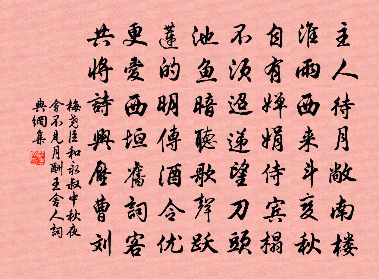 主人待月敞南樓,淮雨西來斗變秋。自有嬋娟侍賓榻,不須迢遞望刀頭。