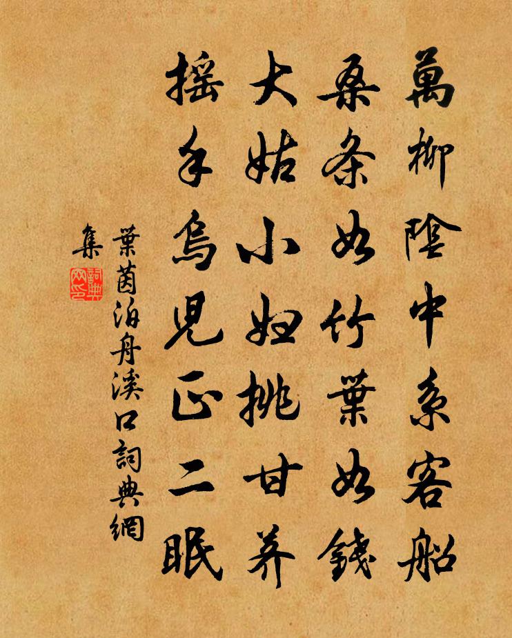 詩詞名句歷史字典書法欣賞書法字典國語詞典說文解字康熙字典古漢語字典標 題 作 者 詩 句 泊舟溪口作者:葉茵 朝代:宋代泊舟溪口原文萬柳陰中系客船,桑條如竹葉如錢。大姑小婦挑甘薺,搖手烏兒正二眠。詩詞問答問:泊舟溪口的作者是誰?答:葉茵問:泊舟溪口寫於哪個朝代?答:宋代葉茵泊舟溪口書法欣賞泊舟溪口書法作品詩詞推薦中秋下浣次計幕諸公佳什之韻趙善括〔宋代〕短櫂夷猶任去留,塵勞今日暫休休。飛觴莫問重城晚,攬鏡須驚兩鬢秋。千里歸艎何日到,一眉清綠與雲浮。殷勤項里溪上見珍禽日溪鵲相隨數十步不去陸游〔宋代〕涉溪來過東溪老,斷枝槁葉紛如掃。忽逢溪鵲昔未識,言語惺憁羽毛好。異哉馴狎若可呼,跡雖甚疏情有餘。上穿德彬修雙陽塔求頌釋曇華〔宋代〕九層塔聳青霄外,七佛靈蹤在上方。山冷雲寒當午夜,唯聞仙樂散天香。題度門寺周承勛〔宋代〕才入度門寺,先觀覺范詩。昔人吟不盡,今日到方知。地僻寒來早,高山月上遲。池邊老修竹,曾映董生幃。舟行述懷寄公儀王珪〔唐代〕昔陪畫省對春菲,今日逢春未得歸。灼灼海棠誰復折,差差燕子又還飛。清尊須惜良辰共,白髮俄驚萬事非。昨夜游山中胡仲參〔宋代〕世途平處起波瀾,輸與高僧占好山。竹塵直為揮俗具,槿籬虛設掩塵關。林泉有分酬清供,瓶錫無人伴此閒。擺脫望岳三首杜甫〔唐代〕岱宗夫如何?齊魯青未了。造化鍾神秀,陰陽割昏曉。盪胸生曾雲,決眥入歸鳥。會當凌絕頂,一覽眾山小。西嶽四安縣道中望一山最尖青問轎夫雲是饅頭山因陳著〔宋代〕眼前山忽好,他處特紛綠。四下正鋪野,一尖高入雲。乾坤分外闊,江浙此閒分。我欲更村號,尊為卓秀君。海仙花詩王禹偁〔宋代〕春憎窈窕教無子,天為妖嬈不與香。盡日含毫難比興,花中應是衛莊姜。滿江紅元好問〔金代〕枕上吳山,隱隱見、宮眉修碧。人好在、斷渾似,畫圖相識。羅襪塵香來有信,玉簫聲遠尋無跡。恨不將、春色醉鷓鴣天晁端禮〔宋代〕八彩眉開喜色新。邊陲來奏捷書頻。百蠻洞穴皆王土,萬里戎羌盡漢臣。丹轉轂,錦拖紳。充庭列貢集珠珍。宮花初入淮河四絕句楊萬里〔宋代〕兩岸舟船各背馳,波浪交涉亦難為。只余鷗鷺無拘管,北去南來自在飛。秋晚雜興陸游〔宋代〕漠漠漁村煙雨中,參差蒼檜映丹楓。古來畫手知多少,除卻范寬無此工。題長江圖三絕王柏〔宋代〕瓜步洲前水最深,幾人恃此縱荒淫。誰雲天意分南北,自是人無混一心。宋頌九首湯湯石介〔宋代〕昔時蜀道,絕人來往。今蜀既平,王道蕩蕩。尉候一置,朝貢相望。巍巍皇祖,德聲遠暢。仙家釋文珦〔宋代〕四面煙霞一徑苔,碧桃花際洞門開。椶冠道士向余說,時復有人騎鶴來。城外見杏花吳師道〔元代〕曲江二十年前會,回首芳菲似夢中。老去京華度寒食,閒來野水看東風。樹頭絳雪飛還白,花外青天映更紅。聞說送友生入越投知己貫休〔唐代〕才大終難住,東浮景漸暄。知將刖足恨,去擊李膺門。宿霧開花塢,春潮入薴村。預思秋薦後,一鶚出乾坤。和子瞻鐵柱杖蘇轍〔宋代〕截竹為杖瘦且輕,石堅竹破誤汝行。削木為杖輕且好,道遠木折恐不到。閩君鐵杖七尺長,色如黑蛇氣如霜。提攜昭潭諺佚名〔唐代〕昭潭無底橘州浮。名句推薦湘江千歲未為陵,水底魚龍應識字。鮑溶《襄陽懷古》 朝屯雪山下,暮宿青海旁。韋元甫《木蘭歌》 當時明月在,曾照彩雲歸。晏幾道《臨江仙·夢後樓台高鎖》 雨余溪水掠堤平,閒看村童謝晚晴。陸游《觀村童戲溪上》 話不在多說,有理不在高聲!佚名《增廣賢文·下集》 梅子金黃杏子肥,麥花雪白菜花稀。范成大《四時田園雜興·其二》 將軍玉帳貂鼠衣,手持酒杯看雪飛。劉基《北風行》 何事非相思,江上葳蕤竹。吳均《登二妃廟》 得其所利,必慮其所害;樂其所成,必顧其所敗。劉向《說苑·敬慎》 明妃一朝西入胡,胡中美女多羞死。李白《于闐採花》