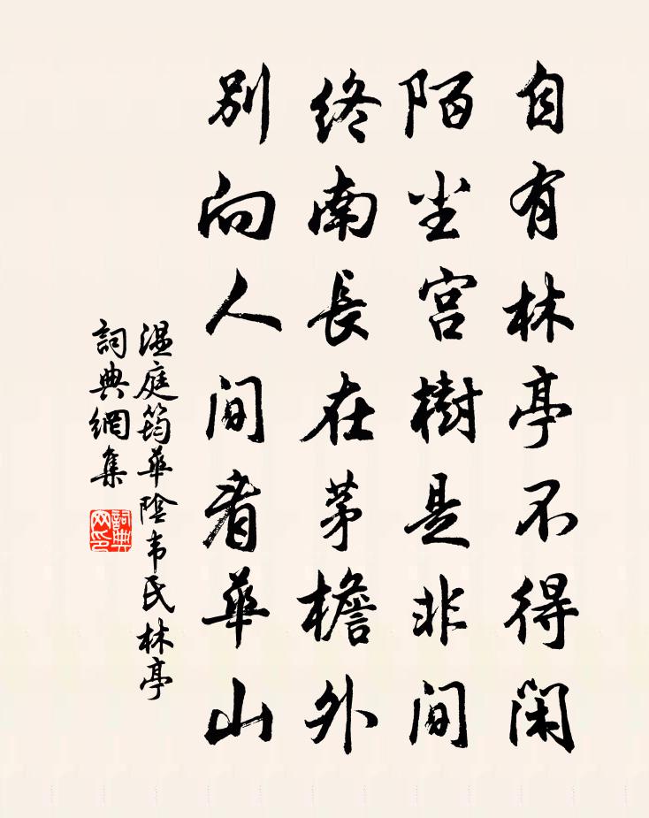 自有林亭不得閒,陌塵宮樹是非間。終南長在茅檐外,別向人間看華山。