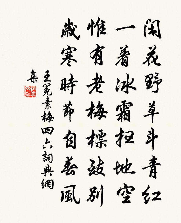 閒花野草斗青紅,一著冰霜掃地空。惟有老梅標緻別,歲寒時節自春風。