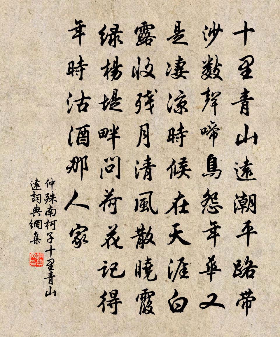 十里青山遠,潮平路帶沙。數聲啼鳥怨年華。又是淒涼時候,在天涯。