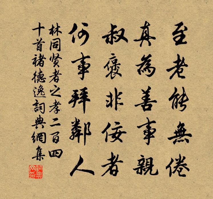 詩詞名句歷史字典書法欣賞書法字典國語詞典說文解字康熙字典古漢語字典標 題 作 者 詩 句 賢者之孝二百四十首褚德逸作者:林同 朝代:宋代賢者之孝二百四十首褚德逸原文至老能無倦,真為善事親。叔褒非佞者,何事拜鄰人。詩詞問答問:賢者之孝二百四十首褚德逸的作者是誰?答:林同問:賢者之孝二百四十首褚德逸寫於哪個朝代?答:宋代林同賢者之孝二百四十首褚德逸書法欣賞賢者之孝二百四十首褚德逸書法作品詩詞推薦紀夢曲薛師石〔宋代〕夜夢佳人姱且長,星冠霞帔雲衣裳。雙眉淺淡畫春色,兩耳炫濯垂珠璫。細步逡巡倏相近,世道人情不敢問。斂容題金明府平易堂方回〔宋代〕桑疇麥隴頌聲歡,競說琴書政事寬。方寸惟知存豈弟,絲毫不肯作艱難。愛民何啻如兒子,行路休教避長官。來往嘉禾書所見吳龍翰〔宋代〕翠幕重重護曉寒,窗間金鴨篆煙殘。芳情不採閒花草,獨倚闌乾看牡丹。笛丁謂〔宋代〕衡陽裁翠簳,夢澤剪霜柯。妙制非丘仲,知音賞列和。賦因懷舊得,曲為寫情多。三弄青溪側,風流奈爾何。應庵師祖贊釋崇岳〔宋代〕虎口裡轉身,拳頭上捏怪。胡亂三十年,起東山正派。不知過犯彌天大。逍遙詠宋太宗〔宋代〕法則定乾坤,千秋與萬春。金烏飛絳闕,玉兔弄精神。達識逢堪笑,賢愚本是真。清風搖聖境,仙說洞中人。菩薩蠻·端午日詠盆中菊顧太清〔清代〕薰風殿閣櫻桃節,碧紗窗下沈檀爇。小扇引微涼,悠悠夏日長。野人知趣甚,不向炎涼問。老圃好栽培,菊花五月西齋秋日雜書五首方回〔宋代〕對奕不如觀,觀不如聽聲。獨坐無來客,小軒秋雨晴。思之有百憂,不思了無情。萬有皆外物,世重我所輕。默數清吟寺胡仲弓〔宋代〕高僧曾住此,長對佛爐吟。蕭寺有興廢,清名無古今。禪心秋水瑩,燈影石壇深。不見鬼神泣,空聞鐘聲音。雜曲歌辭。排遍第三佚名〔唐代〕坐對銀釭曉,停留玉箸痕。君門常不見,無處謝前恩。沛公歌梅堯臣〔宋代〕赤帝醉提龍劍行,徑草沒人壯士驚。白蛇斷裂不可續,神嫗哀哀夜深哭。酒醒自負氣生虹,從者日畏天下雄。秦皇深居釋文珦〔宋代〕深居謝交遊,積葉任埋徑。澹然忘所營,為是疏懶性。已達身本虛,寧憂室垂罄。時於泉石間,信意成短詠。於以謁趙文鼎墓趙蕃〔宋代〕君臥青山久,余今白髮新。秋風對搖落,舊事入悲辛。此世寧長世,吾身豈久身。蕭蕭聞鶴夜,耿耿待雞晨。宿尊勝庵二首呈謙之方翥〔宋代〕天寒古寺往來然,門掩柴爐晝共圍。細雨無聲潛自落,開簾時復見霏霏。漁浦夜雪懷季敭錢時〔宋代〕季敭欲我來山陰,季思欲我歸嚴陵。嚴陵山陰兩無住,來去於我如浮雲。飛雪漫漫浙江暮,朔風吹船漁浦渡。咫尺獨行丘葵〔宋代〕孤煙落日是何村,向晚村舂隔水聞。白鳥遠來全似蝶,紅霞淡去卻成雲。愁同落葉飛無數,淡比秋山瘦幾分。客寄沁園春佚名〔宋代〕大道無名,大音希聲,大器晚成。笑迷人管見,不言便了,似鑽冰取火,紐石為繩。使盡精神,虛勞神用,緣木求舞曲歌辭白紵歌張籍〔唐代〕皎皎白紵白且鮮,將作春衫稱少年。裁縫長短不能定,自持刀尺向姑前。復恐蘭膏污纖指,常遣傍人收墮珥。衣裳題凌歊台莊革〔宋代〕姑孰溪邊霜葉飛,凌歊台上暮雲歸。謫仙一去不復返,悵望青山空翠微。雲洞園董嗣杲〔宋代〕下湖營圃藉元勛,景色天然曲折分。水脈窨花通活港,洞基壘石走空雲。千間大廈歸春夢,一撮危亭納夕曛。扁畫名句推薦越人語天姥,雲霞明滅或可睹。李白《夢遊天姥吟留別 / 別東魯諸公》 蛛絲暗鎖紅樓,燕子穿簾處。吳文英《荔枝香近·七夕》 大雪壓青松,青松挺且直。陳毅《青松》 春閨月,紅袖不須啼。元好問《江月晃重山·初到嵩山時作》 休別有魚處,莫戀淺灘頭。佚名《增廣賢文·上集》 傷心莫語,記那日旗亭,水嬉散盡,中酒阻風去。納蘭性德《摸魚兒·午日雨眺》 雁濕行無次,花沾色更鮮。李世民《詠雨》 學則智,不學則愚;學則治,不學則亂。黃宗羲《明儒學案·甘泉學案·侍郎許敬菴先生孚遠》 不負東籬約,攜尊過草堂。妙信《九日酬諸子》 應無所住而生其心。鳩摩羅什譯《金剛經·莊嚴淨土》