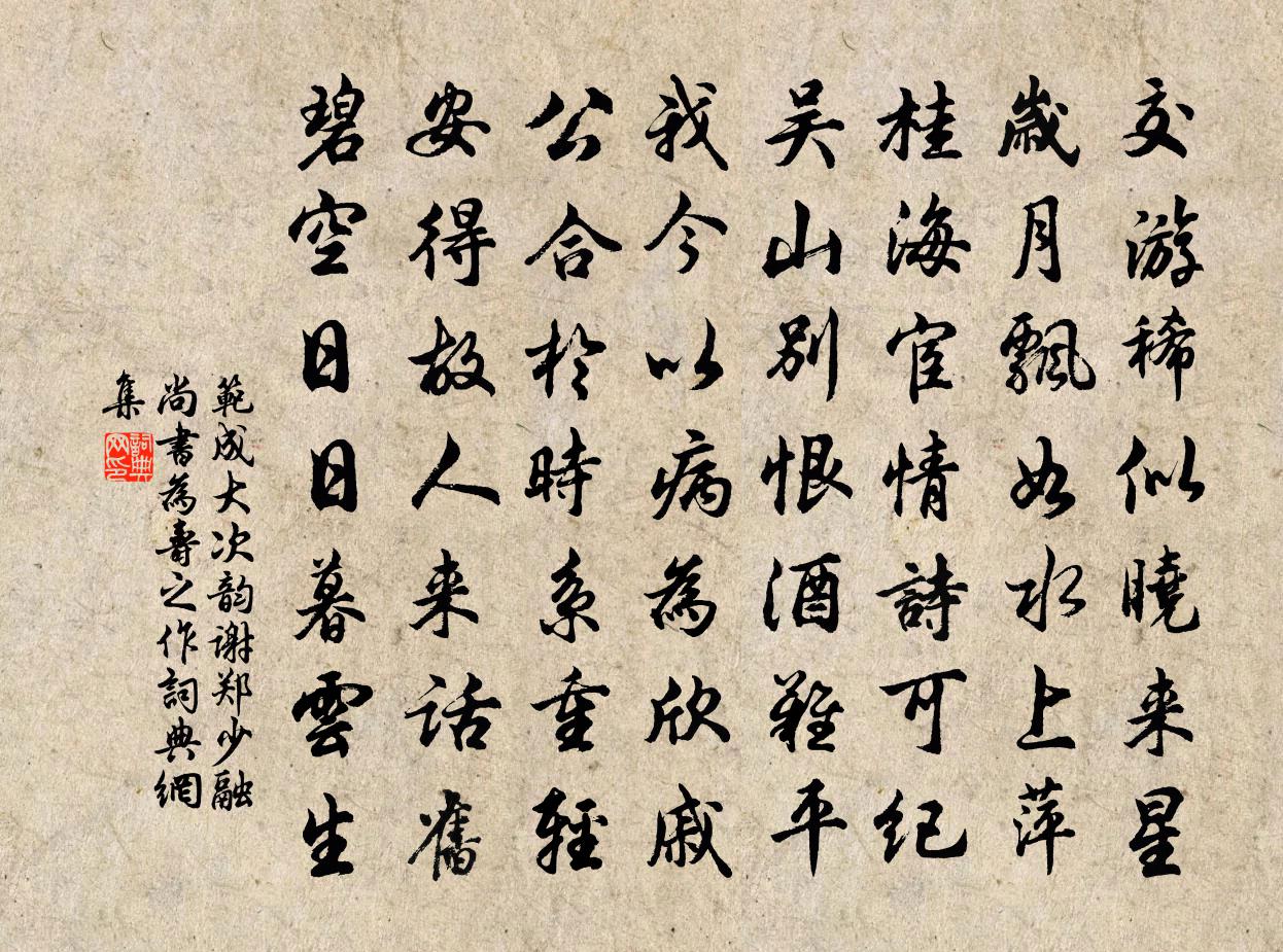 范成大次韻謝鄭少融尚書為壽之作書法欣賞