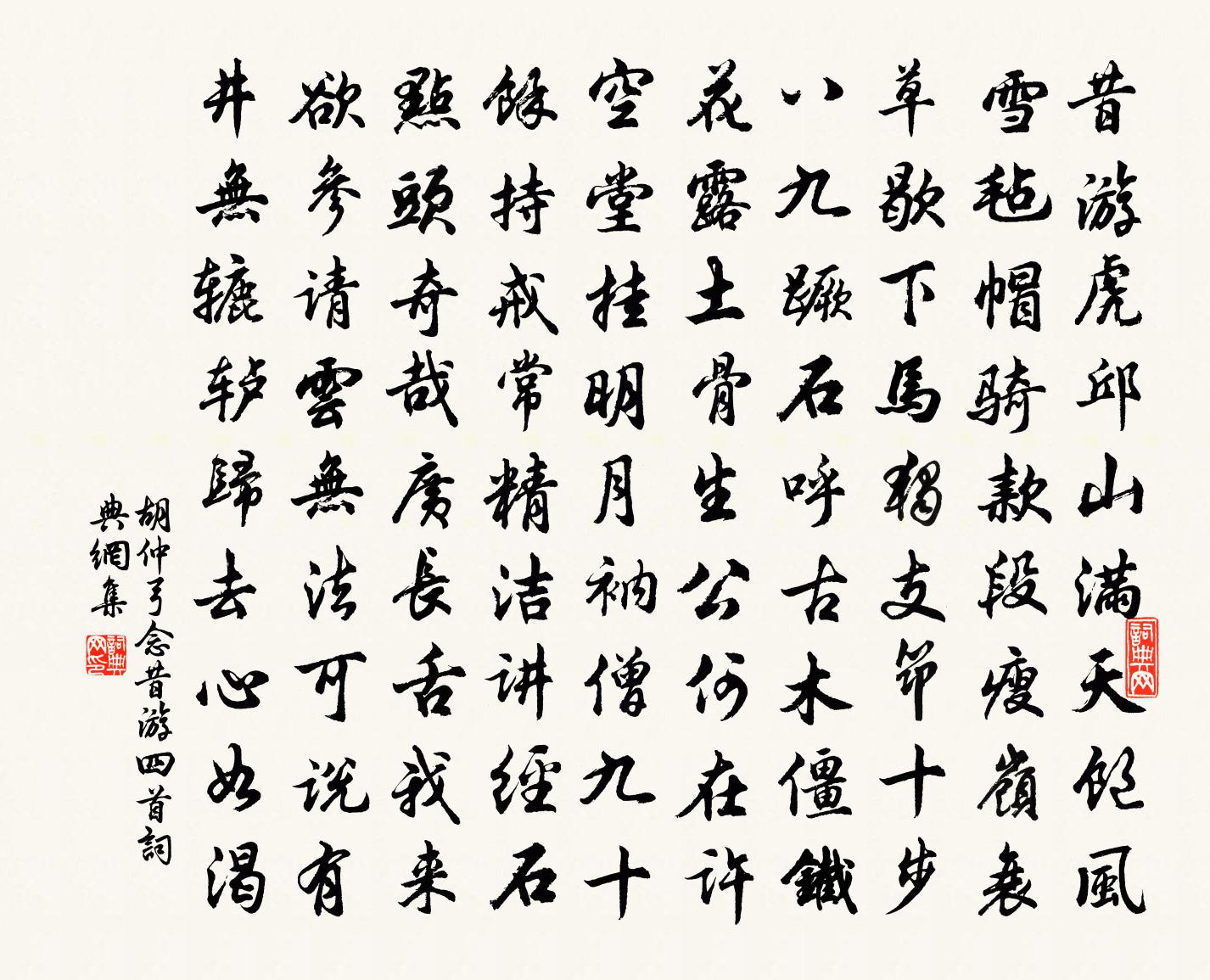 詩詞名句歷史字典書法欣賞書法字典國語詞典說文解字康熙字典古漢語字典標 題 作 者 詩 句 念昔游四首作者:胡仲弓 朝代:宋代念昔游四首原文昔游虎邱山,滿天飽風雪。氈帽騎款段,瘦嶺衰草歇。下馬獨支筇,十步八1|1九蹶。石呼古木僵,鐵花露土骨。生公何在許,空堂掛明月。衲僧九十餘,持戒常精潔。講經石點頭,奇哉廣長舌。我來欲參請,雲無法可說。有井無轆轤,歸去心如渴。詩詞問答問:念昔游四首的作者是誰?答:胡仲弓問:念昔游四首寫於哪個朝代?答:宋代胡仲弓念昔游四首書法欣賞念昔游四首書法作品詩詞推薦津頭望白水周繇〔唐代〕晴江暗漲岸吹沙,山畔船沖樹杪斜。城郭半淹橋市鬧,鷺鷥繚繞入人家。宮詞一百首岳珂〔宋代〕瑞雲擎出捧珠龍,十二時堂建合宮。□□頒常同正朔,要令聲教混華戎。寄題程元成紛事山居三詠攬有亭楊萬里〔宋代〕葵心一岫卓南涯,秀野諸峰走北來。中起新亭雙奄有,盡驅景物四邊回。木居士作煨塵嘆,孤竹君真梁棟材。知有金陵雜興二百首蘇泂〔宋代〕內官折送御園梅,歷刺如薪苦不才。安得昌原帶苔樹,疏花分得幾枝來。挽李尚書二首劉克莊〔宋代〕韓范止如此,公乎事又艱。不陪冶城廟,合殉定軍山。璽出千官賀,弓藏一老閒。雕戈提十萬,猶記凱歌還。聞景龍不試燈晁說之〔宋代〕華燈不試管弦新,八字歌聲滿市塵。今日景龍門寂寞,唯將明德照新春。滿江紅 三泉醉飲元好問〔金代〕桃李漫山,風日暖、朝來開徹。東溪上、落花流水,暮春三月。一片段預告飛春意減,有花堪折君須折。恨百年、春事南紀黃文雷〔宋代〕南紀沾王澤,涵濡已百年。故應逢小劫,何得怨蒼天。舊觀寧無日,浮生自可憐。永懷千古事,感慨淚漣漣。答王司空餉酒詩庾信〔南北朝〕今日小園中。桃花數樹紅。開君一壼酒。細酌對春風。未能扶畢卓。猶足舞王戎。仙人一捧露。判不及杯中。題李次仲庵中曹勛〔宋代〕杖藜乘興出江頭,自掛青錢買小舟。祈問仙翁餐玉法,便風一日到嚴州。別舊山於鵠〔唐代〕舊伴同游盡卻回,雲中獨宿守花開。自是去人身漸老,暮山流水任東來。六言山居釋紹曇〔宋代〕盤石新封翠蘚,破龕重繞青蘿。喚起驚回殘夢,月篩林影婆娑。小水寺趙汝鐩〔宋代〕披霧入野寺,寒林響西風。誰遣僧出迎,山鳥為我通。染衣松露香,照眼岩花紅。聊此息塵慮,歸騎毋匆匆。慈雲嶺楊蟠〔宋代〕落日愁飛雨,雲中一線明。西湖將盡處,忽見大江橫。鴉路溪行,呈陸中丞孟郊〔唐代〕鴉路不可越,三十六渡溪。有物飲碧水,高林掛青蜺。歷覽道更險,驅使跡頻暌。視聽易常主,心魂互相迷。浪石和日臥疾恭上人來過不及見因以詩答梅堯臣〔宋代〕溪上秋霧多,溪居曉寒入。呼吸遂生痾,嘔泄不下粒。素居江南地,大率皆卑濕。久從吳土居,氣候非所襲。伏枕從駕至開寶寺慶壽崇因閣依韻和吳相公王珪〔唐代〕崇因開寶構,金碧畫相輝。禁蹕隨曦馭,層城轉斗機。梵音獅子吼,妙相鴿王歸。洛水浮神篆,天花滿御衣。塔疑次韻王得之游淨明題易安二絕張嵲〔宋代〕銅駝陌上須臾樂,金穴侯家瞬息歡。爭似蓋頭茅一把,老僧終日百般安。岳市勝業寺禹柏戴復古〔宋代〕三千年老柏,怪怪復奇奇。剖彼一枯腹,離為九折枝。蟠根半生死,閱世幾興衰。神禹所栽植,山靈常護持。游白鹿洞歌紫霞真人〔明代〕何年白鹿洞?正傍五老峰。五老去天不盈尺,俯窺人世煙雲重。我欲攬秀色,——青芙蓉。舉手石扇開半掩,綠鬟名句推薦布被秋宵夢覺,眼前萬里江山。辛棄疾《清平樂·獨宿博山王氏庵》 當時明月在,曾照彩雲歸。晏幾道《臨江仙·夢後樓台高鎖》 西山白雪三城戍,南浦清江萬里橋。杜甫《野望》 鳥啼官路靜,花發毀垣空。張繼《清明日自西午橋至瓜岩村有懷》 雨濕花房,風斜燕子,池閣晝長春晚。呂渭老《選冠子·雨濕花房》 春來遍是桃花水,不辨仙源何處尋。王維《桃源行》 多少淚珠何限恨,倚欄乾李璟《攤破浣溪沙·菡萏香銷翠葉殘》 吏呼一何怒,婦啼一何苦。杜甫《石壕吏》 丈夫志四海,萬里猶比鄰。曹植《贈白馬王彪·並序》 楊花榆莢無才思,惟解漫天作雪飛。韓愈《晚春》
