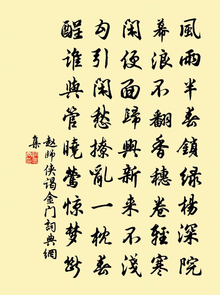 - 水風輕,蘋花漸老,月露冷、梧葉飄黃。