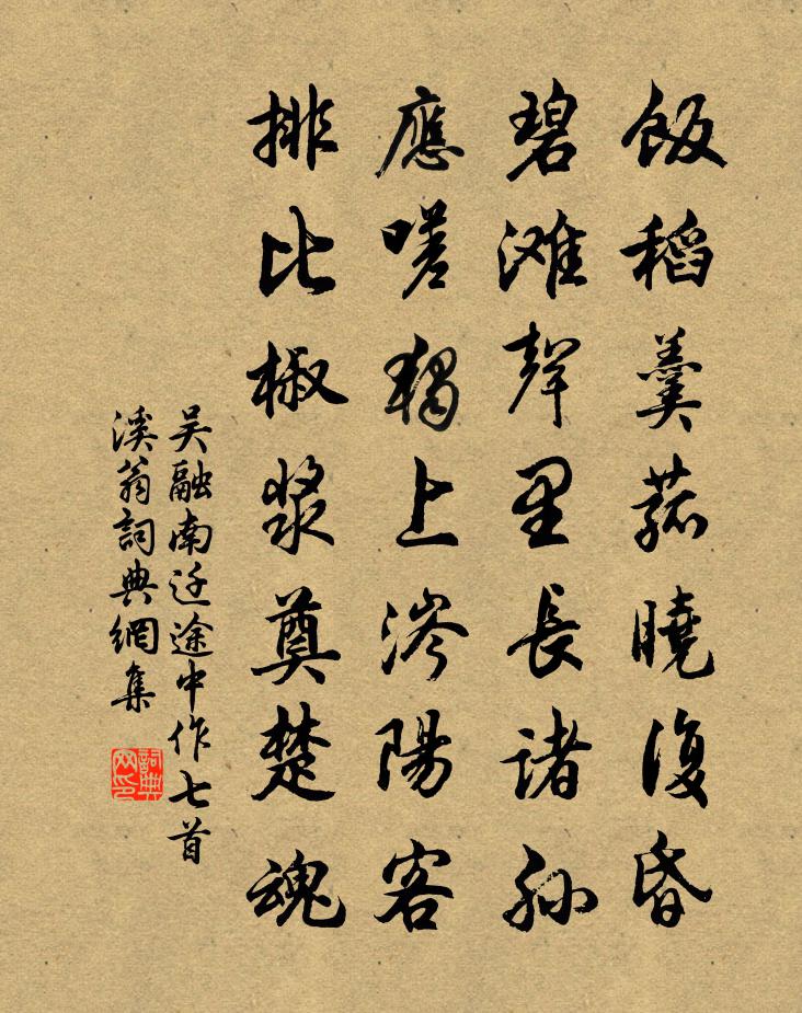 詩詞名句歷史字典書法欣賞書法字典國語詞典說文解字康熙字典古漢語字典標 題 作 者 詩 句 南遷途中作七首溪翁作者:吳融 朝代:唐代南遷途中作七首溪翁原文飯稻羹菰曉復昏,碧灘聲里長諸孫。應嗟獨上涔陽客,排比椒漿奠楚魂。詩詞問答問:南遷途中作七首溪翁的作者是誰?答:吳融問:南遷途中作七首溪翁寫於哪個朝代?答:唐代吳融南遷途中作七首溪翁書法欣賞南遷途中作七首溪翁書法作品注釋全唐詩:卷686-16詩詞推薦貧中自戲陸游〔宋代〕種枳為籬草結廬,人間知足更誰如?澗深松老忘榮謝,天闊雲閒任卷舒。門冷並無殘客跡,家貧常讀絕編書。有金採蓮曲俞桂〔宋代〕西風引袂涼雲起,鴛漿扶船浮淥水。露沁花脂茜粉香,滿柄鋒芒刺蔥指。紅綃半妥金釧明,堤上六郎闚唱聲。湘中挽李中甫使君孫應時〔宋代〕書卷平生事,篝燈靜夜分。韻鈞奏韓柳,黼黻補卿雲。不鄙頻揮塵,曾窺一運斤。詞人嗟不遇,地下早修文。龜溪即事五首高斯得〔宋代〕頑雲蔀鶴嶺,積雪明龜溪。枌榆社已到,斯焉卜幽棲。亦有好事人,除館溪之西。門巷寄深窈,青山有攀躋。平生追感往事陸游〔宋代〕太平翁翁十九年,父子氣焰可熏天。不如茅舍醉村酒,日與鄰翁相枕眠。賢者之孝二百四十首郭基林同〔宋代〕豈伊東合里,無似督郵賢。直把孝行薦,今人少孟堅。信兒有作依韻勉之丘葵〔宋代〕母雞啄兒粟,一啄還一呼。細腰日祝子,自憐族鰥孤。賦形在穹壤,此情誰獨無。古來骨肉間,愛深色自榆。愧我送吳照鄰都官還江南梅堯臣〔宋代〕霜前江水磨碧銅,岸背菱葉翹赤蟲。吳郎鬢絲生幾縷,不羞月上扶桑東。羞見清波照人影,去時黑髮吹春風。五年酬張夏劉長卿〔唐代〕幾歲依窮海,頹年惜故陰。劍寒空有氣,松老欲無心。玩雪勞相訪,看山正獨吟。孤舟且莫去,前路水雲深。閏七月五日雨中記所見趙蕃〔宋代〕雨來山為昏,雨罷山如洗。秋風欻已高,長空澹如水。其誰知此樂,勝處屬幽子。登臨無所詣,谿樓成徙倚。沙鷗百安謠(壽主簿·二月廿一)佚名〔宋代〕武夷秀氣,萃君家、春芭融和時節。賞了花朝才六日,曾記挺生英傑。量吸鯨川,志吞牛渚,標格冰壺潔。台星明次韻答黃仲夫七十韻梅堯臣〔宋代〕春風不擇草,萬卉皆發萌。盛夏一長養,秋實俱與成。舂粒以蒸炊,刈枯以煎烹。工師調五音,不問鹹與韺。自取雜興張鎡〔宋代〕唐家盛詞華,培本自武德。投戈辟文館,英士來翼翼。訪政討典墳,分夜亡倦極。當時瀛洲目,意氣寧偪仄。言詩無兔而用雞毛無直乾而用粗竹坐是二者故封川鄭剛中〔宋代〕何用生花曾入夢,豈須大筆要如椽。自應優冠湘東品,斑竹容渠作比肩。辛丑九日五首方回〔宋代〕五度秋光過古希,節名良是嘆人非。吾州大火前辛丑,問政山頭伐木歸。九日郡齋有感薛逢〔唐代〕白日貪長夜更長,百般無意更思量。三冬不見秦中雪,九日惟添鬢畔霜。霞泛水文沈暮色,樹凌金氣發秋光。樓前莫道晁說之〔宋代〕莫道飄零天一涯,安時自勝孰與嗟。已春庭宇不留雪,逢閏園林無早花。素履款游禪老室,白頭慣見富人家。胡然子肅以古風見還詩軸頗述歸田之樂次韻答之趙蕃〔宋代〕春風書忽滿目,書感嘆離群書居。郊行書竟何之,野蔓徒侵裾。仰看嶺頭雲,片段隨卷舒。悠然若有得,似我心地同趙二十二訪張明府郊居聯句趙嘏〔唐代〕陶潛琴官罷琴空,琴門掩楊琴一夜風。[牧]古調詩吟山色里,無弦琴在月明中。[嘏]遠檐高樹宜幽鳥,出岫孤六么令蔡伸〔宋代〕梅英飄雪,弱柳弄新綠。泠泠畫橋流水,風靜波如縠。長記扁舟共載,偶近旗亭宿。渺雲橫玉。鴛鴦枕上,聽徹新名句推薦木蘭舟上,何處吳娃越艷:藕花紅照臉。孫光憲《河傳·風颭》 風吹古木晴天雨,月照平沙夏夜霜。白居易《江樓夕望招客》 酒未開樽句未裁,尋春問臘到蓬萊。曹雪芹《訪妙玉乞紅梅》 萬里乘雲去復來,隻身東海挾春雷。秋瑾《黃海舟中日人索句並見日俄戰爭地圖》 焦首朝朝還暮暮,煎心日日復年年。曹雪芹《紅樓夢·第二十二回》 二月春花厭落梅。仙源歸路碧桃催。渭城絲雨勸離杯。晏幾道《浣溪沙·二月春花厭落梅》 自是人生長恨水長東。李煜《相見歡·林花謝了春紅》 天秋木葉下,月冷莎雞悲。李白《秋思》 扁舟去作江南客,旅雁孤雲。朱敦儒《採桑子·彭浪磯》 東風吹我過湖船。楊柳絲絲拂面。張孝祥《西江月·問訊湖邊春色》