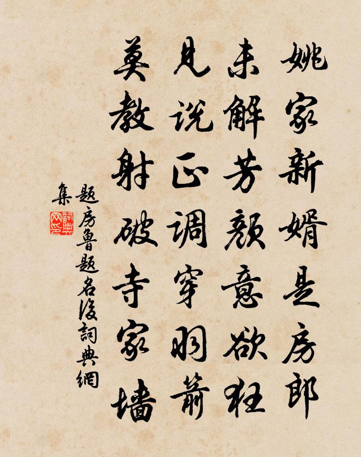 姚家新婿是房郎,未解芳顏意欲狂。見說正調穿羽箭,莫教射破寺家牆。