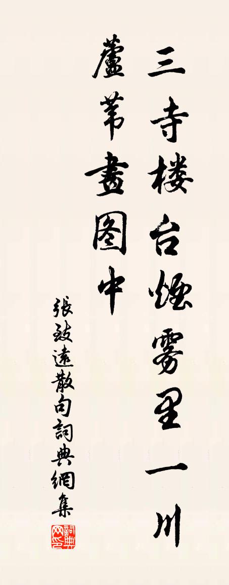詩詞名句歷史字典書法欣賞書法字典國語詞典說文解字康熙字典古漢語字典標 題 作 者 詩 句 句作者:張致遠 朝代:宋代句原文三寺樓台煙霧裡,一川蘆葦畫圖中。詩詞問答問:句的作者是誰?答:張致遠問:句寫於哪個朝代?答:宋代張致遠句書法欣賞句書法作品詩詞推薦次韻周邠蘇軾〔宋代〕南遷欲舉力田科,三徑初成樂事多。豈意殘年踏朝市,有如疲馬畏陵坡。羨君同甲心方壯,笑我無聊鬢已皤。何日旅次寄賈島兼簡無可上人馬戴〔唐代〕相思邊草長,回望水連空。雁過當行次,蟬鳴復客中。壯年看即改,羸病計多同。倘宿林中寺,深憑問遠公。冬至三首張耒〔宋代〕昨夜新霜落,淮南十月初。寒雲風后白,高木雨來疏。功業嗟謀拙,星霜逼歲余。子云真拙者,寂寞為玄書。句趙師民〔宋代〕委地露花啼曉恨,拂提煙柳弄春容。庵中睡起五頌寄海印長老韓維〔宋代〕火衰水劣病餘身,未散虛空一聚塵。更欲強招年少客,折花同賞夢中春。又平律一首梅堯臣〔宋代〕漢家天下將,廟古像公圭。百戰自忘楚,一時空王齊。鄉人奏簫鼓,舟子賽豚雞。不改寒潮水,朝平暮復低。和止泓姜秦祠韻胡仲弓〔宋代〕九日山頭兩徑深,不同出處卻同心。喚回浮世夢中夢,來向先生吟處吟。別駕堂空遺影在,隱君亭破野藤侵。古今記夢王安石〔宋代〕月入千江體不分,道人非復世間人。鍾山南北安禪地,香火他時共兩身。和朱元晦韻張栻〔宋代〕一見瓊山眼為青,馬蹄不覺渡沙汀。如今誰是王摩詰,為寫清新入畫屏。已亥雜詩 34龔自珍〔清代〕猛龍當年入海初,婆娑曾否有倉佉。祇今曠劫重生後,尚識人間七體書。史賢良入蜀有錦江詩卷陳誼甚高戴復古〔宋代〕學道世情薄,論交誼氣深。謾懷三獻玉,肯愛四知金。萬里銅梁道,千篇錦水吟。一芹供匕筯,聊寓野人心。池上雙鳧二首吳融〔唐代〕碧池悠漾小鳧雛,兩兩依依只自娛。釣艇忽移還散去,寒鴟有意即相呼。可憐翡翠歸雲髻,莫羨鴛鴦入畫圖。幸是館中春值偶題王禹偁〔宋代〕御柳差差拂禁牆,菲才何事直仙鄉。坐聞雞唱皇宮近,睡枕魚須白日長。簾掛蘚庭微雨霽,研添桐井落花香。春風九日作強至〔宋代〕九日登臨雙闕邊,三秋感慨一尊前。黃花若解憐多病,白髮應嗟老去年。憶昨忽叨門下召,此辰方醉侍中筵。追歡閒遊白居易〔唐代〕欲笑隨情酒逐身,此身雖老未辜春。春來點檢閒遊數,猶自多於年少人。頌古十八首釋師一〔宋代〕一著機先用得親,可憐窮子眼無筋。須知八 * 書處,前箭猶輕後箭深。寧宗朝享三十五首真宗〔宋代〕藝祖有孫,聰睿神武。紹興受禪,歸尊於父。行導襲爵,百度修舉。聖德日孝,光於千古。梅兩絕洪咨夔〔宋代〕風霜搖落都廬盡,一點春回造化家。萬物成終又成始,須將艮體看梅花。久雨小霽,東園行散楊萬里〔宋代〕雨寒兩月勒春遲,初喜雲間漏霽暉。道是攀花無雨點,忽然放手濺人衣。僧房薜荔陳允平〔宋代〕寸草曾收藥籠功,誰移野色近禪翁。甘同木石拋閒地,恥附松蘿上碧空。旋長織枝宜雨綠,未刪宿葉待霜紅。為衣名句推薦紫塞門孤,金河月冷,恨誰訴?朱彝尊《長亭怨慢·雁》 天涯海角悲涼地,記得當年全盛時。趙鼎《鷓鴣天·建康上元作》 統豺虎,御邊幅,號令明,軍威肅。宋江《滿江紅·喜遇重陽》 山致其高而雲雨起焉,水致其深而蛟龍生焉,君子致其道而德澤流焉。文子《文子·卷六·上德》 善者不辯,辯者不善。老子《老子·德經·第八十一章》 獸爐沉水煙,翠沼殘花片。一行寫入相思傳。張可久《塞鴻秋·春情》 芳樹籠秦棧,春流繞蜀城。李白《送友人入蜀》 誰見汀洲上,相思愁白蘋。劉長卿《餞別王十一南遊》 半夜呼兒趁曉耕,羸牛無力漸艱行。顏仁郁《農家》 年少萬兜鍪,坐斷東南戰未休。辛棄疾《南鄉子·登京口北固亭有懷》