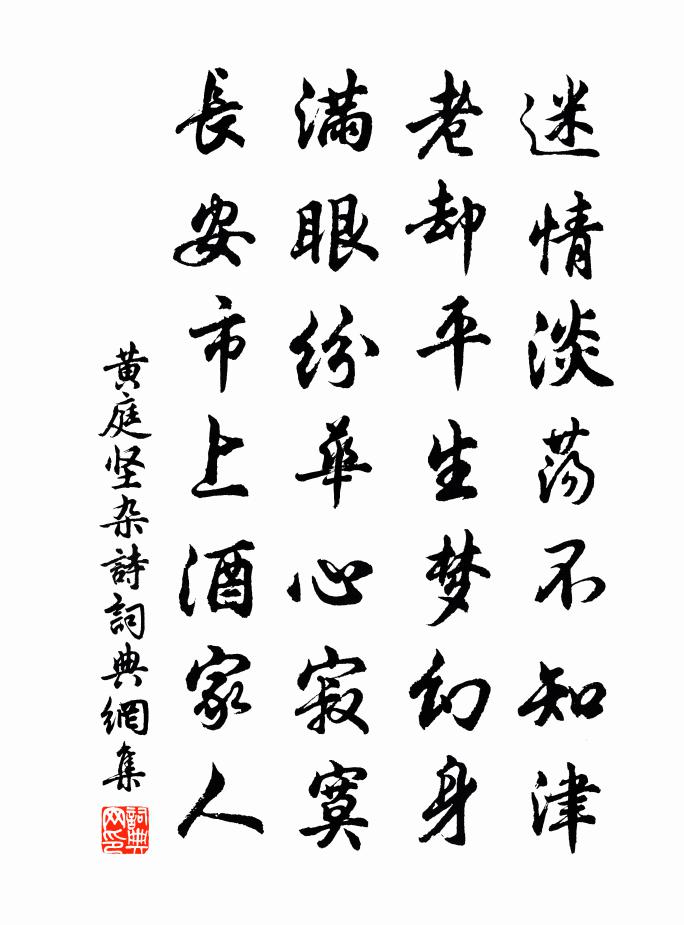 詩詞名句歷史字典書法欣賞書法字典國語詞典說文解字康熙字典古漢語字典標 題 作 者 詩 句 雜詩作者:黃庭堅 朝代:宋代雜詩原文迷1/1情淡盪不知津,老卻平生夢幻身。滿眼紛華心寂寞,長安市上酒家人。詩詞問答問:雜詩的作者是誰?答:黃庭堅問:雜詩寫於哪個朝代?答:宋代問:黃庭堅的名句有哪些?答:黃庭堅名句大全黃庭堅雜詩書法欣賞雜詩書法作品詩詞推薦清平樂 車廄道中 題楊補之施篷墨梅,卷中他宋褧〔元代〕青松烏柏。寒日來車廄。滿目山明仍水秀。忍聽玉驄馳驟。畫橋掩映山莊。酒旗搖曳林塘。好在鶯湖春色,笑人不次韻杜孟傳送歸剡陳著〔宋代〕天空地闊本無言,兔走烏飛自做年。老景光陰炊黍外,客窗風雨釀梅前。事隨笑去戶門福,詩為別來朋友賢。河水紹興祀皇地祗十五首佚名〔宋代〕禮有祈報,國惟典常。籩豆豐潔,降升齊莊。備物致志,式計累觴。昭格來享,自天降康。賀文潛陳師道〔宋代〕飛騰無那高詹事,犇軼難甘杜拾遺。釋梵不為寧顧計,公侯有命郤隨宜。且留陳跡來韓愈,不用逢人說項斯。富貴春晚送瑕丘田少府還任,因寄洛中鏡上人蘇頲〔唐代〕聞道還沂上,因聲寄洛濱。別時花欲盡,歸處酒應春。聚散同行客,悲歡屬故人。少年追樂地,遙贈一沾巾。漢宮春(老人慶七十)洪咨夔〔宋代〕南極仙翁,占太微元蓋,洞府為家。身騎若木倒景,手弄青霞。芙蓉飛旆,映一川、新綠平沙。好與問,東風結子偈頌一百五十首釋心月〔宋代〕禪禪萬萬千,眉插鬢,耳垂肩。千花影里,百草頭顛。或時虛空里釘橛,或時旱地上生蓮,引得寒山子笑掀天。吟玫瑰唐彥謙〔唐代〕麝炷騰清燎,鮫紗覆綠蒙。宮妝臨曉日,錦段落東風。無力春煙里,多愁暮雨中。不知何事意,深淺兩般紅。次韻不擾堂陳造〔宋代〕取民狼走羊,勝之楚克庸。孰知召初,已賦大小東。賢侯守此道,力若拔山雄。深堂玩閴寂,翠影環蒙籠。泛應得和屯田陳丈寄唐休次韻李覯〔宋代〕白屋從來未有官,一名須作佛名看。彥倫北谷重歸去,安石東山足舊歡。常調幾時趨鳳闕,湛恩唯待立雞竿。胸中偈頌九十三首釋梵琮〔宋代〕詩中有禪,東湖湖上浪兆天,一葉扁舟破曉煙。禪中有詩,手把烏藤出門去,落花流水不相知。禪與詩何所為斷,別趙丞何文季〔宋代〕花縣平分月,冰壺不受塵。圓機皆中理,禮愛獨親仁。晚菊長留節,寒梅自作春。無家可歸去,須有築台人。挽程孺人劉克莊〔宋代〕七誡尤純備,三從總吉祥。良人今綺季,美子古黃香。花引歸西竺,萱疑在北堂。恨余彤管拙,哀誄不能揚。中秋夜八絕蘇轍〔宋代〕浮光看不定,重露試還無。影翻狂舞客,明誤已棲烏。贈知命陳師道〔宋代〕黑頭居士元方弟,不肯作公稱法嗣。外人怪笑那得知,他日靈山親授記。學詩初學杜少陵,學書不學王右軍。黃塵臂閣自砭鄭清之〔宋代〕雲長鑿骨未為奇,斷臂亭亭對祖師。萬法從心當自省,個別冷暖有魚和。十月過鳳山舟回入項王祠用前韻周文璞〔宋代〕墜葉濃於染,孤花淨似霜。溪山如有待,朱粉玄施妝。勝境如天上,雄鳴自帝旁。工陳白玉琯,人坐紫金床。古兕西江月侯善淵〔元代〕不在瞻星禮月,何須誦戒看經。今朝與汝付叮嚀。生死須憑性命。道啟遍知無上,神通法界圓明。不勞作用自功成燈夕寄獻內翰虢略公李宗諤〔宋代〕東城南陌盡遊人,陌上香車起暗塵。歷歷星榆光奪晝,煌煌火樹艷爭春。章溝五鼓催行樂,衛尉千廬罷徼巡。應念洞庭湖孫應時〔宋代〕明湖綱宇宙,春思滿樓台。沙鳥一行去,風帆千里來。平生眼今飽,落日首重回。會趁江山約,還愁白髮催。名句推薦碧野朱橋當日事,人不見,水空流。秦觀《江城子·西城楊柳弄春柔》 瞻彼洛城郭,微子為哀傷。曹操《薤露行》 願君多採擷,此物最相思。王維《相思》 況是清明好天氣,不妨游衍莫忘歸。程顥《郊行即事》 泰山不要欺毫末,顏子無心羨老彭。白居易《放言五首·其五》 明眸皓齒誰復見,只有丹青余淚痕。蘇軾《虢國夫人夜遊圖》 雲鬟綠鬢罷梳結,愁如回飆亂白雪。李白《久別離》 威宜自嚴而寬,先寬後嚴者人怨其酷。洪應明《菜根譚·概論》 姑蘇城外一茅屋,萬樹梅花月滿天。唐寅《把酒對月歌》 竹深樹密蟲鳴處,時有微涼不是風。楊萬里《夏夜追涼》