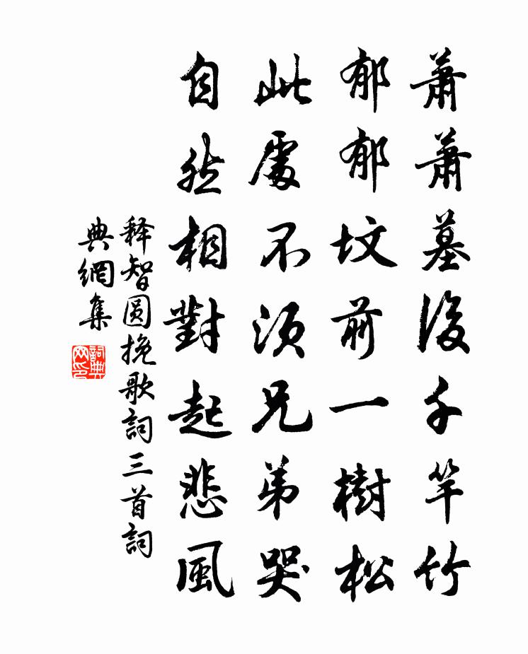 詩詞名句歷史字典書法欣賞書法字典國語詞典說文解字康熙字典古漢語字典標 題 作 者 詩 句 輓歌詞三首作者:釋智圓 朝代:宋代輓歌詞三首原文蕭蕭墓後千竿竹,鬱郁墳前一樹松。此處不須兄弟哭,自然相對起悲風。詩詞問答問:輓歌詞三首的作者是誰?答:釋智圓問:輓歌詞三首寫於哪個朝代?答:宋代釋智圓輓歌詞三首書法欣賞輓歌詞三首書法作品詩詞推薦六言雜興陸游〔宋代〕失馬詎知非福,亡羊不妨補牢。病里正須周易,醉中卻要離騷。又題天寶宮人〔唐代〕一葉題詩出禁城,誰人酬和獨含情。自嗟不及波中葉,蕩漾乘春取次行。到家作錢載〔清代〕久矣東牆綠萼梅,西牆雙桂一風摧。兒時我母教兒地,母若知兒望母來。三十四年何限罪,百千萬念不如灰。曝簷送張職方出守高安李大臨〔宋代〕白首為郎舍,清朝剖使符。一麾榮父子,千里接江湖。初冬陸游〔宋代〕已罷彈冠欲掛冠,一庵天遣養衰殘。雨荒園菊枝枝瘦,霜染江楓葉葉丹。羹釜帶鱗烹白小,蓬門和蔓系黃團。夕陽登海陵城宋伯仁〔宋代〕淮楚年年一番秋,西風慣識古譙樓。金湯城壁休清野,玉帳英雄未白頭。霜草萬家人冷落,凍雲千疊雁綢繆。中原出城三首晁補之〔宋代〕桃欲呈紅柳弄陰,麥田青已沒鞋深。春堤細雨籃輿濕,婆餅焦聲在竹林。和單令簡園梨花四絕胡寅〔宋代〕梅花如夢李成塵,卻伴酴醿過晚春。未要烘晴千樹白,且看帶雨一枝新。登寶曆寺閣陳陶〔唐代〕金碧高層世界空,憑蜺長嘯八蠻風。橫軒水壯蛟龍府,倚棟星開牛斗宮。三楚故墟殘景北,六朝荒苑斷山東。不堪送易從師還金華林逋〔宋代〕吟卷田衣歲向殘,孤舟夜泊大江寒。前岩百本長松色,及早回來帶雪看。聽曹剛彈琵琶薛逢〔唐代〕禁曲新翻下玉都,四弦掁觸五音殊。不知天上彈多少,金鳳銜花尾半無。早發宜陵即事羅鄴〔唐代〕霜白山村月落時,一聲雞後又登岐。居人猶自掩關在,行客已愁驅馬遲。身事不堪空感激,鬢毛看著欲凋衰。青萍寄潮州於公九流佚名〔宋代〕扁舟如葉路東西,一片灘聲下惡谿。當日亭台舊時客,相逢莫惜醉如泥。走筆送張伯起強至〔宋代〕男兒剛腸逾古鐵,每到傷離猶暫折。離緒不啻亂繭絲,才攪衷腸便成結。憶昨送子秋風前,薄酒三行歌數闋。我歌泐潭雲庵偶作釋正覺〔宋代〕曦色雲庵半堵紅,霜林初暖鳥啼風。下知人在蘿窗里,瞑目爐薰百慮空。病告作寄武平湖內翰宋祁〔宋代〕病擁綈袍雪領垂,當關重疊報晨暉。夷吾畏事將成吃,蘧瑗增年轉悟非。宦路風波頻歲劇,故山薇蕨每春肥。餘生陌上二首董嗣杲〔宋代〕恨鵑啼桑顛,醜婦淚如洗。手中捻銀絲,階頭博紅米。滿江紅 己巳二月二十二日游北門,有感陸文圭〔元代〕試檢春光,都不在、槿籬茅屋。荒城外、牯眠衰草,鴉啼枯木。黃染菜花無意緒,青描柳葉渾粗俗。憶繁華、不似送通判學士歸南國釋重顯〔宋代〕斾擁帆開照德星,天風高興國風清。武夷仙仗知回也,各下禪雲到地迎。題歸宗寺魏了翁〔宋代〕憒憒深源與會稽,識時惟有一羲之。千年誤作能書看,謾說鵝池與墨池。名句推薦它山之石,可以攻玉。佚名《鶴鳴》 乍聽得、鴉啼鶯弄,惹起新愁無限。呂渭老《薄倖·青樓春晚》 奴為出來難,教君恣意憐。李煜《菩薩蠻·花明月暗籠輕霧》 大曰逝,逝曰遠,遠曰反。老子《老子·道經·第二十五章》 晚鴉飛去,一枝花影送黃昏夏完淳《婆羅門引·春盡夜》 夕陽倒影射疏林,江邊一帶芙蓉老。陳霆《踏莎行·晚景》 歸雲一去無蹤跡,何處是前期?柳永《少年游·長安古道馬遲遲》 日月忽其不淹兮,春與秋其代序。屈原《離騷》 月華如練,長是人千里。范仲淹《御街行·秋日懷舊》 月明船笛參差起,風定池蓮自在香。秦觀《納涼》