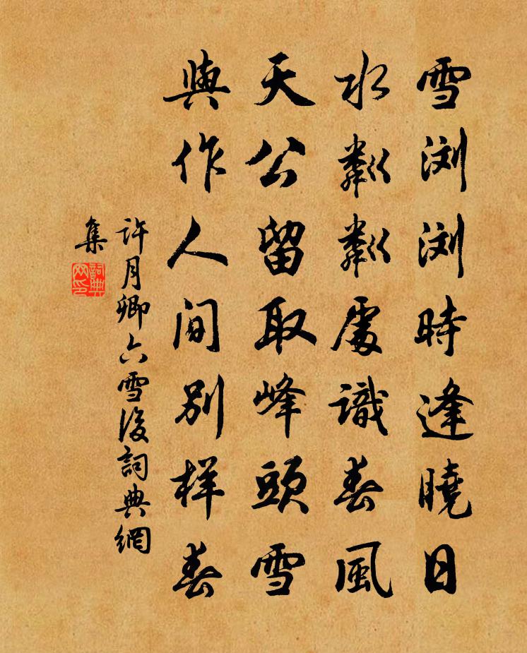 詩詞名句歷史字典書法欣賞書法字典國語詞典說文解字康熙字典古漢語字典標 題 作 者 詩 句 雪後作者:許月卿六 朝代:宋代雪後原文雪瀏瀏時逢曉日,水粼粼處識春風。天公留取峰頭雪,與作人間別樣春。詩詞問答問:雪後的作者是誰?答:許月卿六問:雪後寫於哪個朝代?答:宋代許月卿六雪後書法欣賞雪後書法作品詩詞推薦鶯張明中〔宋代〕柳接飛來影,花翻過後枝。金衣搖日色,簧口弄晴絲。遊子錯回首,何人澀小詞。楊園好風景,莫與負佳期。鞏路感懷呂溫〔唐代〕馬嘶白日暮,劍鳴秋氣來。我心浩無際,河上空徘徊。此君室方蒙仲〔宋代〕先生嘯諾余,嘗欲訪青士。門生可舉輿,不必命兒子。一翦梅(醉中)韓淲〔宋代〕醉倒城中不過溪。溪外無塵,惟掩柴扉。水浮橋漾翠煙霏。一片閒情,能幾人知。留飲君家絮帽敧。爆竹聲中,萬送別史友六首敖陶孫〔宋代〕中興元老堂堂,諸孫玉質金相。對殖毋忘嘉樹,愛思猶及甘棠。舍人崔公輓詞二首黃定〔宋代〕昭代培英俊,皇天獨不仁。儒林埋鸑鷟,翰苑失麒麟。青史空遺字,黃麻半掩塵。惟余忠藎語,分付義方人。紈扇辭楊維楨〔元代〕團圓合歡扇,比似月嬋娟。嬋娟有時缺,我扇豈衣圓?秋風落梧葉,我扇同棄捐。不得如秋葉,吹墮在君前。送客陳子昂〔唐代〕故人洞庭去,楊柳春風生。相送河洲晚,蒼茫別思盈。白蘋已堪把,綠芷復含榮。江南多桂樹,歸客贈生平。玉樓春吳文英〔宋代〕闌乾獨倚天涯客。心影暗雕風葉寂。千山秋入雨中青,一雁暮隨雲去急。霜花強弄春顏色。相吊年光澆大白。海煙春庭文同〔宋代〕春院陰陰翠靄低,春庭寂寂曉光迷。花間蜂去抱黃粉,苔上燕來銜綠泥。兩行高梧初蔭合,一翻新草恰生齊。微禽別建安陸游〔宋代〕楚澤吳山已慣行,武夷從昔但聞名。北岩小寺長汀驛,且喜游山第一程。句滕邁〔唐代〕陶令門前罥接z5,亞夫營里拂朱旗。(《柳》,見《雲溪友議》)酬燕公出湖見寄趙冬曦〔唐代〕綸綍有成命,旌麾不可攀。湘川朝目斷,荊闕夕波還。果枉東瞻唱,興言夕放閒。攜琴仙洞中,置酒灉湖上。芳景上古之什補亡訓傳十三章陵霜之華一章顧況〔唐代〕(陵霜之華,傷不實也。)陵霜之華,我心憂嗟。陰之勝矣,而陽不加。坱軋陶鈞,乃帝乃神,乃舒乃屯。烈烈嚴水調歌頭(次李伯紀韻趣開東閣)李彌遜〔宋代〕安石寓絲竹,方朔雜詼諧。昂霄氣概,古來無地可容才。不見騎鯨仙伯,唾手功名事了,猿鶴與同儕。有意謝軒冕道中即事姚勉〔宋代〕橘累金印楓錦衣,夾路相照生光輝。我非買臣與季子,但有菊佩芳菲菲。瑞麥陳宓〔宋代〕維此瑞麥,十有三莖。伊誰所樹,中夏以生。豐年之慶,聖治之臻。我作此贊,播之頌聲。海棠張冕〔宋代〕海棠栽植遍塵寰,未必成都欲詠難。山木瓜開千顆顆,水林檎發一攢攢。初疑紅豆爭頭綴,忽覺燕脂眾手丸。西蜀複次韻四首陳造〔宋代〕昔上瞿塘灩預堆,盤渦如井放船開。山行歡喜今非錯,備見梢濆撆漩來。僕射來示有三春向晚四者難並之說誠哉是言輒白居易〔唐代〕三春今向晚,四者昔難並。借問低眉坐,何如攜手行。 ——白居易舊遊多過隙,新宴且尋盟。鸚鵡林須樂,麒麟名句推薦小來思報國,不是愛封侯。岑參《送人赴安西》 傷心橋下春波綠,曾是驚鴻照影來。陸游《沈園二首》 風雨端陽生晦冥,汨羅無處吊英靈。貝瓊《已酉端午》 三冬暫就儒生學,千耦還從父老耕。陸游《觀村童戲溪上》 薊城通漠北,萬里別吾鄉。李頎《古塞下曲》 是數人之齒,而以為富。墨子《墨子·48章 公孟》 醉後不知天在水,滿船清夢壓星河。唐珙《題龍陽縣青草湖》 一曲新詞酒一杯,去年天氣舊亭台。晏殊《浣溪沙·一曲新詞酒一杯》 丹漆不文,白玉不雕佚名《孔子家語·好生》 假金方用真金鍍,若是真金不鍍金。李紳《答章孝標》