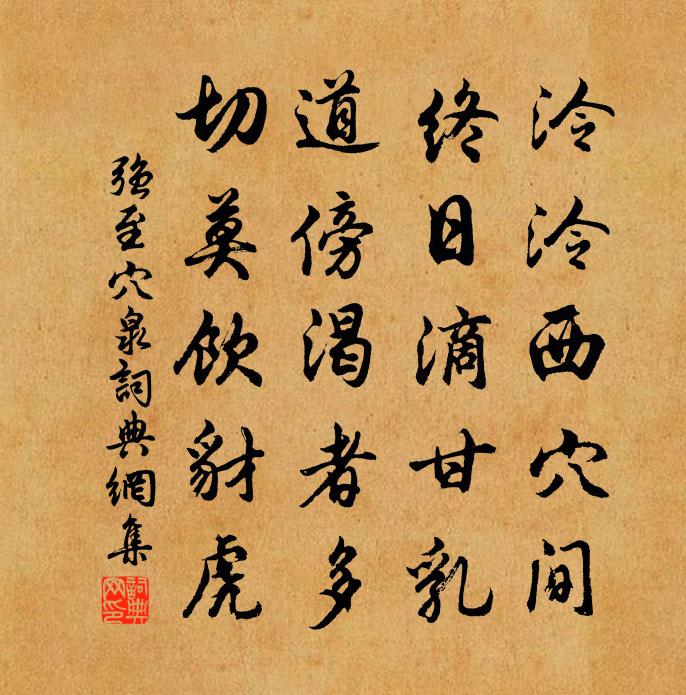 詩詞名句歷史字典書法欣賞書法字典國語詞典說文解字康熙字典古漢語字典標 題 作 者 詩 句 穴泉作者:強至 朝代:宋代穴泉原文泠泠西穴間,終日滴甘乳。道傍渴者多,切莫飲豺虎。詩詞問答問:穴泉的作者是誰?答:強至問:穴泉寫於哪個朝代?答:宋代強至穴泉書法欣賞穴泉書法作品詩詞推薦句潘閬〔宋代〕出秋霜,價錢可,贏得撥灰兼弄火,暢殺我。贈郭功甫二絕袁陟〔宋代〕從來多病王僧佑,自小能文謝惠連。各厭塵勞思物外,莫辭攜手訪林泉。立春帖子皇后閣周必大〔宋代〕何事新春勝舊春,陰陽順序國安榮。坤元永贊乾元大,月色常修日色新。頌古二十五首釋崇岳〔宋代〕閃電光中賓主分,虛空背上立網宗。祖師活計只如此,後代兒孫掃地空。題烏程簿廳浮玉亭七首袁說友〔宋代〕人言苕霅下千崖,一水中發兩派開。但怪玉浮浮似磬,不知原自泗濱來。登胥山贈長老淨曇二首張嵲〔宋代〕詩律遙追粲可流,安禪總不礙聞修。勸君著意搜新句,準擬他年有惠休。再次韻三首陳造〔宋代〕連朝飛雨暗群山,局步修廊廣霤間。會作閒人留十日,當令屐齒遍苔班。春早落英唐彥謙〔唐代〕紛紛從此見花殘,轉覺長繩系日難。樓上有愁春不淺,小桃風雪憑闌乾。登上竺興福寺新閣五首方回〔宋代〕乳竇峰前路不窮,穿林逾嶺浙江通。紫陽山雨釣台月,消得潮頭幾信風。秋日送僧志幽歸山寺 [一作秦系詩]馬戴〔唐代〕禪室繩床在翠微,松間荷笠一僧歸。磬聲寂歷宜秋夜,手冷燈前自衲衣。游道岩觀有引鄧希恕〔宋代〕石敲新火煮雲腴,細講濂溪太極圖。此去不知千載後,有人來講此圖無。答陳傳道五首之三賀鑄〔宋代〕遊宦幾人達,不知強健歸。未容夸晝錦,幾見化緇衣。沁園春(雙溪狎鷗)盧祖皋〔宋代〕幾葉凋楓,半篙寒日,傍橋繫船。愛洞門深鎖,人間福地,雙溪分占,天上星躔。破帽敧寒,短鞭敲月,此地經行子革對靈王左丘明〔先秦〕楚子狩於州來,次於潁尾,使盪侯、潘子、司馬督、囂尹午、陵尹喜帥師圍徐以懼吳。楚子次於乾溪,以為之援。九里松董嗣杲〔宋代〕開元刺史擅清風,九日親栽夾道松。屋頂自生濤浪勢,根頭誰覓茯苓蹤。行春橋掩雲千態,一字門封翠幾重。人訝【雙調】大德歌 四關漢卿〔元代〕謝家村,賞芳春,疑怪他桃花冷笑人。著誰傳芳信,強題詩也斷魂。花陰下等待無人問,則聽得黃犬吠柴門。書事十絕曾惇〔宋代〕田父今年作社頻,邊頭聞見一番新。官軍不斫人家樹,各自持錢去買薪。赴許州留別洛中親故耿湋〔唐代〕淳風今變俗,末學誤為文。倖免投湘浦,那辭近汝墳。山遮魏闕路,日隱洛陽雲。誰念聯翩翼,煙中獨失群。賀新郎劉子寰〔宋代〕柱杖毛凌高絕。毛望千山隱毛隱,波瀾毛動搖天末。下有白雲平遠壑,湧起潮頭噴雪。浸絕島、孤峰出沒。赤縣神挽徐居厚寺簿孫應時〔宋代〕海內標元禮,毫端跨子長。學如開武庫,材何壯明堂。憂患雙蓬鬢,功名一郡章。汗青須好傳,公死未應亡。名句推薦細影將圓質,人間幾處看。薛濤《月》 見一葉落,而知歲之將暮劉安及其門客《淮南子·說山訓》 濃似春雲淡似煙,參差綠到大江邊。紀昀《富春至嚴陵山水甚佳》 朝作輕寒暮作陰,愁中不覺已春深。屈大均《壬戌清明作》 橫槊題詩,登樓作賦,萬事空中雪文天祥《酹江月·和友驛中言別》 中秋誰與共孤光。把盞悽然北望。蘇軾《西江月·世事一場大夢》 獨出前門望野田,月明蕎麥花如雪。白居易《村夜》 行得春風,指望夏雨馮夢龍《警世通言·卷二十五》 王者以民為天,而民以食為天。班固《漢書·傳·酈陸朱劉叔孫傳》 親愛我,孝何難。親憎我,孝方賢。李毓秀《弟子規·入則孝》