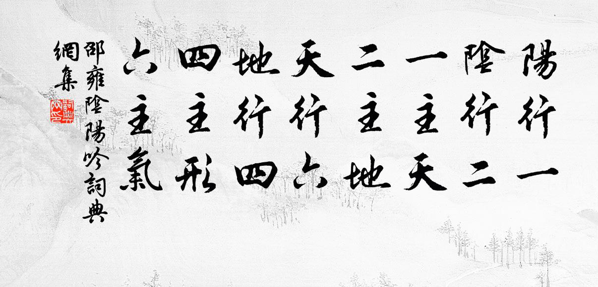 詩詞名句歷史字典書法欣賞書法字典國語詞典說文解字康熙字典古漢語字典標 題 作 者 詩 句 陰陽吟作者:邵雍 朝代:宋代陰陽吟原文陽行一,陰行二。一主天,二主地。天行六,地行四。四主形,六主氣。詩詞問答問:陰陽吟的作者是誰?答:邵雍問:陰陽吟寫於哪個朝代?答:宋代邵雍陰陽吟書法欣賞陰陽吟書法作品詩詞推薦游金庭觀葉參光〔宋代〕迢遞人間入路遙,忽窺仙闋絕塵囂。事尋奇異彼燕石,文載興崇是晉朝。攻藝高樓無笑碩,養鵝靈沼識區蕘。英雄題落星寺一首王阮〔宋代〕島石是處有,星辰曾霣無。莊嚴成淨土,怪誕出浮屠。蜃氣樓穿海,龍堆沙擁湖。盡除金碧像,吾欲舍吾徒。題梅仙館孟賓於〔唐代〕仙界路遙雲縹緲,古壇風冷葉蕭騷。後來豈合言淹滯,一尉升騰道最高。和黃宰招飲洪咨夔〔宋代〕大都春色三分耳,能得眉頭幾度開。見說東家酒初熟,不論今雨也須來。挽柳齋陳公四首劉克莊〔宋代〕受學龍圖老,於今五十春。常為驚坐客,不比掃門人。薦我煩金口,酬公盍漆身。自憐雙鬢禿,扶憊演恩新。酬令狐相公見寄劉禹錫〔唐代〕群玉山頭住四年,每聞笙鶴看諸仙。何時得把浮丘袖,白日將升第九天。和彥逢弟簡相山古上人二首王之道〔宋代〕蒿艾深迷古徑苔,荒涼菊塢與松栽。稻田正似人無幾,賴有高僧伴我來。夜別韋司士高適〔唐代〕高館張燈酒復清,夜鍾殘月雁歸聲。只言啼鳥堪求侶,無那春風欲送行。黃河曲里沙為岸,白馬津邊柳向城。莫怨金陵雜興二百首蘇泂〔宋代〕一派嬌波入翠溟,垂楊只似古來青。未能草草歸家去,怕上勞勞送別亭。又作偈釋宗杲〔宋代〕大根大器大力量,荷擔大事不尋常。一毛頭上通訊息,遍界明明不覆藏。病後夏初雜書近況十首方回〔宋代〕初掃蠶今欲繭時,無朝無暮雨垂垂。漁家長價蓑衣貴,種戶流涎麥飯遲。跬步過從難跋步,等閒脫著系安危。肉芝題覺心居士轉物軒釋大觀〔宋代〕兩沼灎寒碧,一堂納寬閒。高柳逢春新翠展,寒梅齊雪清香繁。好本栽培常爛熳,四序芳馨看互換。雜華境遍剎塵次友人韻蘇泂〔宋代〕先生休恨易俱東,弟子方欣色笑同。早晚朝廷議恢復,請看裴度在軍中。贈彭花翁牡丹障姚勉〔宋代〕洛之花圖歐公詩,驚怪天巧呈新枝。自言當時記者數十種,姚魏後有潛溪緋。蜀之花圖景仁句,香雪蕊金藏不露。乘興釋文珦〔宋代〕乘興不拘程,悠悠任意行。小溪橫木渡,何寺遠鐘聲。野茶抽心起,山花照眼明。幽禽亦堪愛,多解自呼名。三代門周公周曇〔唐代〕文武傳芳百代基,幾多賢哲守成規。仍聞吐握延儒素,猶恐民疵未盡知。悶坐趙蕃〔宋代〕天氣欲晴還欲陰,強扶頭起更岑岑。睡魔欲遣茶料理,政恐蔬腸不易禁。王可交升仙台四首黃庚〔宋代〕我來閒弔古,觸景覺淒涼。踏石雲侵履,個蘿露濕裳。森森林不茂,馥馥野花香。寺近尋僧話,談禪坐竹床。句龔鼎臣〔宋代〕家經武夷住,事與會稽鄰。感秋扇蘇轍〔宋代〕團扇經秋似敗荷,丹青彷佛舊松蘿。一時用舍非吾事,舉世炎涼奈爾何。漢代誰令收汲黯,趙人猶欲用廉頗。心知名句推薦少年心事當拿雲,誰念幽寒坐嗚呃。李賀《致酒行》 古之史也辯道,今之史也耀文。王通《中說·卷三·事君篇》 故目者,心之浮也;言者,行之指也;作於中,則播於外也。戴聖《大戴禮記·曾子立事第四十九》 多少天涯未歸客,盡借籬落看秋風。唐寅《菊花》 誰料蘇卿老歸國,茂陵松柏雨蕭蕭。李商隱《茂陵》 楝花飄砌。蔌蔌清香細。謝逸《千秋歲·詠夏景》 四牡何時入,吾君憶履聲。張九齡《奉和聖制送尚書燕國公赴朔方》 夫以奢侈之君,御好淫僻之民,欲國無亂,不可得也。墨子《墨子·06章 辭過》 浪花有意千里雪,桃花無言一隊春。李煜《漁父·浪花有意千里雪》 窮且益堅,不墜青雲之志。王勃《滕王閣序》