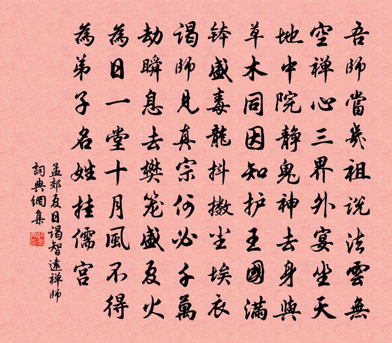 吾師當幾祖,說法雲無空。禪心三界外,宴坐天地中。