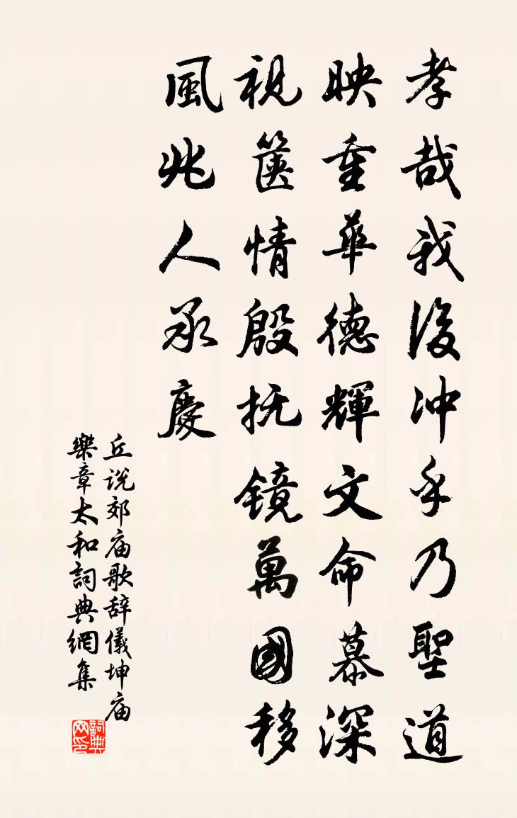 詩詞名句歷史字典書法欣賞書法字典國語詞典說文解字康熙字典古漢語字典標 題 作 者 詩 句 郊廟歌辭。儀坤廟樂章。太和作者:丘說 朝代:唐代原文孝哉我後,沖乎乃聖。道映重華,德輝文命。慕深視篋,情殷撫鏡。萬國移風,兆人承慶。詩詞問答問:《郊廟歌辭。儀坤廟樂章。太和》的作者是誰?答:丘說問:該詩寫於哪個朝代?答:唐代問:該詩是什麼體裁?答:樂府書法欣賞郊廟歌辭。儀坤廟樂章。太和書法作品注釋全唐詩:卷14_21全唐詩:卷94_24詩詞推薦送劉五司馬赴任硤州兼寄崔使君白居易〔唐代〕位下才高多怨天,劉兄道勝獨恬然。貧於楊子兩三倍,老過榮公六七年。筆硯莫拋留壓案,簞瓢從陋也銷錢。郡丞李度支輓詞樓鑰〔宋代〕忽作堂堂去,門前爵已羅。夢隨彈指斷,事向蓋棺多。心繫六州鐵,身傾千丈坡。喑喑晝夜哭,柰此敬姜何。憶友人虞儔〔宋代〕紫鸞棲棘乳溪邊,不羨群飛漫刺天。一見交情真我輩,更將詩句洗塵緣。寧唯刮目須三日,恨不從公蚤十年。只恐青城山楊攄〔宋代〕薄宦驅人太不情,好懷誰是與山親。胡為又作折腰去,三十六峰應笑人。水石胡宏〔宋代〕水石平生性所便,栽花種柳亦天然。春風花發遊人見,秋月雲收照我員。玩意隴雲情自逸,放懷天理道我偏。坐消訴衷情張掄〔宋代〕閒中一盞瓮頭春。養氣又頤神。莫教大段沈醉,只好帶微醺。心自適,體還淳。樂吾真。此懷何似,兀兀陶陶,太試院贈三同官陳造〔宋代〕果飣茶甌意未闌,獨慚衰鬢映朱顏。聚頭長作三更語,屈指惟餘兩日閒。食葉蠶聲行入聽,探珠驪頷不應慳。預憐攝事十三首佚名〔宋代〕淳清育物,瑞木成文。元氣陶治,非煙人氛。玄貺昭格,至和所熏。登歌裸獻,肸鄉如聞。登蜀阜錢時〔宋代〕滿林春鳥語高低,新綠陰陰分外宜。山隱此時無一事,諸兒齊誦老夫詩。頌古一百首釋智愚〔宋代〕不設陷井,不揮雪刃一箭穿楊,神目不瞬。翻思昔日李將軍,射虎之機猶是鈍。八月十五夜月二首曾幾〔宋代〕玉露金波不可孤,相瞻今夕定何如。氛埃未淨雨湔洗,陰翳小留風掃除。丹桂看來元了了,白榆種得許疏疏。一杯庵中晨起書觸目陸游〔宋代〕初歸誓墓老鄉邦,手結茆茨近小江。北渚露沾行藥屐,東廂日射勘書窗。孤忠自信丹心折,萬事空成雪鬢霜。長媿歲豐邵謁〔唐代〕皇天降豐年,本憂貧士食。貧士無良疇,安能得稼穡。工傭輸富家,日落長嘆息。為供豪者糧,役盡匹夫力。天地偈頌七十六首釋師範〔宋代〕只個叢林粥飯僧,濫膺徽號愧無能。臨風將底祝君壽,遙指南山千萬層。送一老住廬山歸宗樓鑰〔宋代〕廬山面目非難識,橫嶺側峰皆是真。若待出來方識破,不知何用箇中人。首夏即事與丘與權同韻作蘇頌〔宋代〕朱曦漸永煩暑添,薰風當晝飄前檐。庭幽門邃搴帷簾,景物軒豁欣窺覘。方池綠瑩波文恬,兩傍森森生葦蒹。新荷春日感與有懷芳洲徐瑞〔宋代〕老去空驚歲月遒,桑榆雖晚尚堪疏。髮霜任自桃花笑,客間雖憑燕語留。勝地有緣頻入夢,清吟無與獨登樓。故人興安乳洞陸詵〔宋代〕深沈三洞啟真都,萬乳千葩狀絕殊。馳驛方朝金闕去,滌塵來飲碧琳腴。鶯啼序(吳江長橋)黃公紹〔宋代〕銀雲卷晴縹渺,臥長龍一帶。柳絲蘸、幾族柔煙,兩市簾棟如畫。芳草岸、彎環半玉,鱗鱗曲港雙流會。看碧天連環照閣口占呈德良李處權〔宋代〕高情接巾屨,雅志在丘壑。林疏見鳥下,池靜聞魚躍。歲月已屢改,風煙只如昨。我知造物心,遺子良不薄。畏途名句推薦見人善,即思齊。縱去遠,以漸躋。李毓秀《弟子規·信》 雪似梅花,梅花似雪。似和不似都奇絕。呂本中《踏莎行·雪似梅花》 獨自上層樓,樓外青山遠。程垓《卜運算元·獨自上層樓》 懷春情不斷,猶帶相思舊子。吳文英《丁香結·夷則商秋日海棠》 此已被私慾隔斷,不是知行的本體了。王陽明《傳習錄·卷上·徐愛錄》 自損者有餘,自益者彌昏。房玄齡《晉書·列傳·第八章》 金陵津渡小山樓,一宿行人自可愁。張祜《題金陵渡》 自古聖賢盡貧賤,何況我輩孤且直!鮑照《擬行路難·其六》 無功不賞,無罪不罰。荀子《荀子·王制》 哀哀父母,生我勞瘁。佚名《蓼莪》