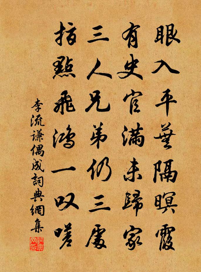 詩詞名句歷史字典書法欣賞書法字典國語詞典說文解字康熙字典古漢語字典標 題 作 者 詩 句 偶成作者:李流謙 朝代:宋代偶成原文眼入平蕪隔暝霞,有史官滿未歸家。三人兄弟仍三處,指點飛鴻一嘆嗟。詩詞問答問:偶成的作者是誰?答:李流謙問:偶成寫於哪個朝代?答:宋代李流謙偶成書法欣賞偶成書法作品詩詞推薦鷗渚亭次韻茂洪西湖三詩張鎡〔宋代〕出城猶記四年前,朝看西湖到暮煙。自有南湖相暖熱,可曾頻過六橋邊。寄題喻叔奇國傅郎中園亭二十六詠小山楊萬里〔宋代〕涌岫跳峰尺許寬,坐看雲霧起岩間。九疑荒遠巫陽險,未必真山勝假山。幽州明馬客張玉孃〔宋代〕幽州胡馬客,蓮劍寒鋒清。笑看華海靜,怒振河山傾。金鞍試風雪,千里一宵征。葦底揪羽箭,彎弓新月明。仰天投贈洪卒司令舜俞程公許〔宋代〕博陵先生天下士,圭瓚鼎彝宗廟器。駕風閶闔駐參旗,要與疲氓起憔悴。同來誰是儉府僚,一朵庚蓮吐秋水。義以過華清內廄門李商隱〔唐代〕華清別館閉黃昏,碧草悠悠內廄門。自是明時不巡幸,至今青海有龍孫。喜雪袁說友〔宋代〕玉龍方急戰寒聲,滿陣江風雪作茵。準擬豐年須造物,編排佳境付詩人。莫辭樽酒偏勞勸,更喜江梅欲鬭新。愧我詠史下賈詡陳普〔宋代〕崩奔堯後一孤兒,跖狗成群共肆欺。賈詡未設曹操日,自為漢賊已多時。舟過安仁五首楊萬里〔宋代〕恰則油窗雨點聲,霎時花嶼日華明。不須覆手仍翻手,可殺春雲沒十成。句馮道〔唐代〕朝披四襖專藏手,夜覆三衾怕露頭。牛頭偏得賜,象笏更容持。已落地花方遣掃,未經霜草莫教鋤。視草北來唐學和張仁甫李花韻馮時行〔宋代〕江頭誰家千樹李,影落清江徹江尾。風吹扁舟到花下,花間啁啾亦欣喜。瑤林成徑千步長,花光燭天天半香。恍如歲暮獨酌書事奉懷晁永寧張耒〔宋代〕天涯催晚歲,殘律去如奔。入夜北風惡,多陰寒日昏。野吹余燒燼,溪落舊沙痕。霜重飢鷹疾,田空宿雁喧。山明次韻曾存之嘯竹軒秦觀〔宋代〕翩翩曾公子,子猷定前身。嗜好準疇昔,瞭然不緇磷。寄食平準官,植竹當比鄰。朝與竹相對,暮與竹相親。安可小重山吳潛〔宋代〕溪上秋來晚更宜。夕陽西下處,碧雲堆。誰家舟子採蓮歸。雙白鷺,驚起背人飛。煙水漸淒迷。漁燈三數點,乍明奉詔止雨宿齋建隆觀宋庠〔宋代〕漢家候神館,奉詔穰沈災。解纓就齋幕,恍若躋蓬萊。雲羅絓朝舄,露掌承仙杯。眾真拱象帝,寶宇正崔嵬。爐煙上楮平山張嵲〔宋代〕層陰生萬里,歲晚嵐霧昏。終日轉盤道,那知入寒雲。忽上最高頂,劃見眾山繁。嵯峨插蒼旻,迫窄塞厚坤。俯仰金剛隨機無盡頌嘆仰流通釋印肅〔宋代〕江上數峰青,露出卷心經。明明沒個字,向道祗如今。渡江雲蔣春霖〔清代〕燕泥銜杏雨,爐薰隱篆,朱戶晝。半窗松影碎,小語分茶,日暖喚青禽。那不見、招手樓陰。 空自踏、落花歸去行香子王哲〔元代〕三鼓才分,火德行香。月初端、正照心王。紅紅赫赫,煒煒煌煌。見本真生,靈真慧,太真匡。三處均勻,一路平酹江月(和朱約山自壽曲,時壽八十四)劉辰翁〔宋代〕五朝壽俊,算生平占得、淳熙四四。三萬六千三萬了,剩有一千饒底。三百年間,和風麗日,幾個能銷此。約山山山中紅葉張嵲〔宋代〕青女炫微巧,染絳妬春工。如何青林表,忽有萬炬紅。渾疑在絕塞,斥堠傳夕烽。爛爛爍晚日,燁燁含天風。錦繡名句推薦作人無一點真懇的念頭,便成個花子,事事皆虛洪應明《菜根譚·概論》 還與去年人,共藉西湖草。蘇軾《卜運算元·感舊》 夫師,以身為正儀而貴自安者也。荀子《荀子·修身》 山光忽西落,池月漸東上。孟浩然《夏日南亭懷辛大》 二月賣新絲,五月糶新谷。聶夷中《詠田家 / 傷田家》 一張一弛,文武之道戴聖《禮記·雜記下》 童子柳陰眠正著,一牛吃過柳陰西。楊萬里《桑茶坑道中》 江山如畫,一時多少豪傑蘇軾《念奴嬌·赤壁懷古》 芄蘭之葉,童子佩韘。佚名《芄蘭》 臣聞君子樂得其志,小人樂得其事。姜子牙《六韜·文韜·文師》