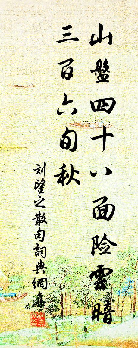 詩詞名句歷史字典書法欣賞書法字典國語詞典說文解字康熙字典古漢語字典標 題 作 者 詩 句 句作者:劉望之 朝代:宋代句原文山盤四十八面險,雲暗三百六旬秋。詩詞問答問:句的作者是誰?答:劉望之問:句寫於哪個朝代?答:宋代劉望之句書法欣賞句書法作品詩詞推薦孝宗明堂前朝獻景靈宮八首真宗〔宋代〕旨酒思柔,神具醉止。工祝既告,孝孫旋位。何以酢之,純嘏來全。燕及雲來,蕃衍無已。朱師關畫梅溪春曉圖張鎡〔宋代〕梅溪之水何清哉,萬頃玉碧天邊來。兩山拱挹各異狀,上有磅礴巨石菜落生莓苔。松蘿籠蒙共糾結,帶映萬蕊紛瑤汲清胡仲弓〔宋代〕慾波如濁流,心源如古井。不患無清泉,只惡無修綆。頌古一○一首釋子淳〔宋代〕曹溪古路綠苔生,車馬登臨已涉程。野老痿羸兼破挈,手攜玉杖夜深行。問吳宮辭陸龜蒙〔唐代〕彼吳之宮兮江之那涯,復道盤兮當高且斜。波搖疏兮霧濛箔,菡萏國兮鴛鴦家。鸞之簫兮蛟之瑟,駢筠參差兮界絲暑熱白玉蟾〔宋代〕玉友避嫌,竹奴專寵。聽官丐閒,詩勇不將。句曲山朝真詞二首送真陸龜蒙〔唐代〕縈雲鳳髻飄然解,玉鉞玄乾儼先邁。朝真弟子悄無言,再拜碧杯添沆瀣。火釒靈跳躍龍毛蓋,腦發青青赮綷綷。萬甲寅西歸江行春懷十首汪莘〔宋代〕江行二月正清新,無主桃花不戀春。老去情懷甚年少,少年未解惜芳晨。踏雲行馬鈺〔元代〕重遇重陽,重重悟道。扶風馬子何愁老。調龍引虎弄明珠,明珠出路應須早。以鈺為名,字呼玄寶。雲中子得為佳再過悟竹庭房顧逢〔宋代〕兩度客僧廬,交情密似初。墨雲膠凍硯,鬢雪落寒梳。鳴鶴聲高下,盤鷹羽疾徐。此時親老念,重讀寄來書。故秘監丹陽郡公延陵包公輓歌詞竇常〔唐代〕卓絕明時第,孤貞貴後貧。郤詵為胄子,季札是鄉人。筆下調金石,花開領搢紳。那堪歸葬日,哭渡柳楊津。正月十九日四更起讀朱文公年譜至天大明賦十方回〔宋代〕獨能有眼識延平,濂洛淵源集大成。早負性資專問學,後生豈可少先生。海棠俞桂〔宋代〕海棠裊裊弄胭脂,雨入枝頭睡正宜。最是高人有遺恨,杜陵因甚卻無詩。次韻趙去華提乾夏日雜興七首蘇泂〔宋代〕忽然鏡里一絲絲,老卻英雄不自知。夜半閒來看青史,百年有盡此身危。春日偶成程顥〔宋代〕雲淡風輕近午天,傍花隨柳過前川。時人不識余心樂,將謂偷閒學少年。絳都春陳郁〔宋代〕晴天媚曉。正禁苑乍暖,鶯聲嬌小。柳拂玉闌,花映朱簾韶光早。熙朝多暇舒長晝。慶聖主、新頒飛詔。貽謀恩重感中原舊事戲作陸游〔宋代〕蜂兒園裹香塵細,燕子樓中寶瑟斜。惟有天知太平事,乞傾東海洗胡沙。滿江紅 授(原作受,據道藏改)記門人李道純〔元代〕吾道玄關,決不許、外邊人人。有學者來參,防他做賊。猛把 * 刀子舉,活人手段輕拈出。更單提、獨弄逞神通古意吳少微〔唐代〕洛陽芳樹向春開,洛陽女兒平旦來。流車走馬紛相催,折芳瑤華向曲台。曲台自有千萬行,重花累葉間垂楊。北林送鮑中丞赴太原盧綸〔唐代〕分路引鳴騶,喧喧似隴頭。暫移西掖望,全解北門憂。專幕臨都護,分曹制督郵。積冰營不下,盛雪獵方休。白草名句推薦將者,上不制於天,下不制於地,中不制於人。尉繚《尉繚子·兵談》 自從明宰投巫後,直至如今鬼不神汪遵《西河》 顏子之不校,孟子之自反,是賢人處橫逆之方王永彬《圍爐夜話·第四九則》 為有雲屏無限嬌,鳳城寒盡怕春宵。李商隱《為有》 山有木兮木有枝,心悅君兮君不知。佚名《越人歌》 黃鶯不語東風起,深閉朱門伴舞腰。溫庭筠《楊柳八首·其三》 橫笛聞聲不見人,紅旗直上天山雪。陳羽《從軍行》 我歌君起舞,潦倒略相同。陳師道《除夜對酒贈少章》 嫁得瞿塘賈,朝朝誤妾期。李益《江南曲》 留七分正經,以度生;留三分痴呆,以防死。陳繼儒《小窗幽記·集醒篇》