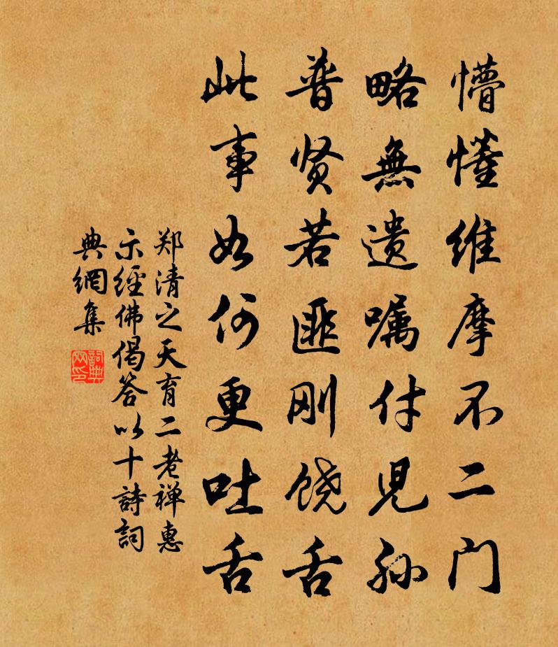 詩詞名句歷史字典書法欣賞書法字典國語詞典說文解字康熙字典古漢語字典標 題 作 者 詩 句 天育二老禪惠示經佛偈答以十詩作者:鄭清之 朝代:宋代原文懵懂維摩不二門,略無遺囑付兒孫。普賢若匪剛饒舌,此事如何更吐舌。詩詞問答問:《天育二老禪惠示經佛偈答以十詩》的作者是誰?答:鄭清之問:該詩寫於哪個朝代?答:宋代書法欣賞天育二老禪惠示經佛偈答以十詩書法作品詩詞推薦迪侄屢餉新茶二首曾幾〔宋代〕敕廚羞煮餅,掃地供爐芬。湯鼎聊從事,茶甌遂策勛。興來吾不淺,送似汝良勤。欲作柯山點,當令阿造分。嘆鶴病白居易〔唐代〕右翅低垂左脛傷,可憐風貌甚昂藏。亦知白日青天好,未要高飛且養瘡。慶元已未冬至前二日訪林公度至栗山翌日同訪黃榦〔宋代〕篝火下修嶺,褰衣涉清川。夜投故人廬,洞壑藏真仙。一水遠縈紆,兩山對蜿蜒。但見煙雲深,不識車馬喧。主人蔡忠惠祀歌道邊松佚名〔宋代〕大義渡至漳泉東,問誰植之我蔡公。歲久廣蔭如雲濃,甘棠蔽芾安可同,委蛇夭矯騰蒼龍。行人六月不知暑,郊廟歌辭。武后大享拜洛樂章。九和武則天〔唐代〕祗荷坤德,欽若乾靈。慚惕罔置,興居匪寧。恭崇禮則,肅奉儀形。惟憑展敬,敢薦非馨。和朱少府苦雨宋祁〔宋代〕滯淹連春晦,層陰接夜分。驍壺惟發電,愁棟但生雲。里突居無爨,官蛙坐厭聞。遙知霖唱罷,客思轉相紛。霜天曉角林逋〔宋代〕冰清霜潔。昨夜梅花發。甚處玉龍三弄,聲搖動、枝頭月。夢絕。金獸爇。曉寒蘭燼滅。要卷珠簾清賞,且莫掃、孤凝白玉蟾〔宋代〕筠皮月靜鋪金屑,仙掌雲寒砌玉花。人在華胥初夢斷,亂山滿目一聲鴉。春日雜題陸游〔宋代〕野水如棋枰,所至各成村。炊煙出茆屋,碓聲隔柴門。樹陰同戲兒,多已長子孫。安居無暴歛,何以報國恩?清明宋祁〔宋代〕曉日東南欲照梁,藏鴉密柳暗橫塘。行庖束蜜停晨爨,別館熏衣冷夜香。陌上鮮風橫去幰,陽濱翠瀲泛行觴。獨嗟應天長(斷橋殘雪)張矩〔宋代〕甃澌冱曉,篙水漲漪,孤山漸捲雲簇。又見岸容舒臘,菱花照新沐。橫斜樹,香未北。倩點綴、數梢疏玉。斷腸處自嘲白須三首基楊萬里〔宋代〕涅髭只誑客,那可誑妻兒。誑得妻兒著,還能誑麵皮。大衍易吟四十首方回〔宋代〕履若蹈虎尾,五剛亨厥躬。乾三獨柔變,是以咥人凶。奉和知縣兄蘇泂〔宋代〕蒼煙濕濕雨微微,一榼山醪手自提。看了梅花來看竹,春寒如水不曾知。西溪會范叔剛用舊所寄韻孫應時〔宋代〕出門煙水思微茫,客里行吟晚興長。萬里雲霄自今古,百年毛髮幾暄涼。人間但有詩書樂,眠底何須印綬光。遙夜夜宴洛陽程九主簿宅送楊三山人往天台尋智者禪師隱居劉長卿〔唐代〕東林問逋客,何處棲幽偏。滿腹萬餘卷,息機三十年。志圖良已久,鬢髮空蒼然。調嘯寄疏曠,形骸如棄捐。本家夏日十二首張耒〔宋代〕種藥幽人事,還披木草經。出川拋舊翠,過雨有新青。術受壺中秘,方傳肘後靈。不辭勤服餌,為變發星星。和學士秋懷一十五首李彌遜〔宋代〕卻暑回飈入暮林,衰蟬無力尚微吟。不須更問秋多少,著蕊黃花已可簪。蒙恩易鎮豫章丐假還鄉途中偶成十七首吳芾〔宋代〕中夜不能眠,頗疑天有雨。寒燠自古然,不應冷如許。蘇幕遮 述懷王處一〔元代〕我風狂,真九百。豁盪乾坤,爽氣猶嫌窄。大道通融非有隔。地靜天清,寸步輕輕驀。晚雲收,秋月白。萬象參羅名句推薦碧水驚秋,黃雲凝暮,敗葉零亂空階。秦觀《滿庭芳·碧水驚秋》 相思了無益,悔當初相見。朱彝尊《憶少年·飛花時節》 春眠不覺曉,處處聞啼鳥。孟浩然《春曉》 戍鼓斷人行,邊秋一雁聲。杜甫《月夜憶舍弟》 且就洞庭賒月色,將船買酒白雲邊。李白《游洞庭湖五首·其二》 一雙冷眼看世人,滿腔熱血酬知己。袁枚《隨園詩話·卷十六》 荷絲傍繞腕,菱角遠牽衣蕭綱《採蓮曲》 更無柳絮因風起,惟有葵花向日傾。司馬光《客中初夏》 誰分去來鄉國事,悽然,曾是承平兩少年。陳洵《南鄉子·己巳三月自郡城歸鄉過區菶吾西園話舊》 年去年來白髮新,匆匆馬上又逢春。于謙《立春日感懷》