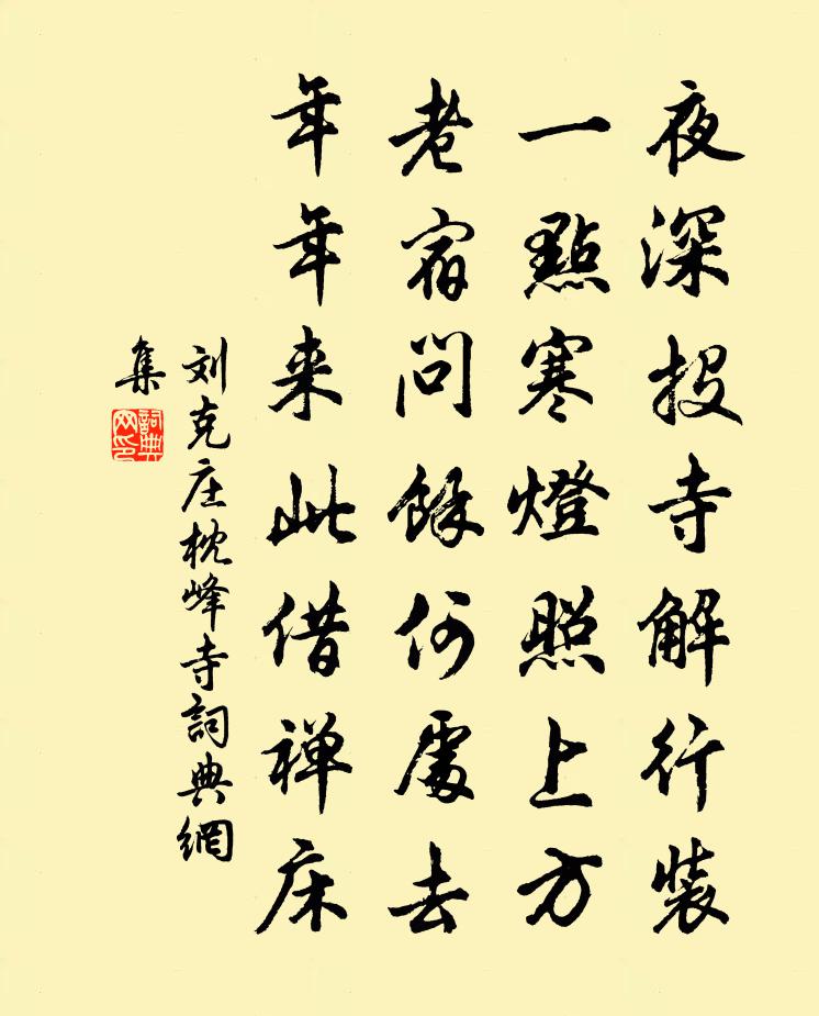 夜深投寺解行裝,一點寒燈照上方。老宿問余何處去,年年來此借禪床。